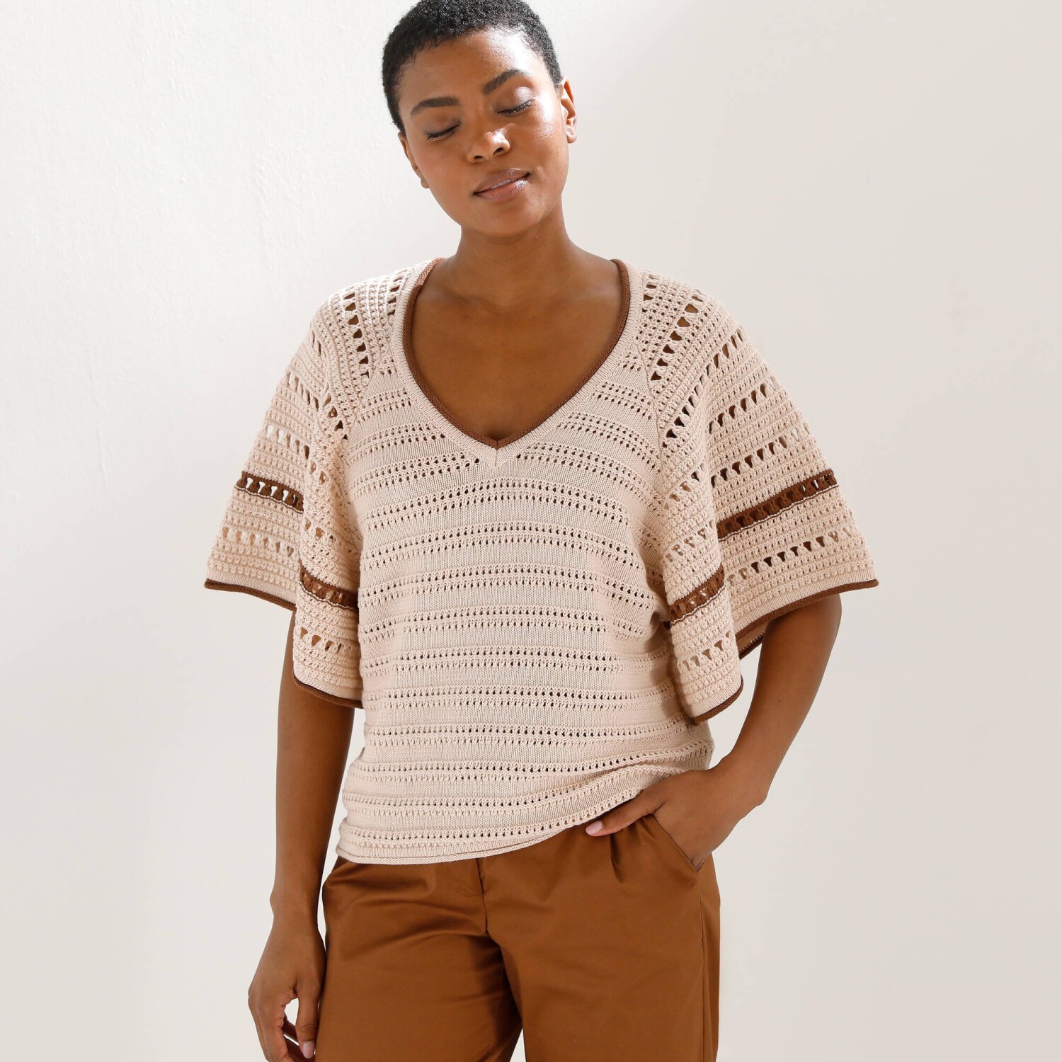 Vesta z hladkého úpletu s ažúrou