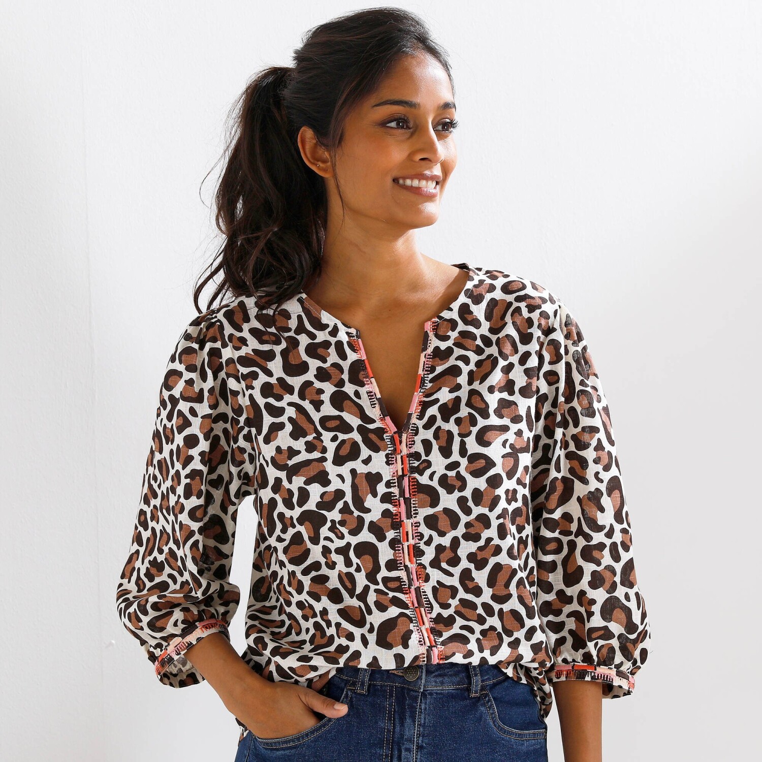 Blúzka s výšivkou a 3/4 rukávmi, leopardia potlač