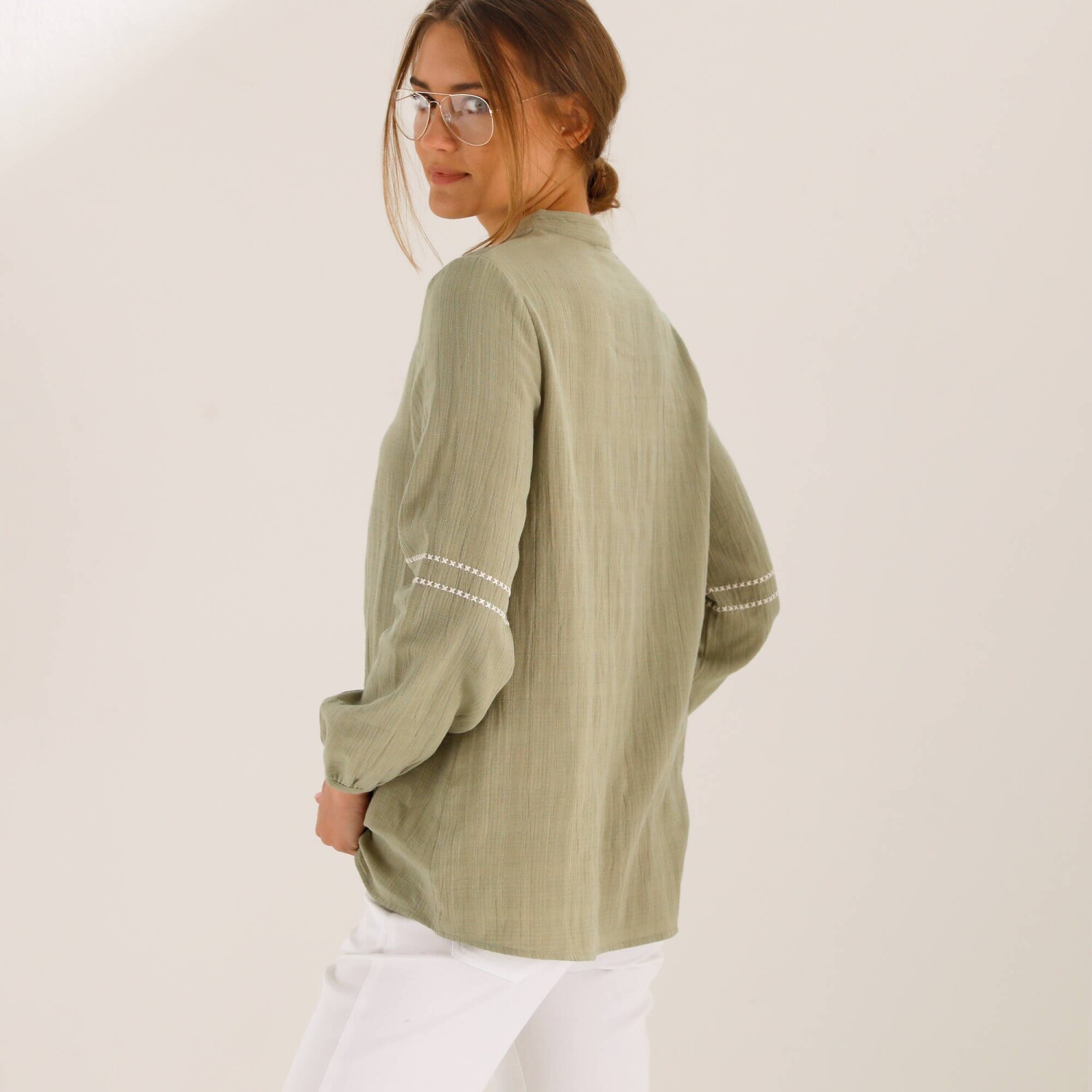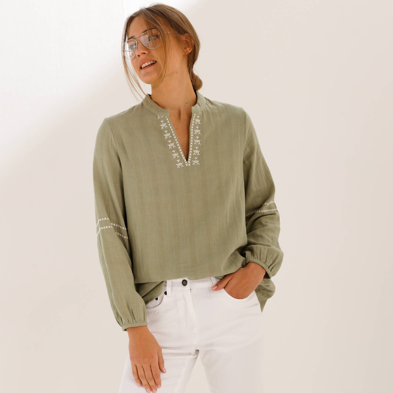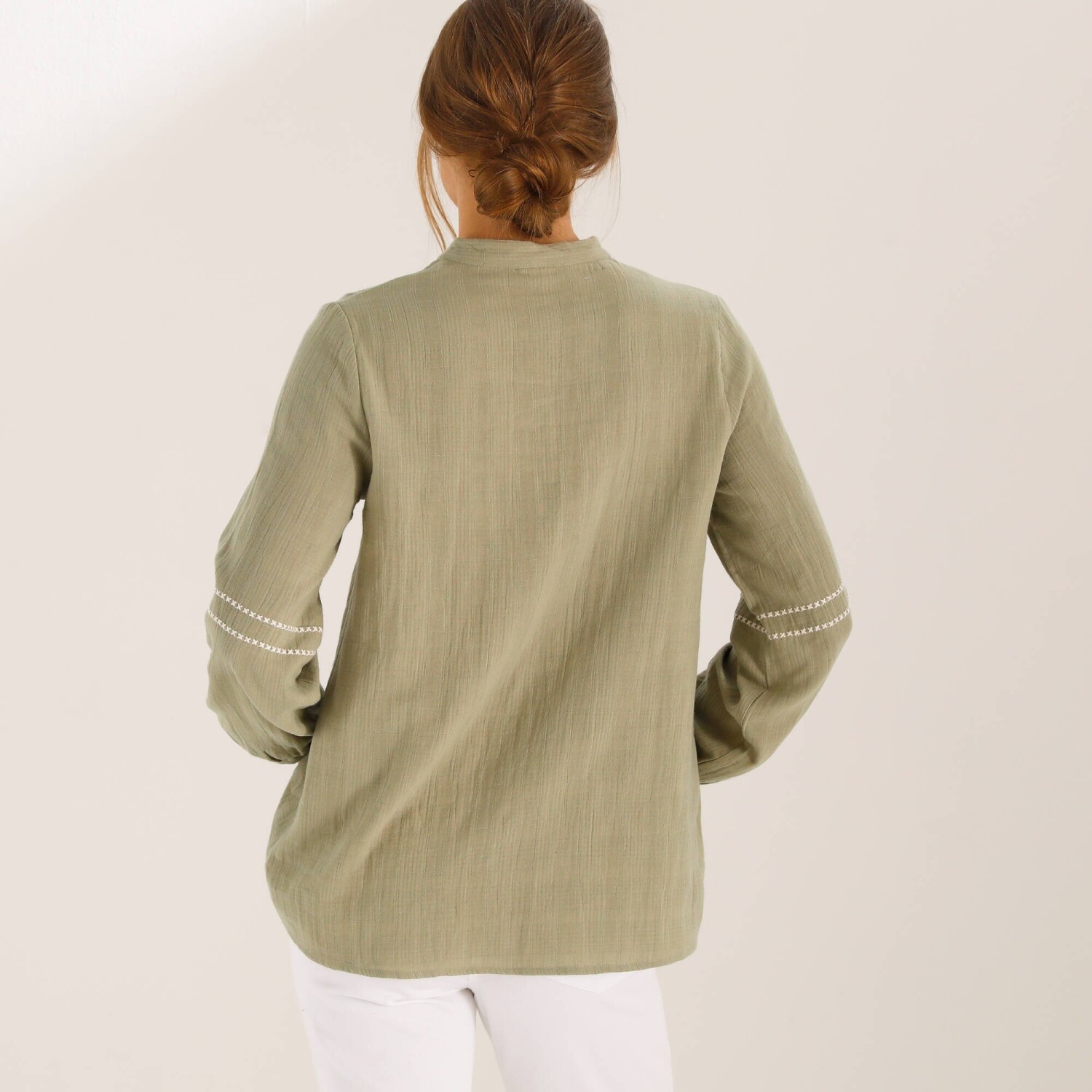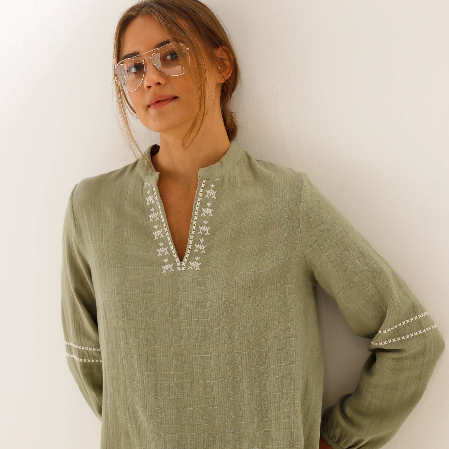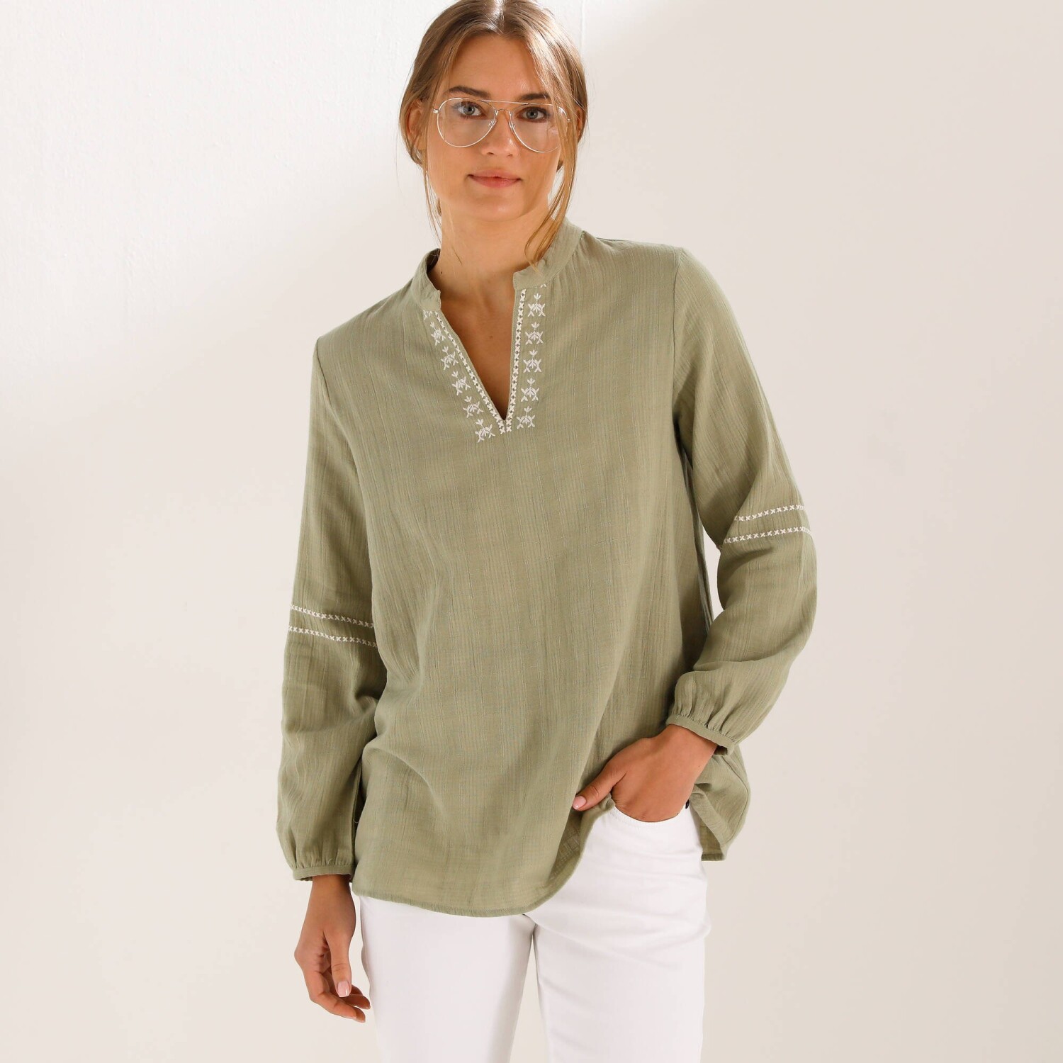 Jednofarebná tunika s dlhými rukávmi a čipkou na pleciach