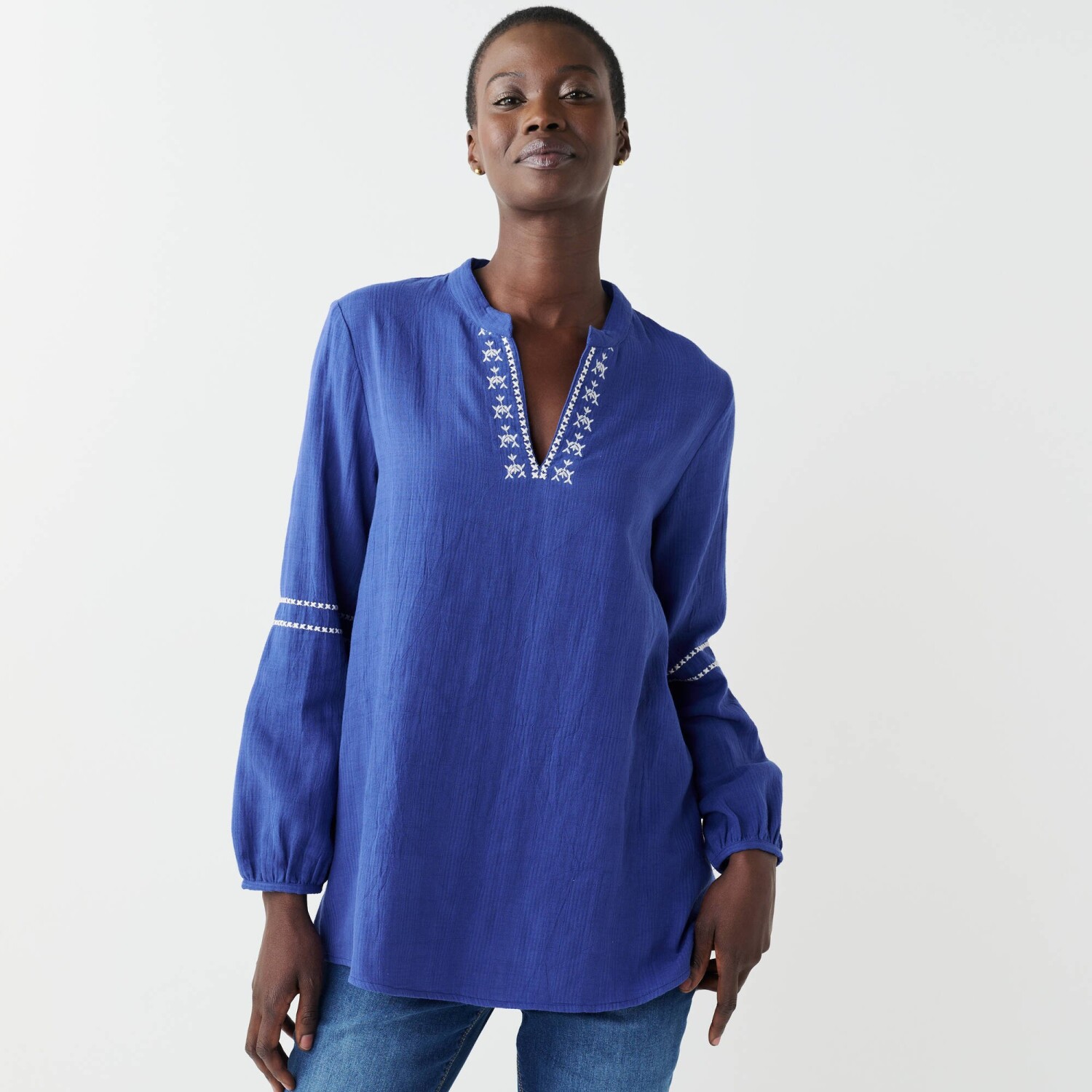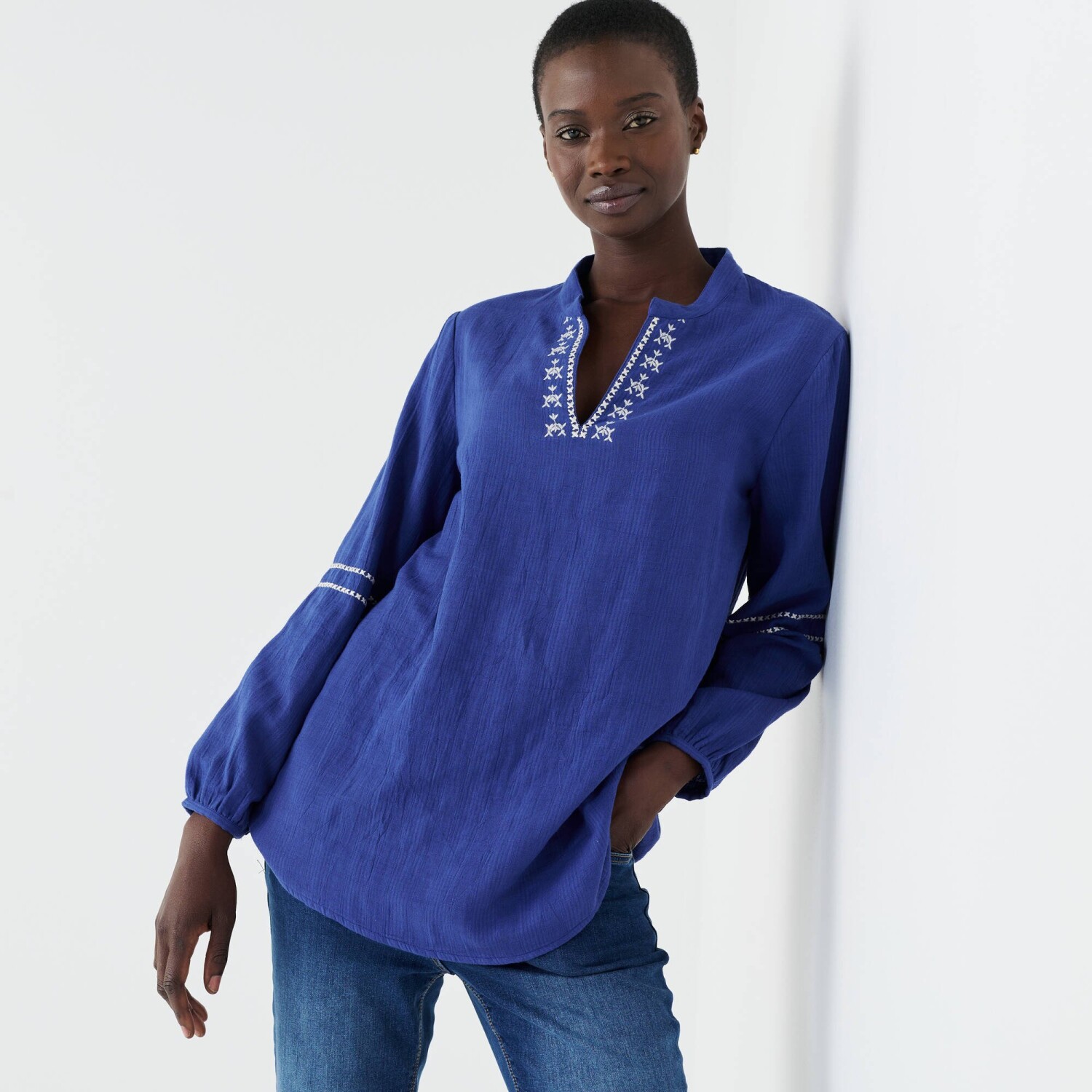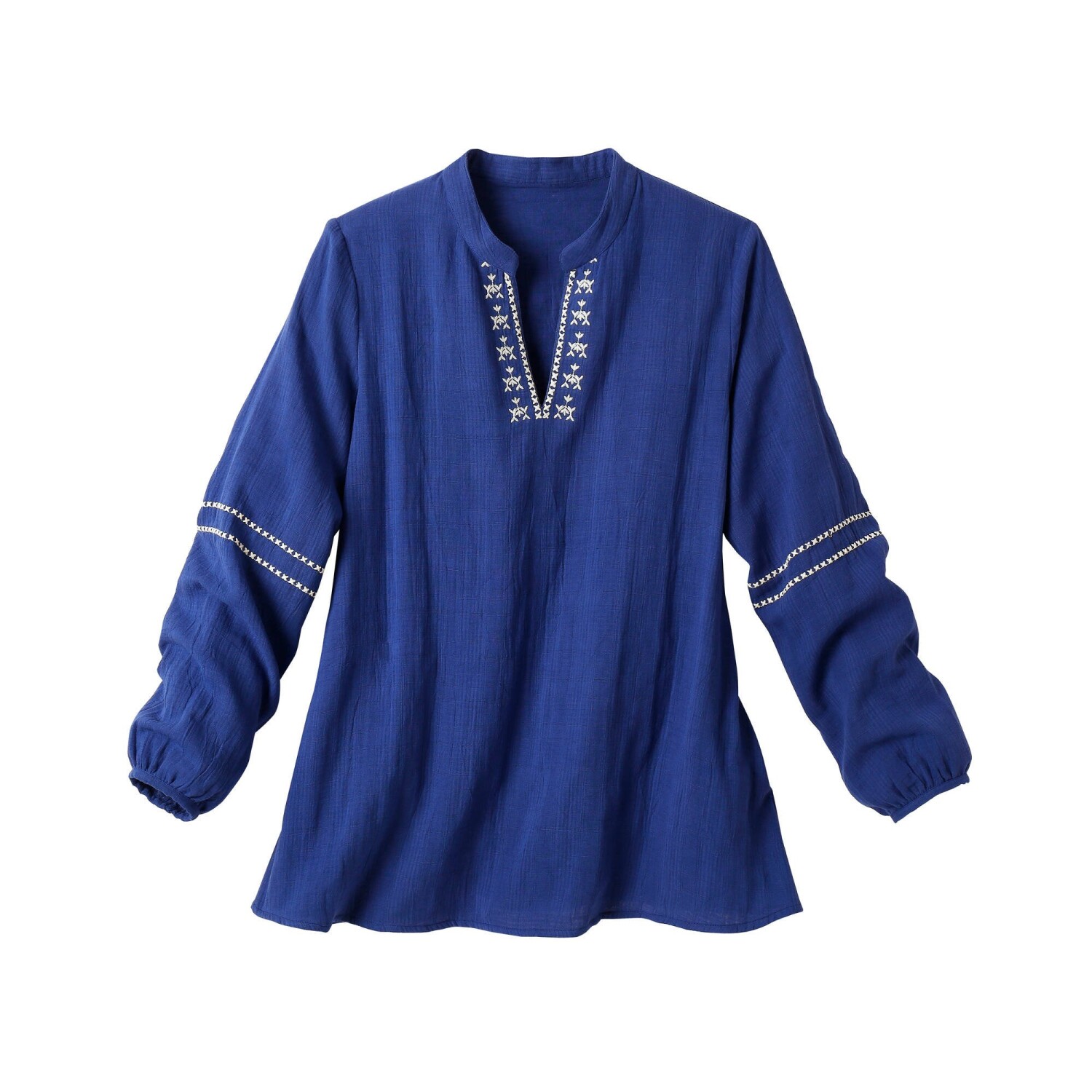 Tunika s výšivkou si okamžite získala naše srdce! Tuniský výstrih s hlbokým prestrihom do "V". Dlhé nazberané rukávy. Pevné manžety. Rozšírený, Rovný dolný lem. Možno prať v práčke.