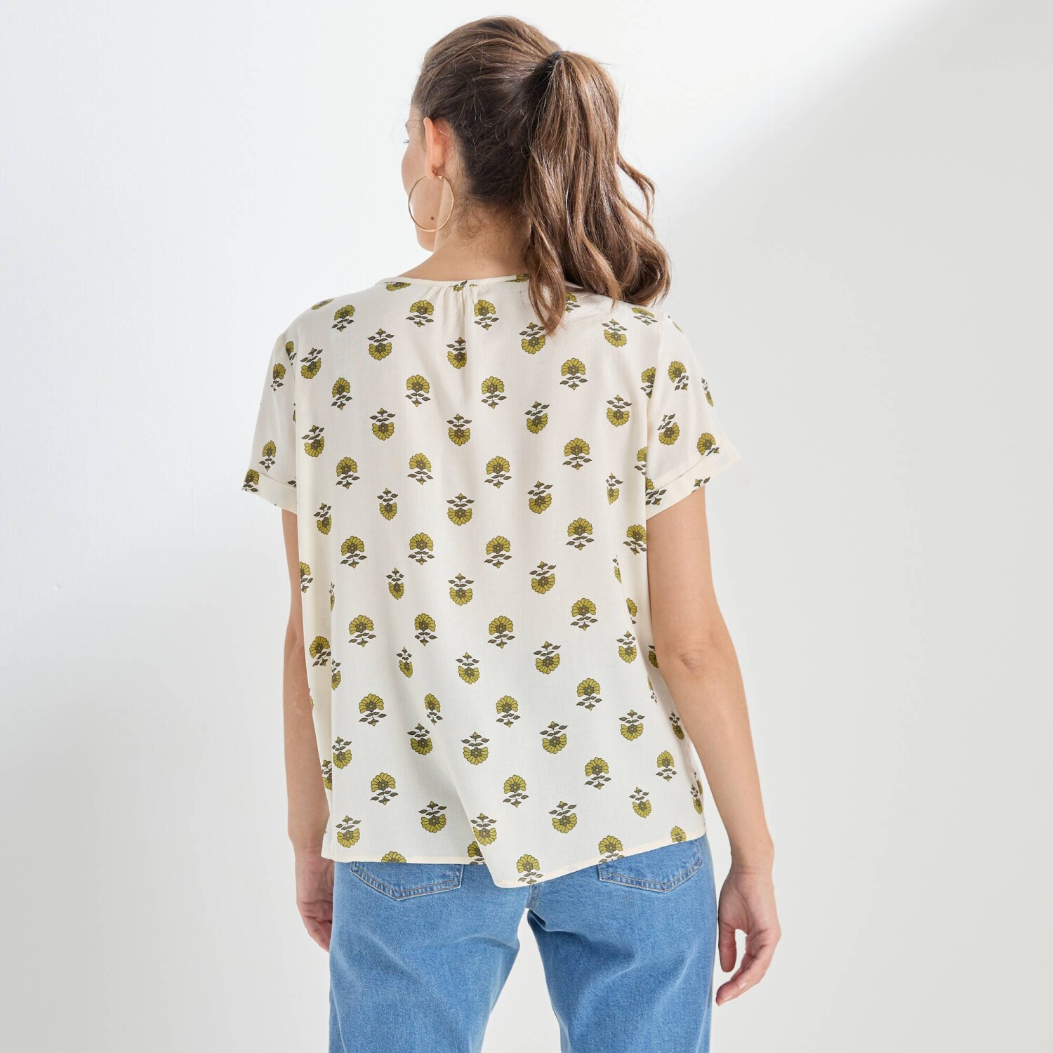 Blúzka s výšivkou a ozdobným výstrihom so strapcami