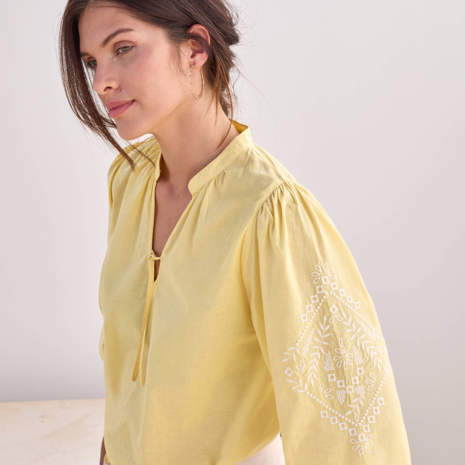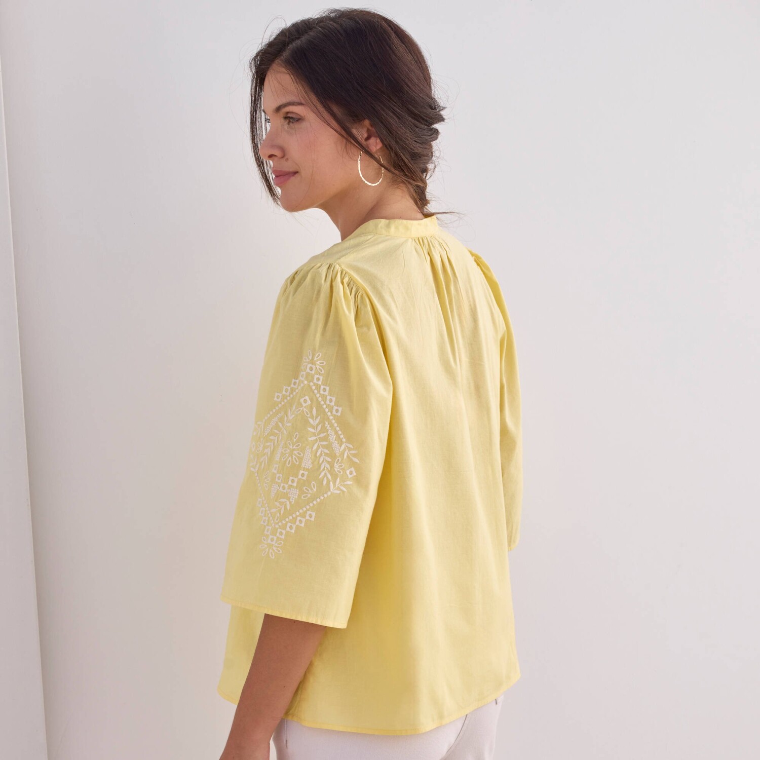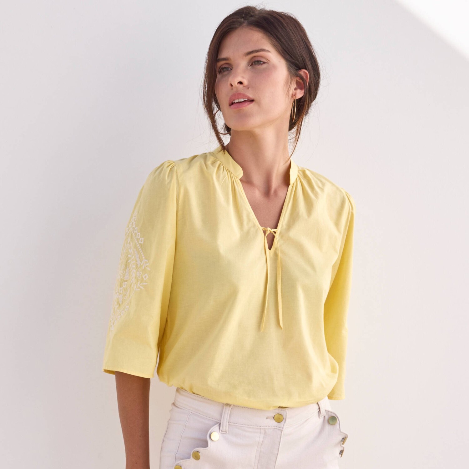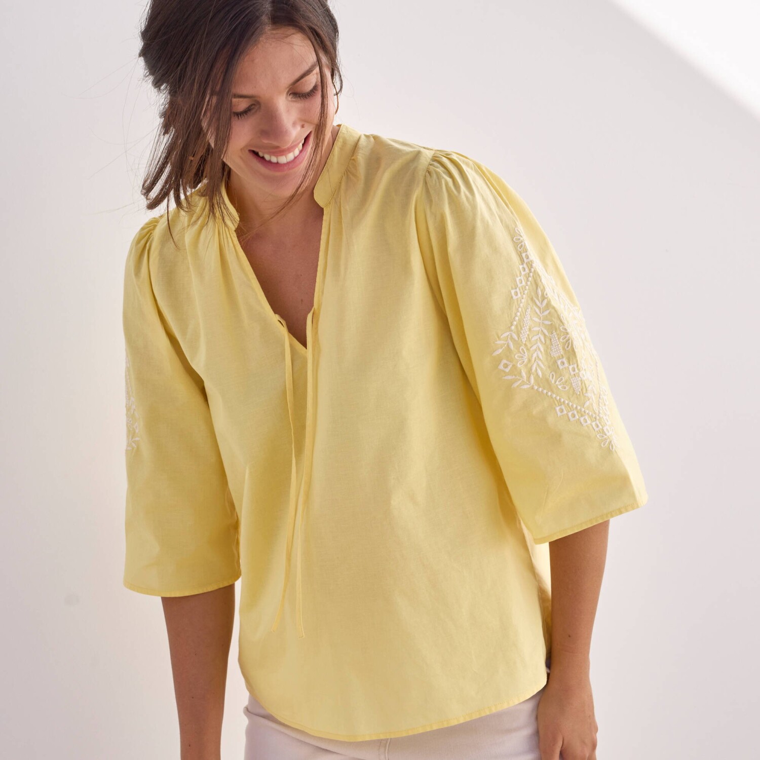 Blúzka s výšivkou a 3/4_x000D_ naberanými rukávmi