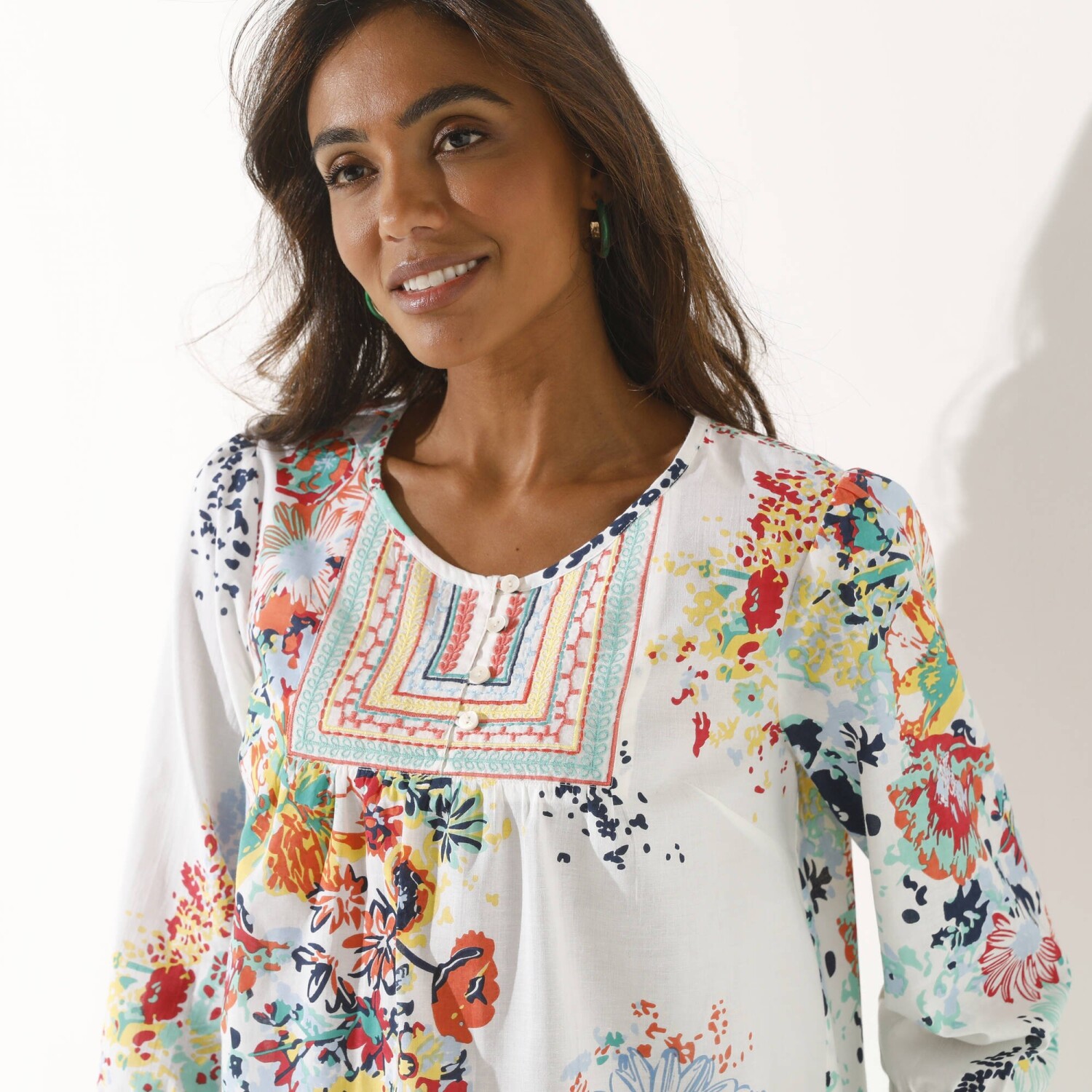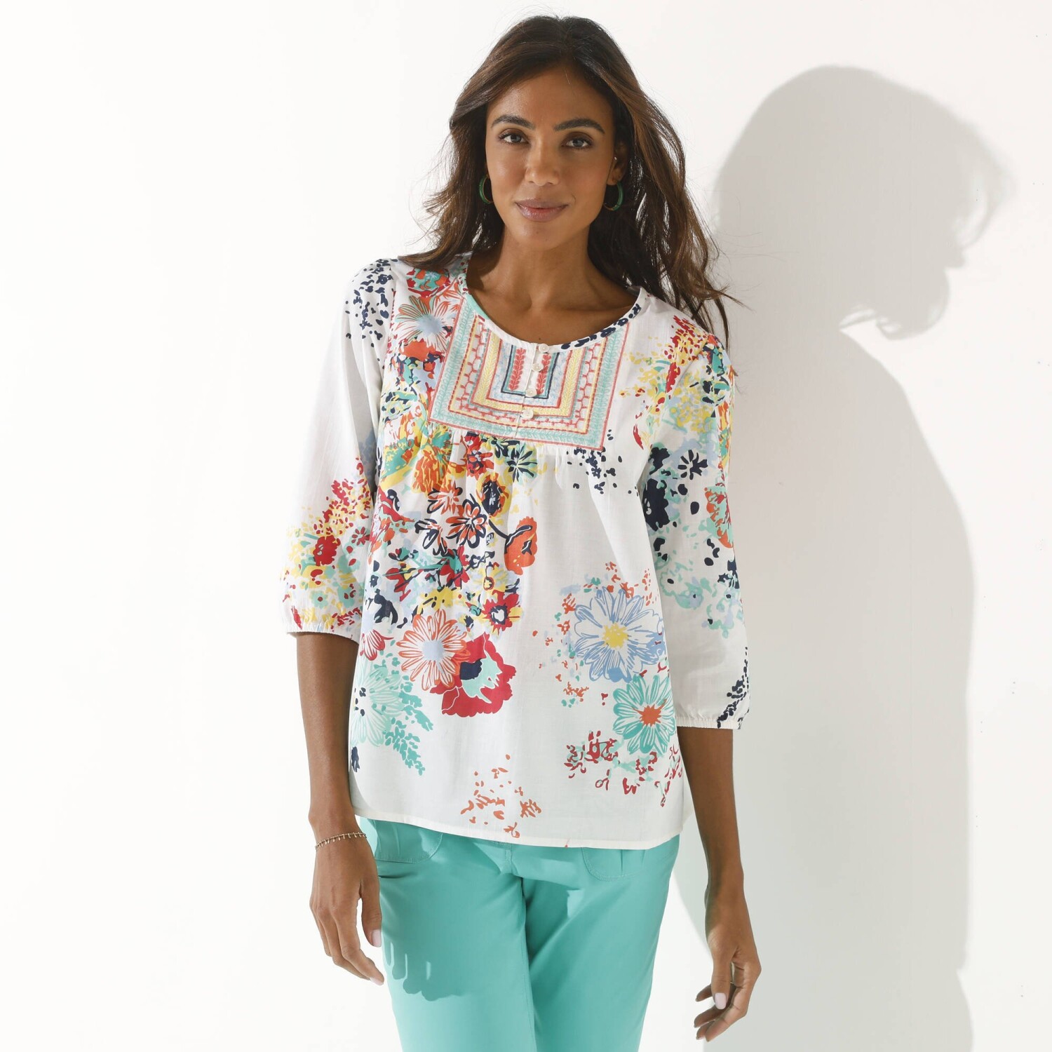 Blúzka s výšivkou a ozdobným výstrihom so strapcami