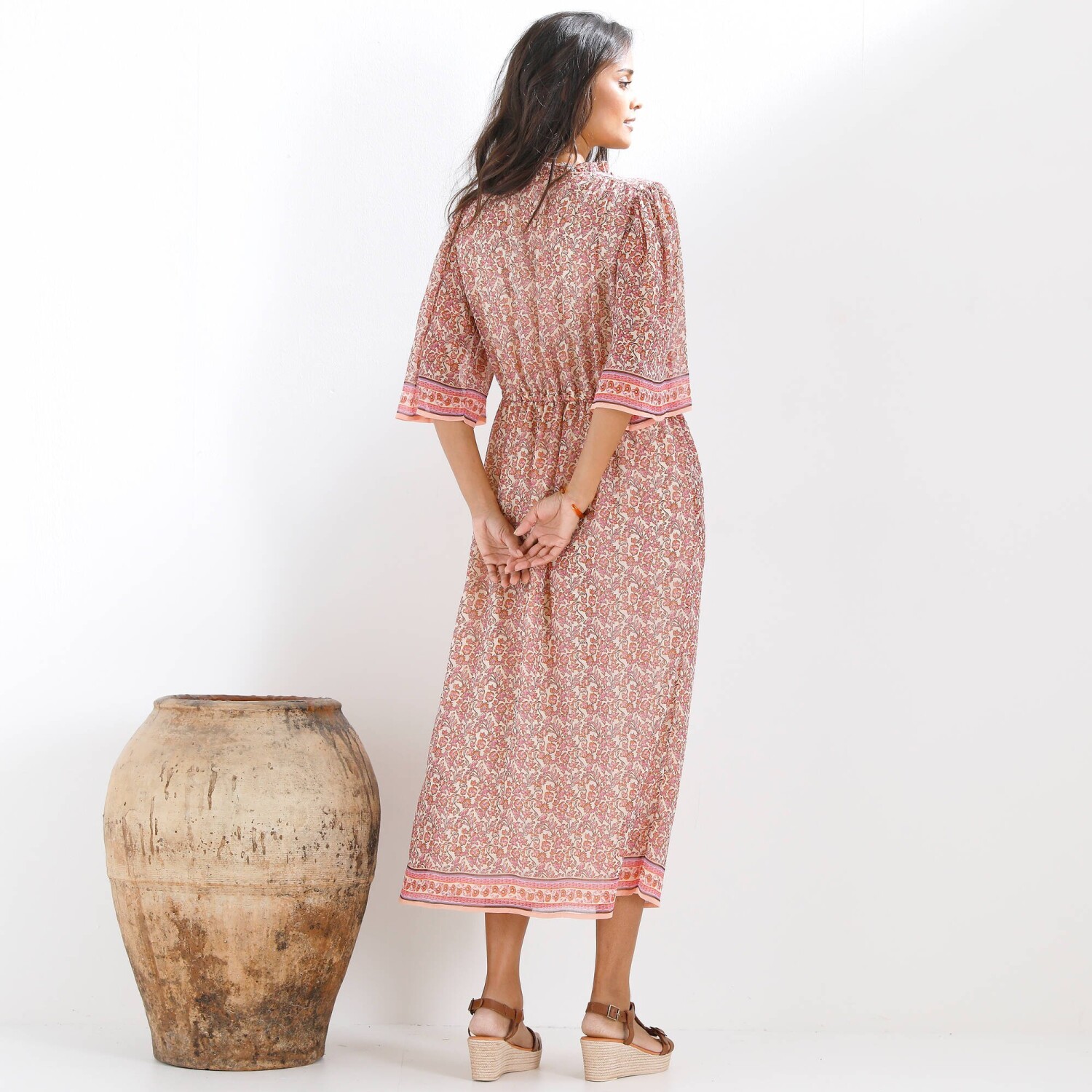 Midi džínsové šaty s rozšírenými rukávmi