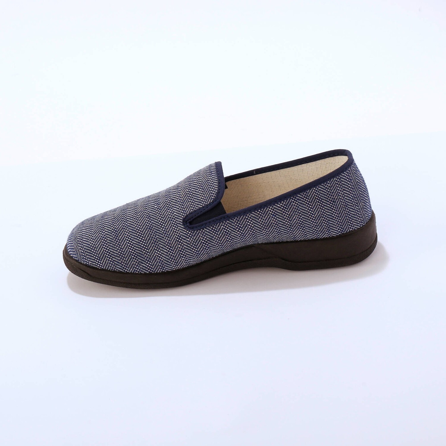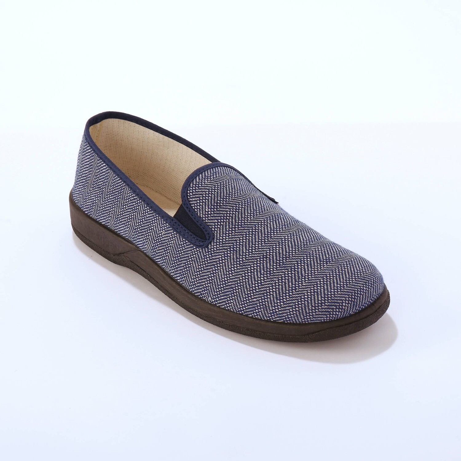 Komfortné domáce šľapky so ševrónovým vzorom sa ľahko obúvajú. Ľahké, pružné a pohodlné. Na každej strane jednofarebná guma. Zakončené jednofarebným lemom. Protišmyková podrážka. Vyrobené vo Francúzsku.