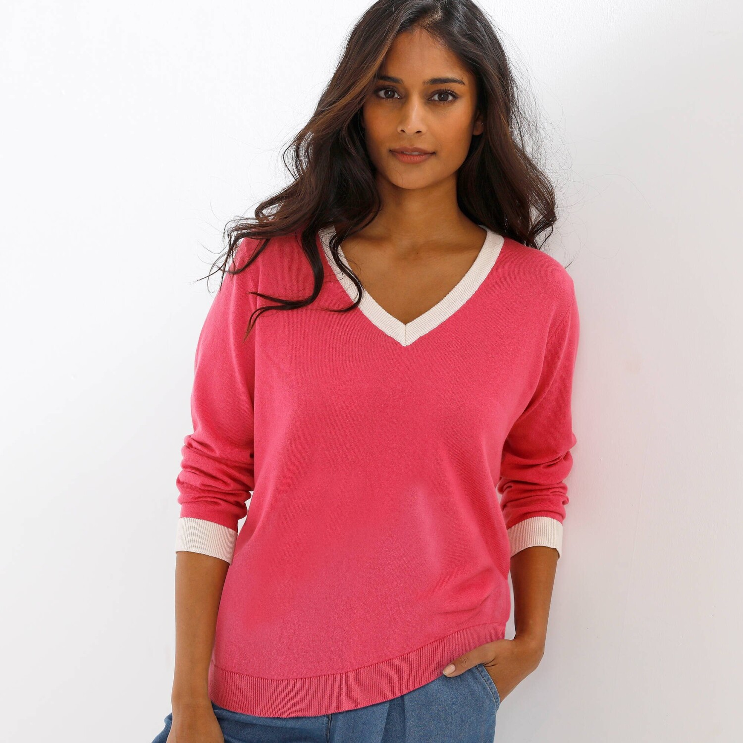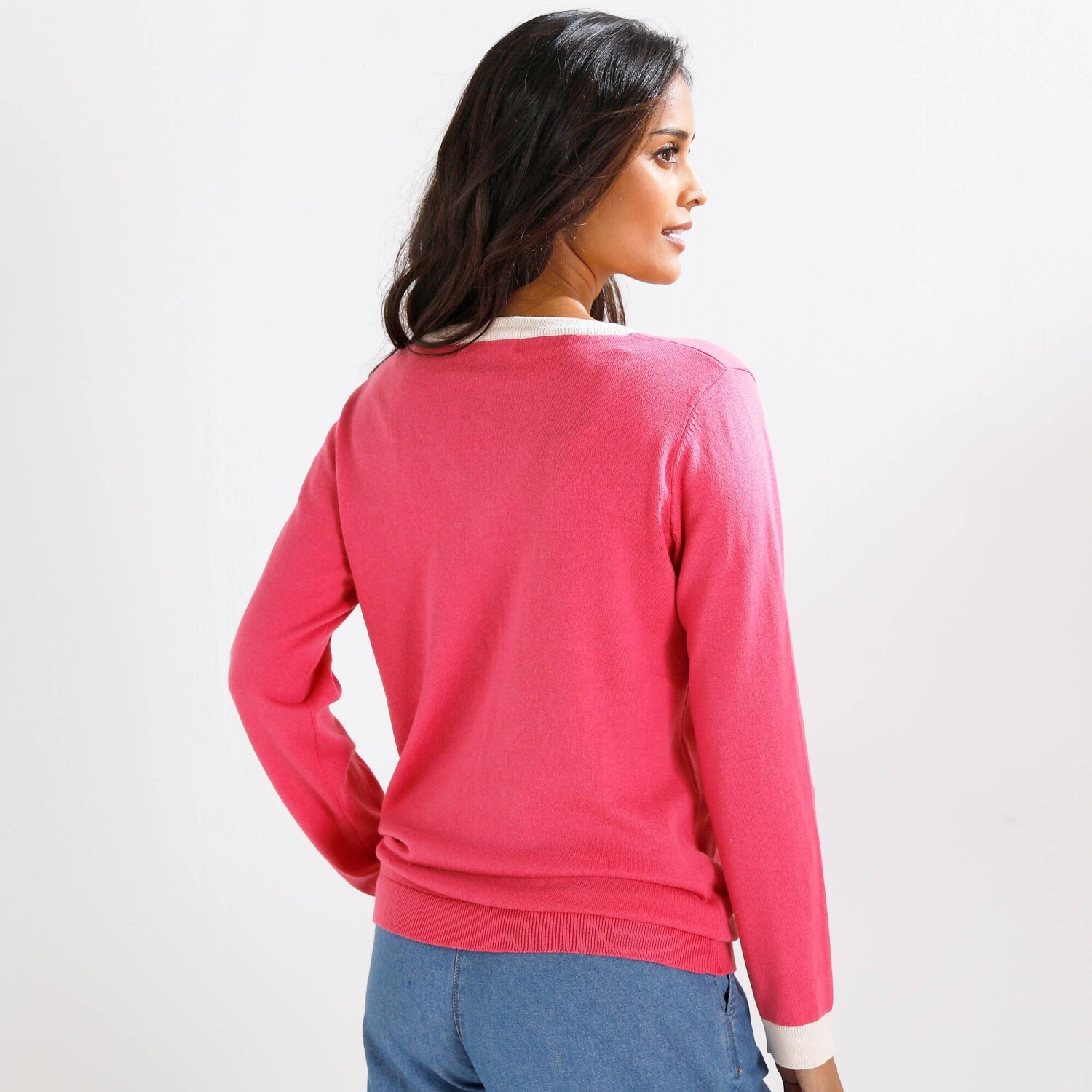 Jednofarebný pulóver s výstrihom na gombíky
