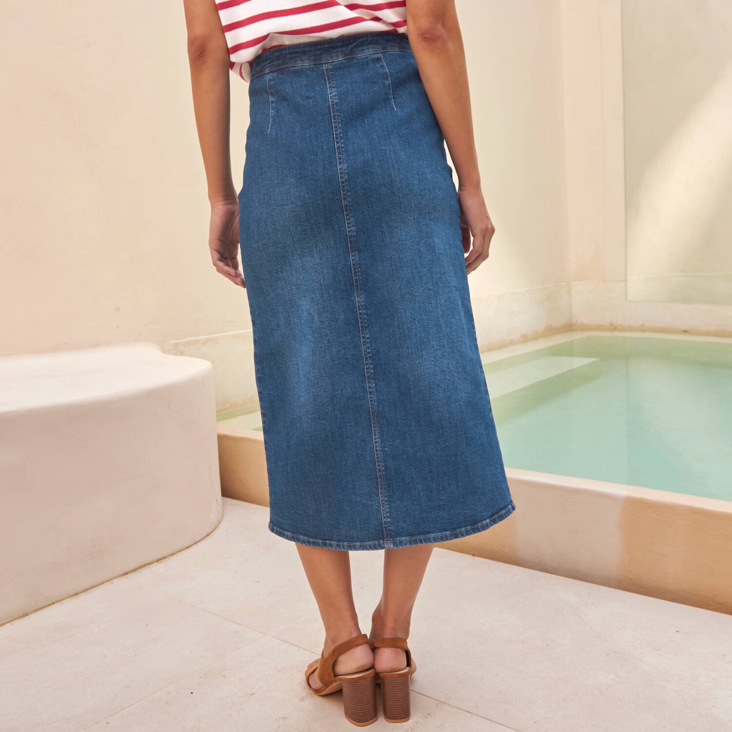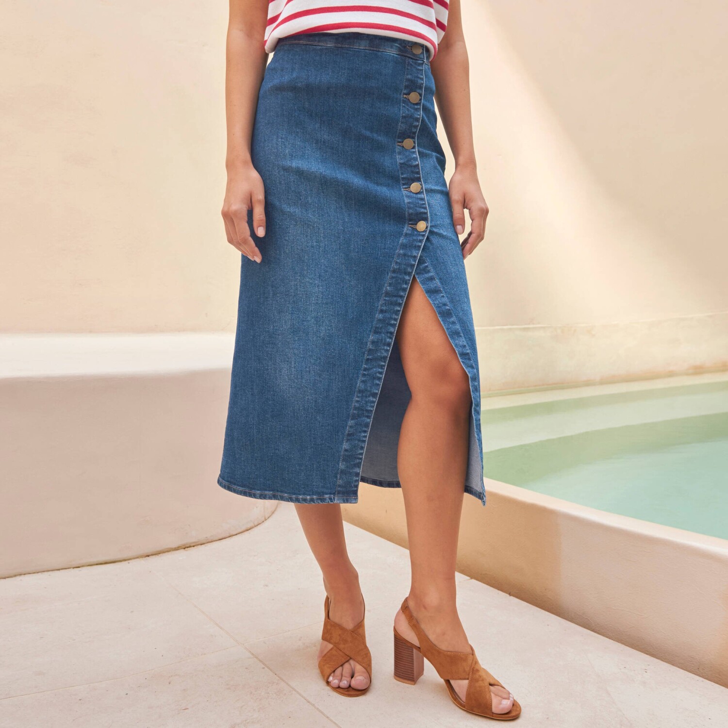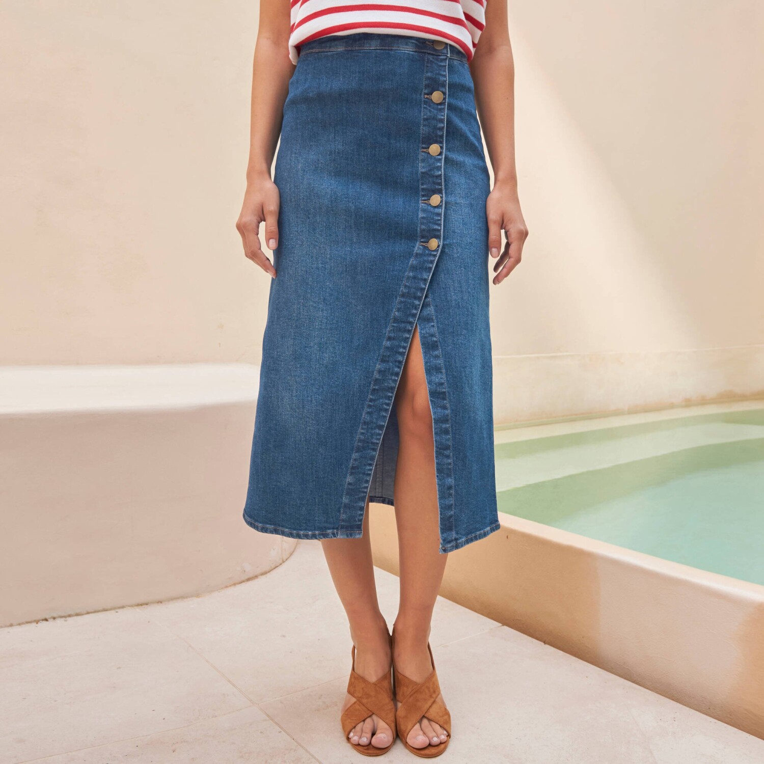 Džínsová midi sukňa na gombíky