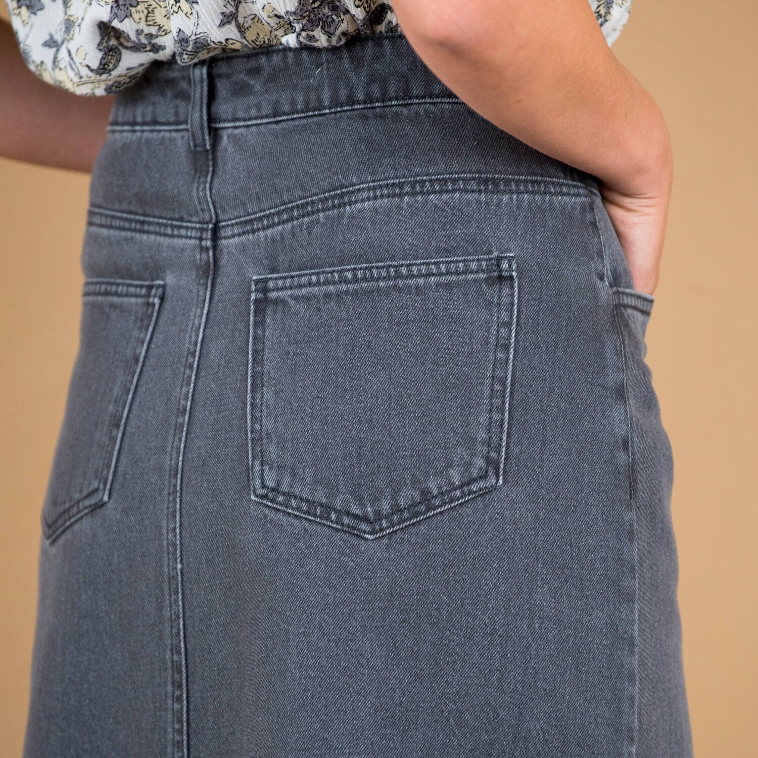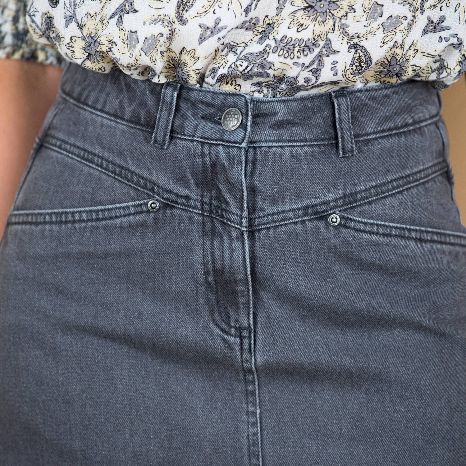 Džínsovú sukňu nemožno nemilovať. Ide o obľúbený kúsok, ktorý nikdy nevyjde z módy. Lichotivý, mierne rozšírený strih. Tvarovaný pás s pútkami. Zapínanie na zips a 1 gombík. 2 klinové vrecká. Vpredu prestrih do špičky. Zvýšený sed. 2 našité vrecká vzadu. Rovný spodný lem. Certifikát Made In Green značky OEKO-TEX®. Okrem overenia niekoľkých stoviek chemických látok, čím prispieva k vysokej bezpečnosti, toto označenie zaručuje ohľaduplné výrobné princípy a kontrolované spoločenské postupy. Možno prať v práčke.