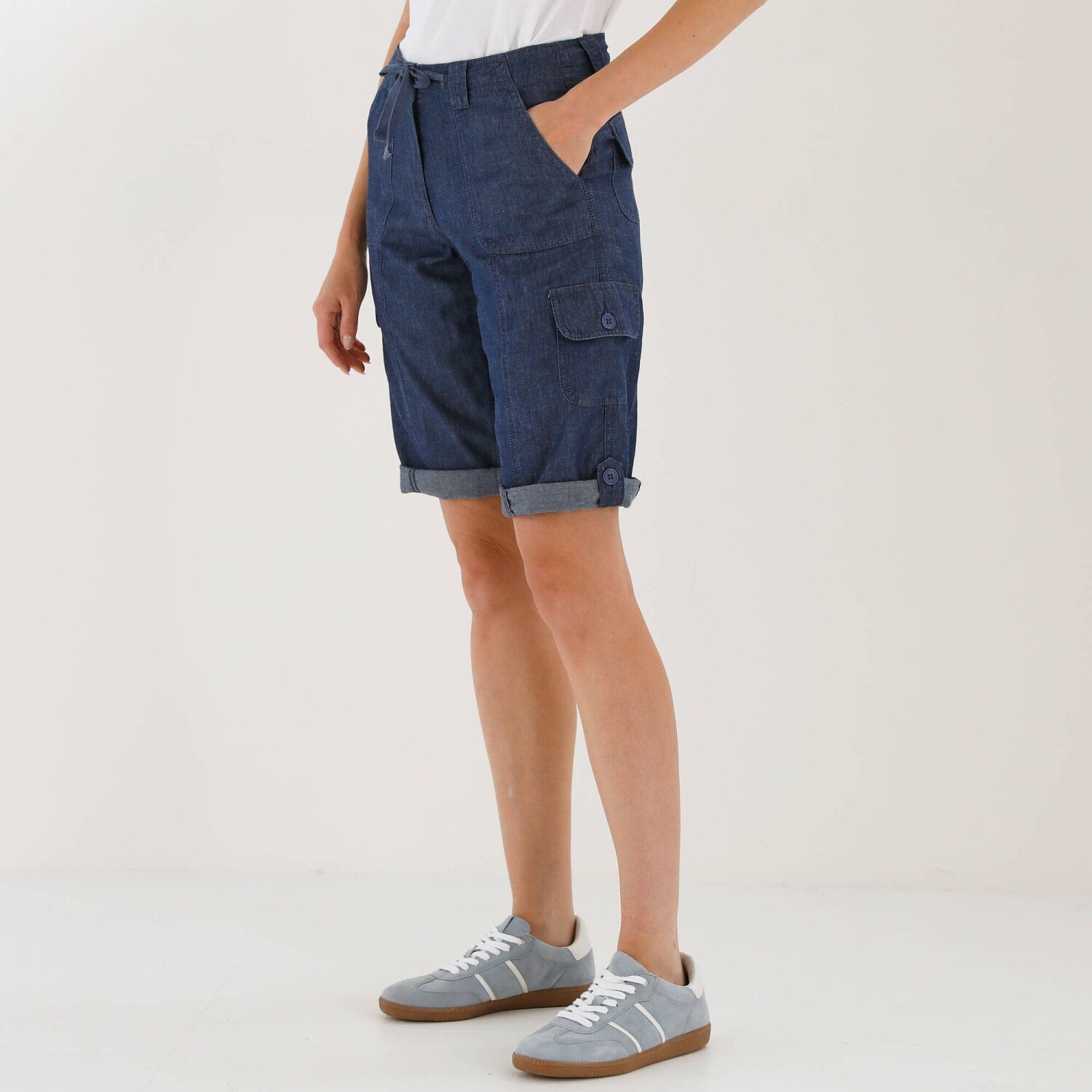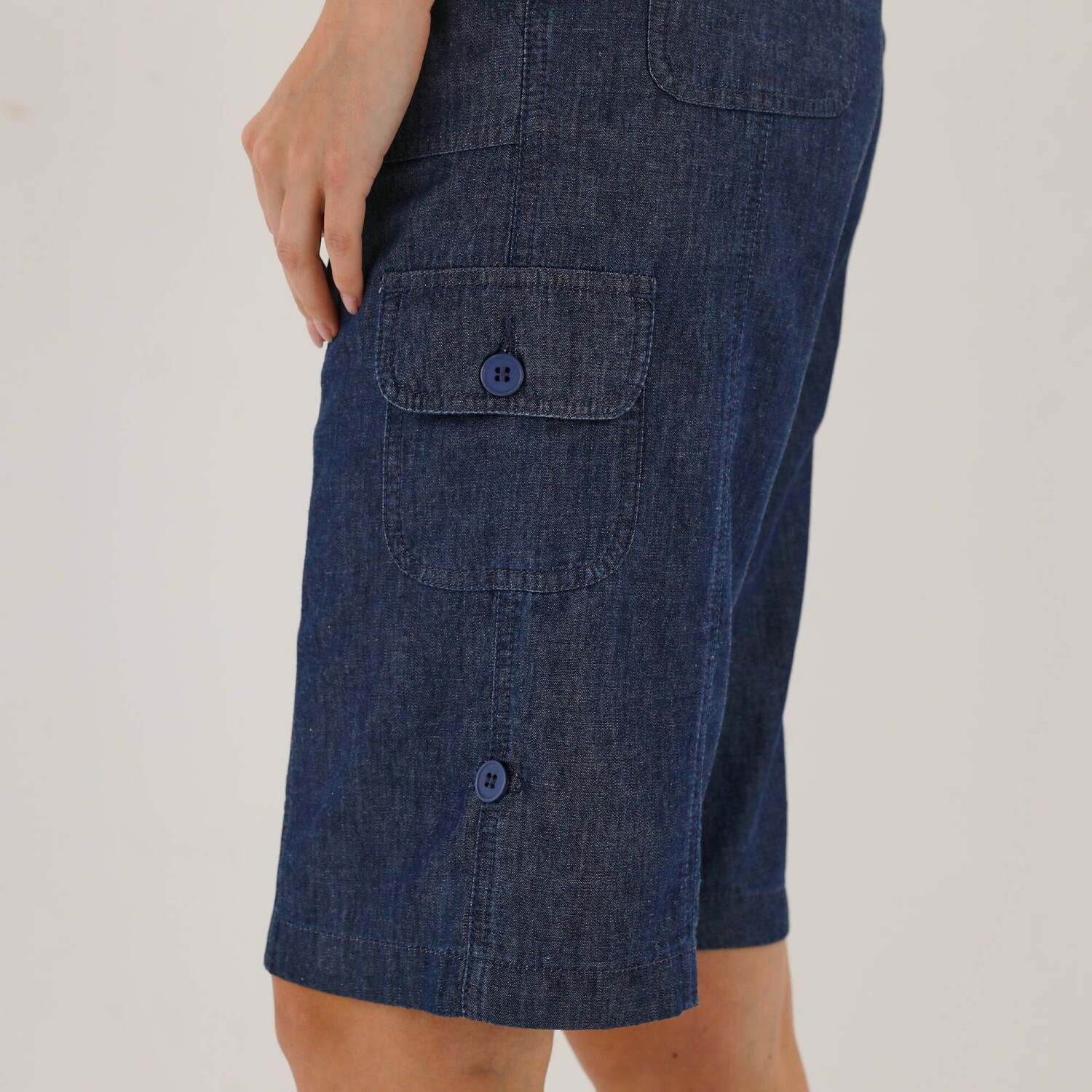 Džínsové bermudy s vreckami a ohrnutím