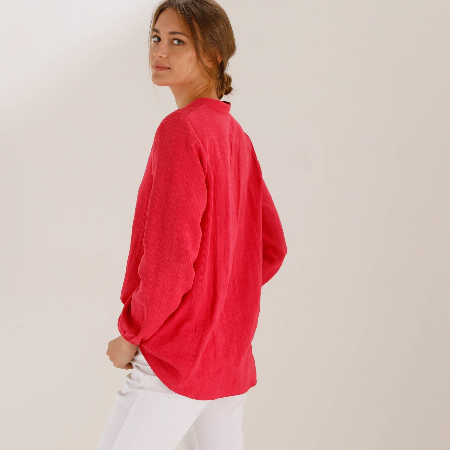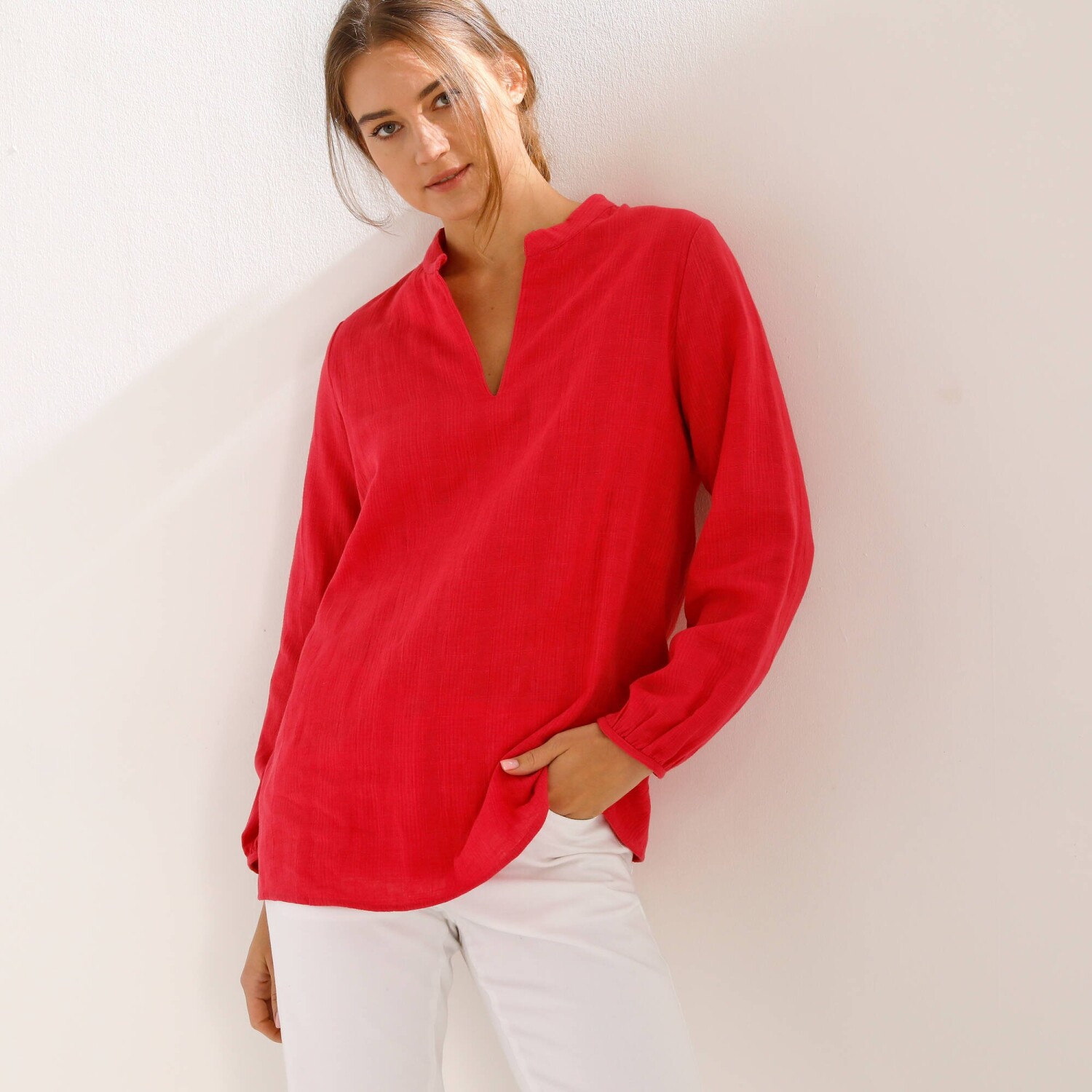 Jednofarebná tunika s dlhými rukávmi a čipkou na pleciach