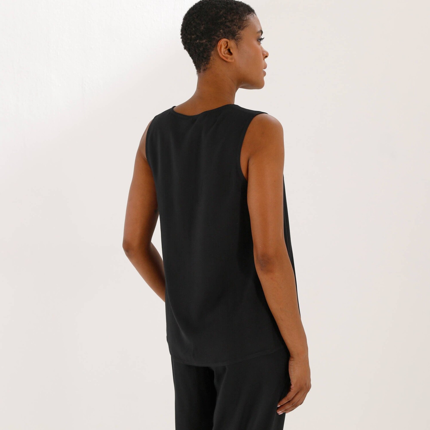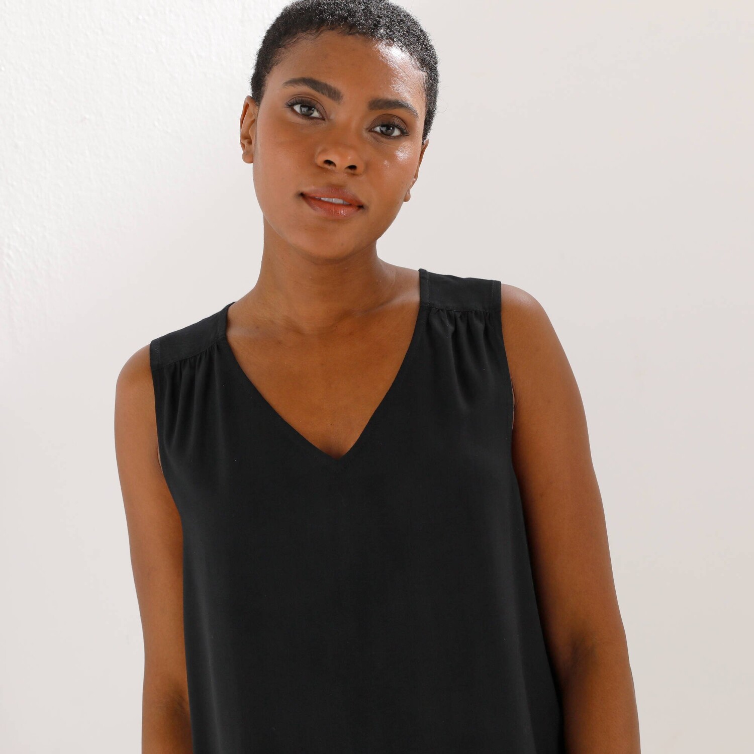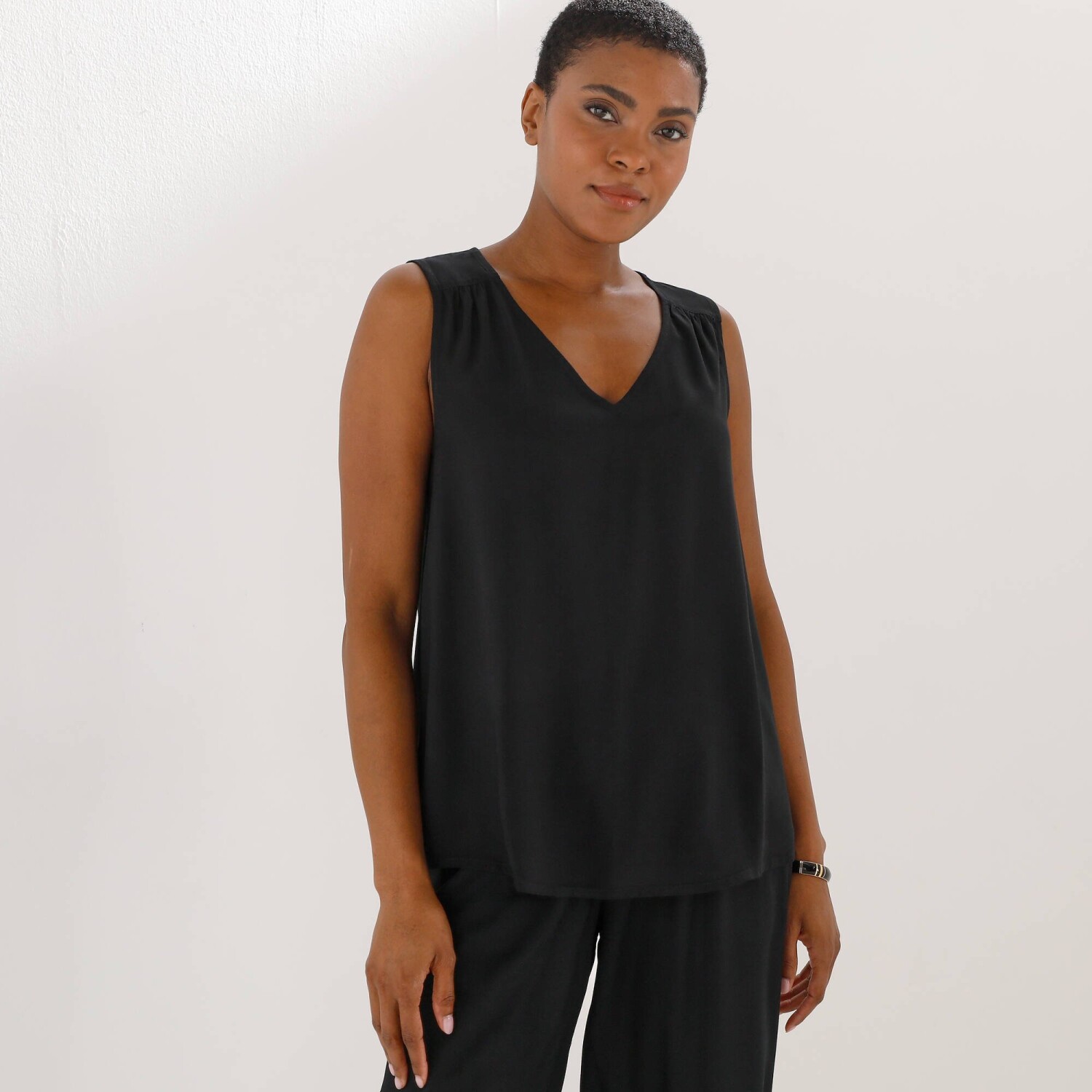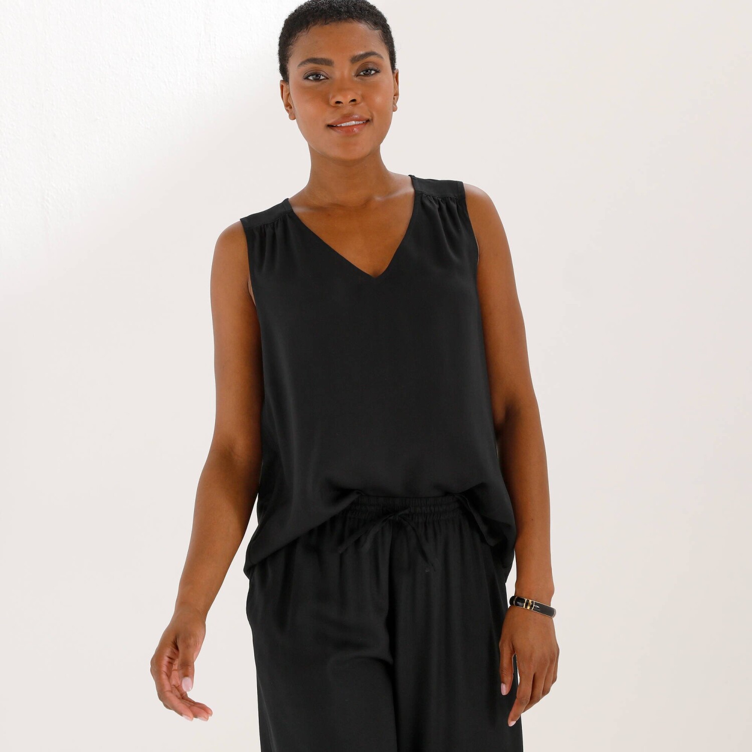 Jednofarebný top s výstrihom do V a čipkou