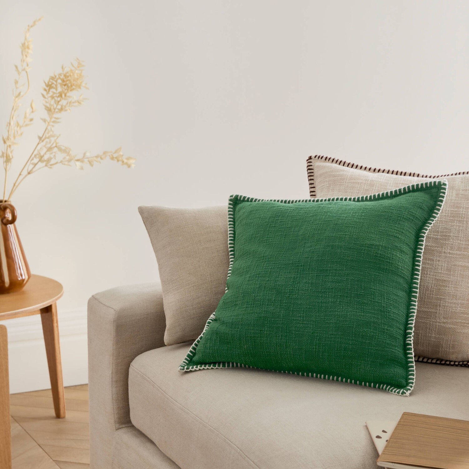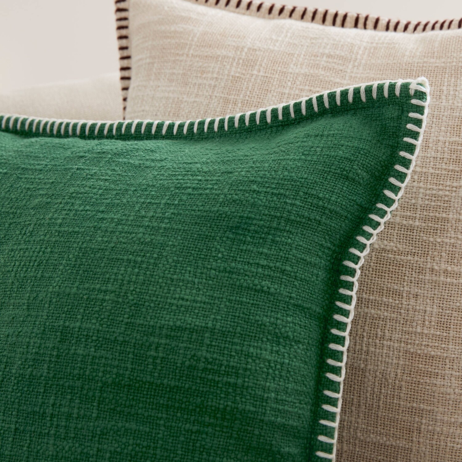 Jednofarebný vankúšik s textúrou zakončený ozdobným stehom