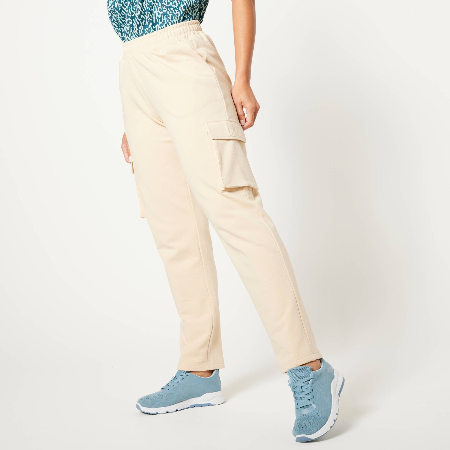 Jogging športové nohavice s vreckami poskytnú 100 % voľnosť pohybu. Úzky, ženský komfortný strih. Pružný pás. 2 klinové vrecká. 2 našité vrecká s pútkom na suchý zips na každej nohavici. Standard 100 by Oeko-Tex (n° CQ 1216/3 IFTH). Táto známka označuje textilné výrobky, ktoré boli podrobené laboratórnym testom na široké spektrum škodlivých látok a výrobok je bezpečný nad rámec platných noriem. Možno prať v práčke.