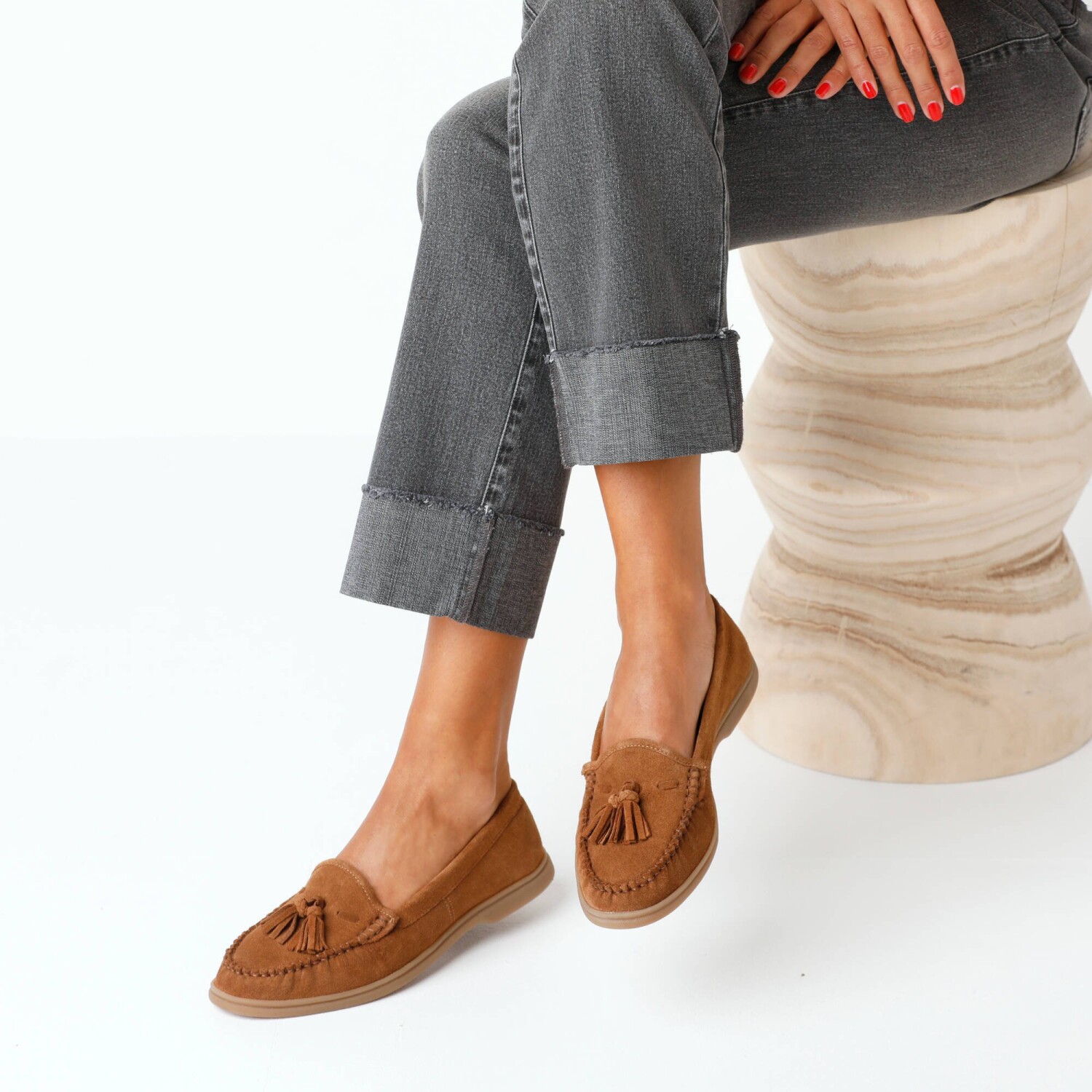 Kožené mokasíny so strapcami