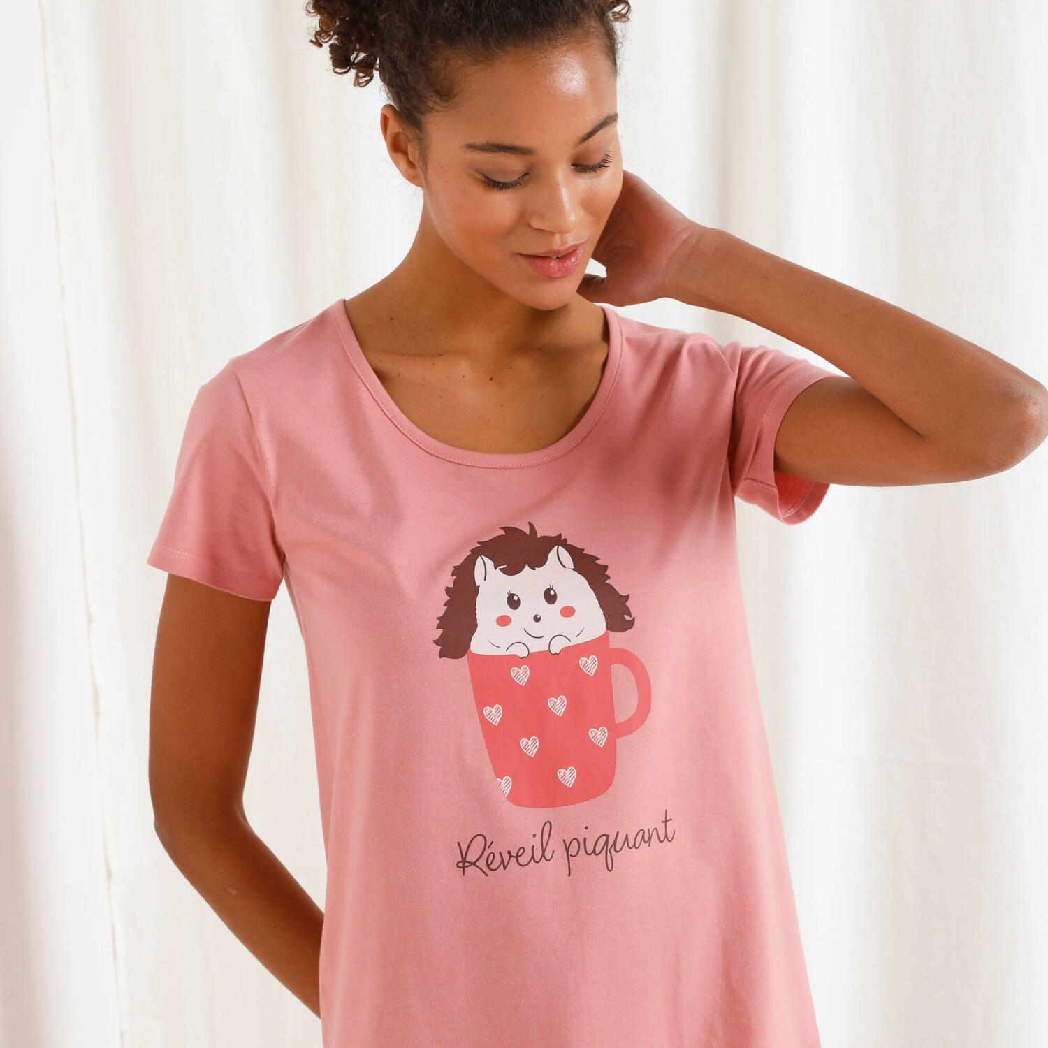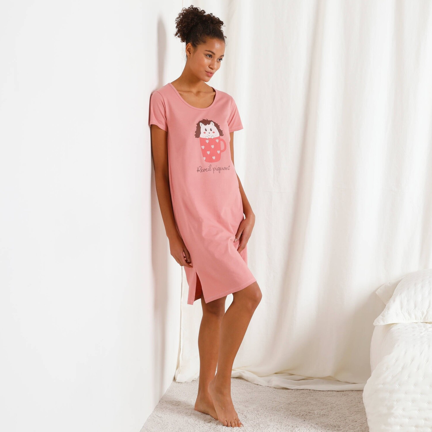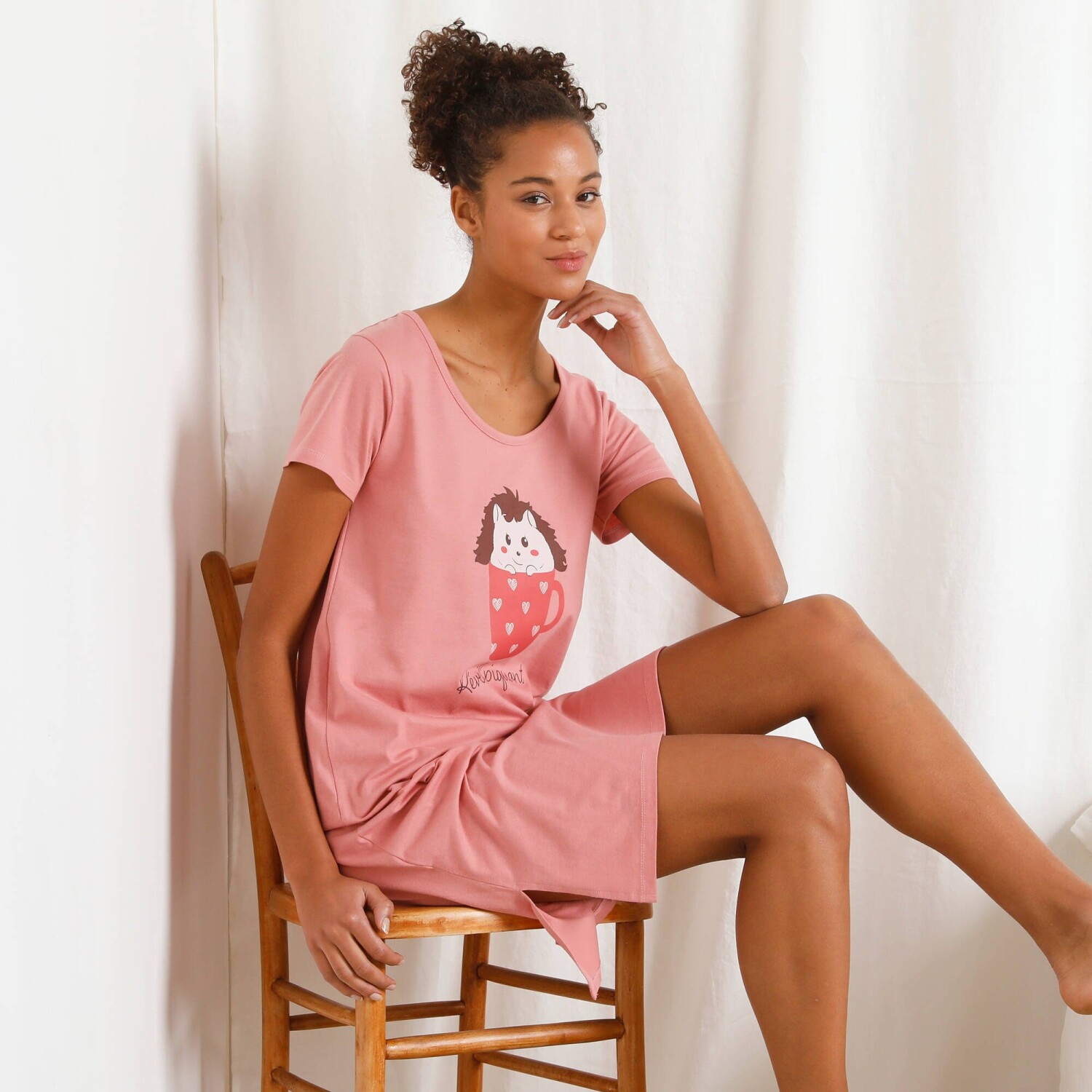 Krátka nočná košeľa s krátkymi rukávmi a potlačou roziet