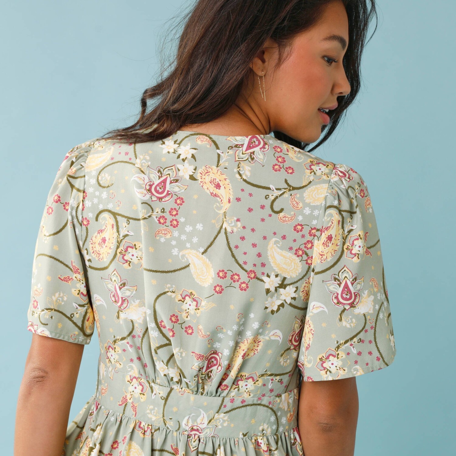 Krátke šaty s potlačou a gombíkmi pre nižšiu postavu