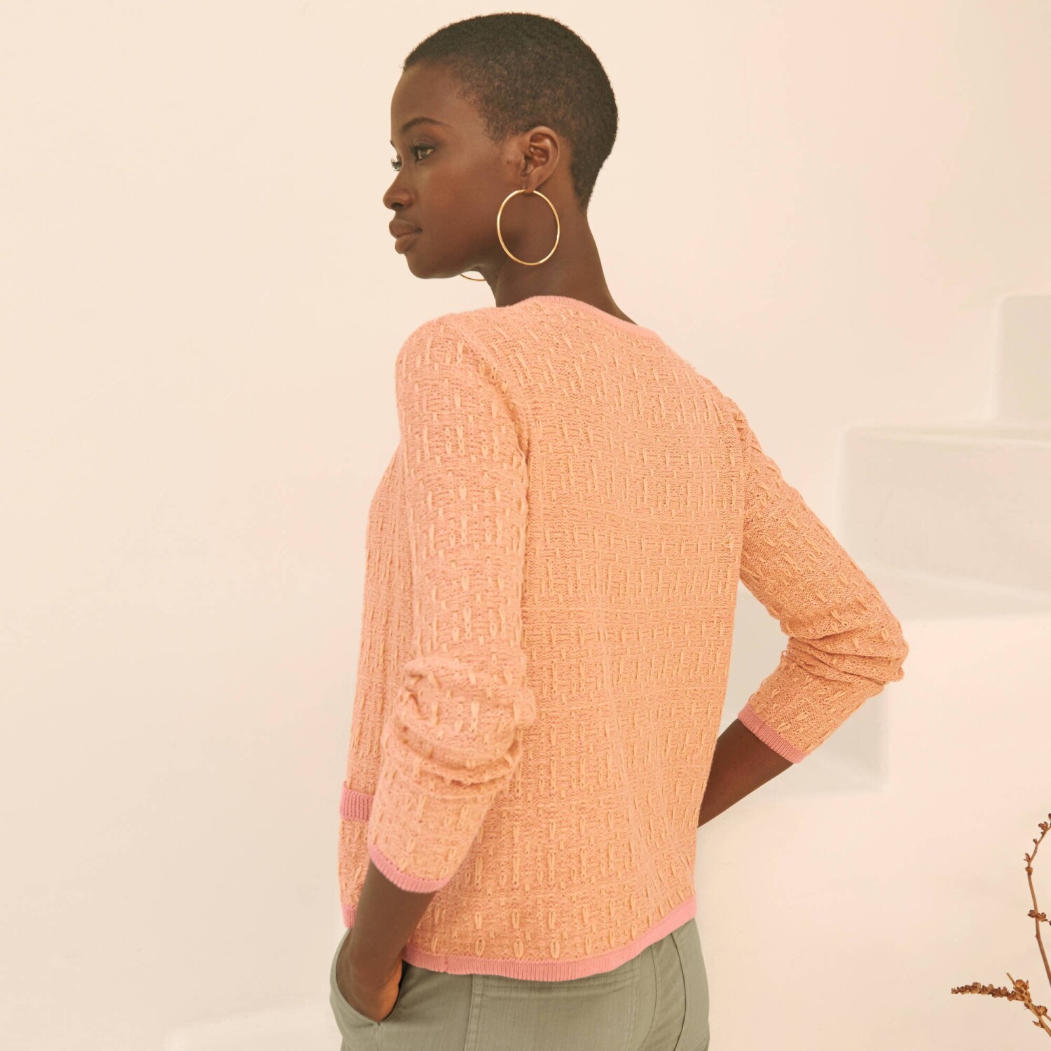 Vrúbkovaný sveter s výstrihom do V