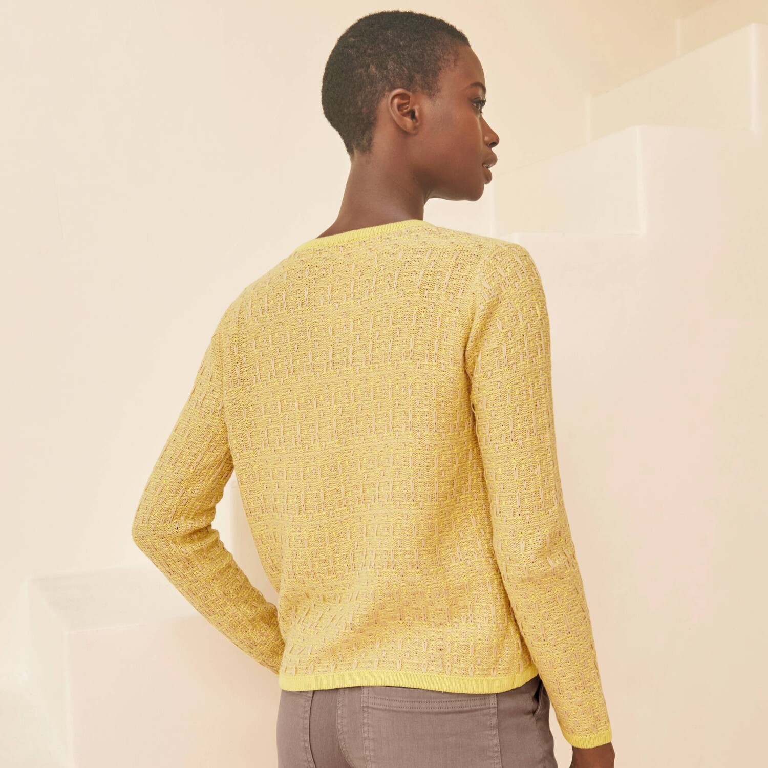 Vrúbkovaný sveter s výstrihom do V