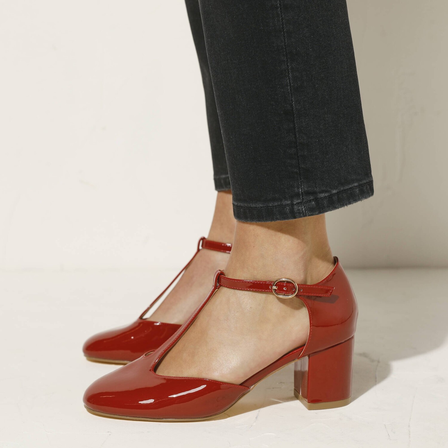 Šik a pohodlná, to je lakované lodičky na podpätku. Oblá špička. Kožená stielka na penovom podklade. Okolo členka remienok nastaviteľný pomocou spony a gumky. Remienok do "T" na zvršku nártu. Pevný opätok. Potiahnutý široký podpätok. Vaše topánky pravidelne ošetrujte prípravkom na ochranu pred škvrnami a vlhkosťou.