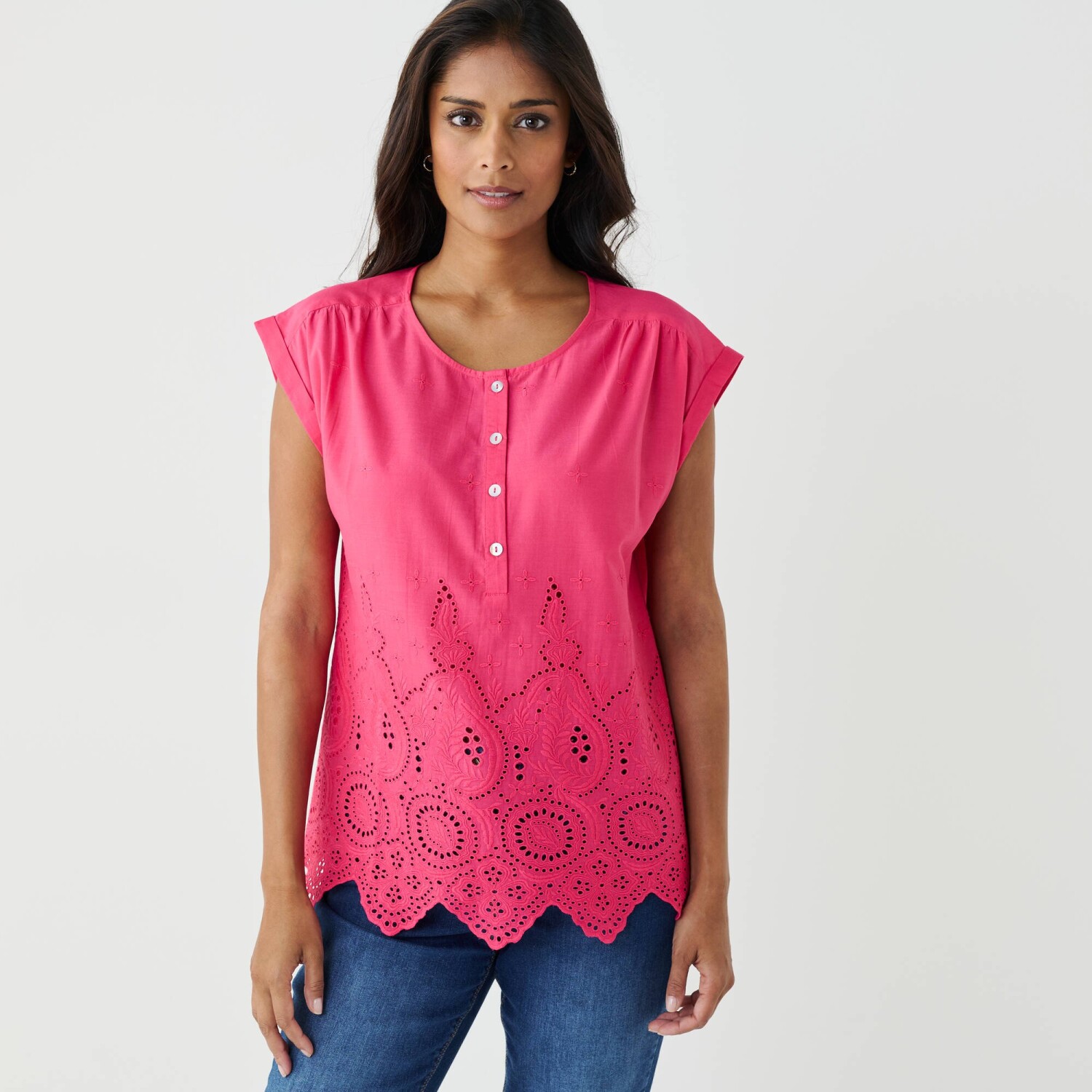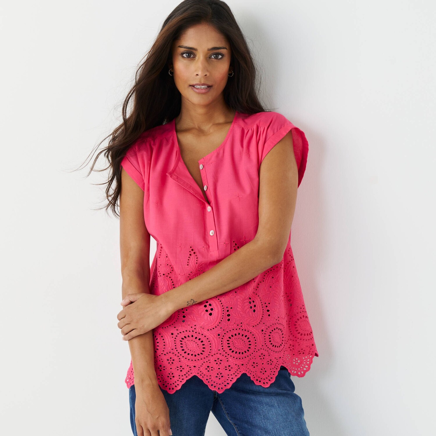 Blúzka s výšivkou a ozdobným výstrihom so strapcami