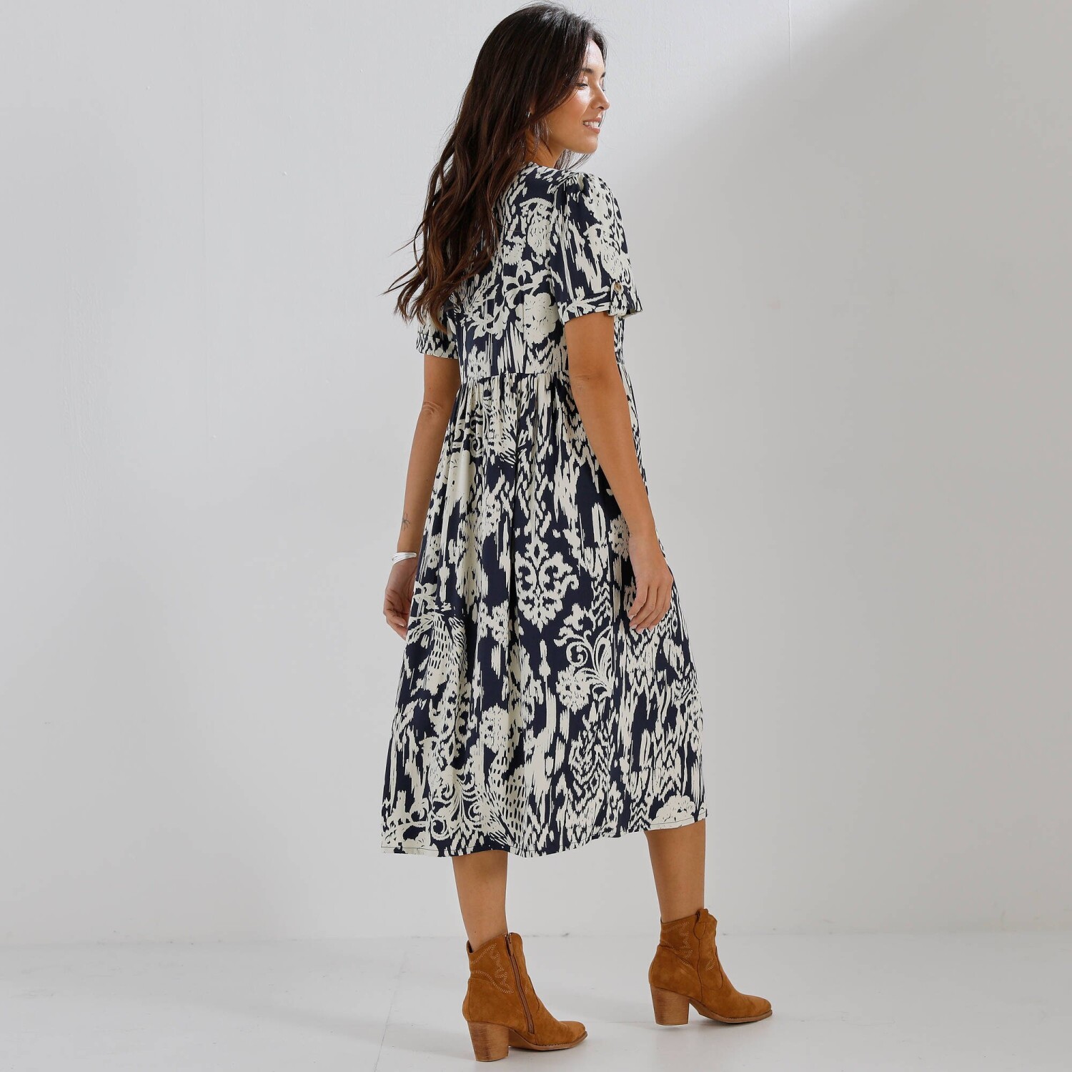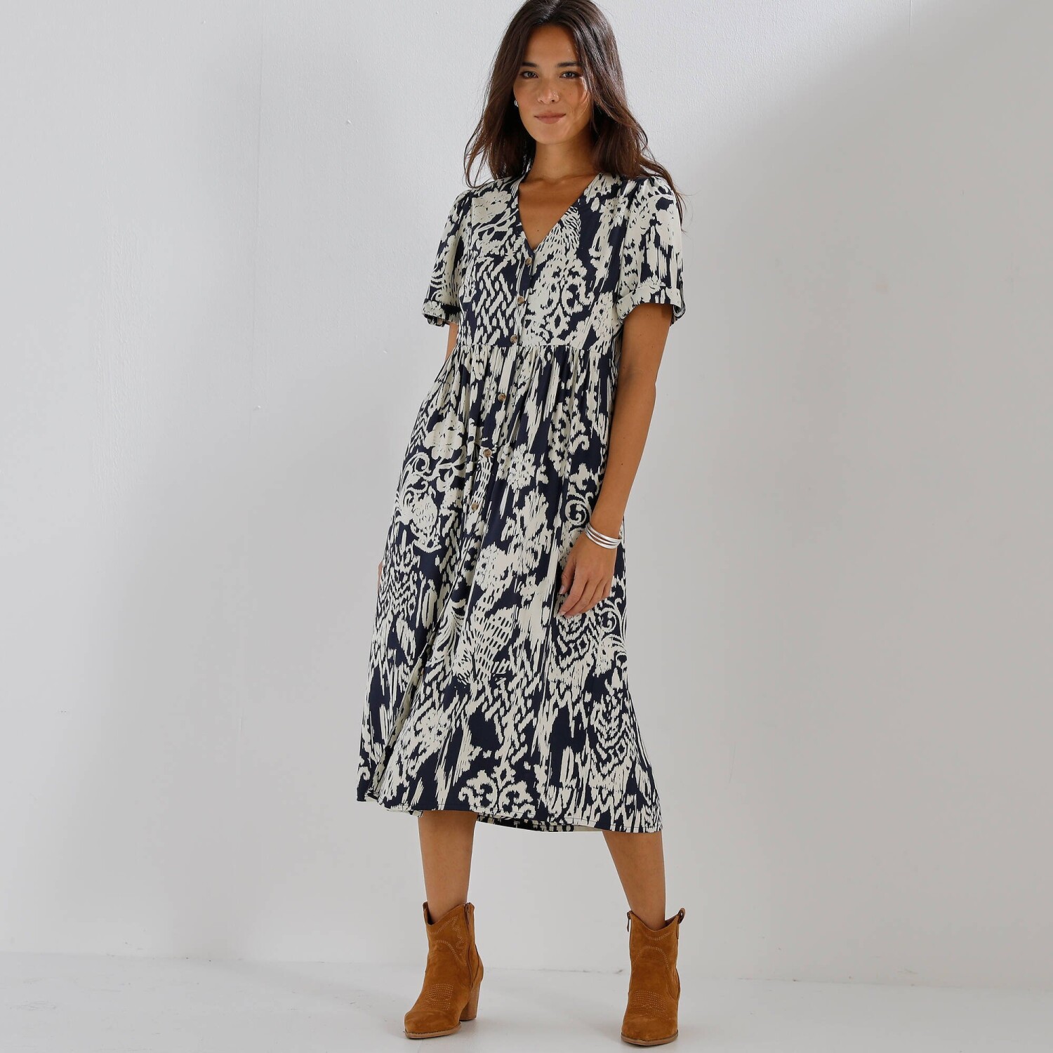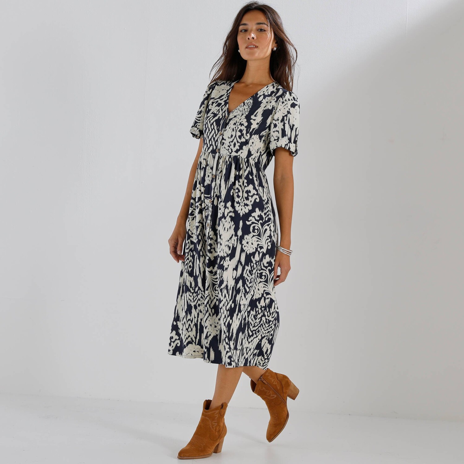 Splývavé midi šaty z viskózy s potlačou