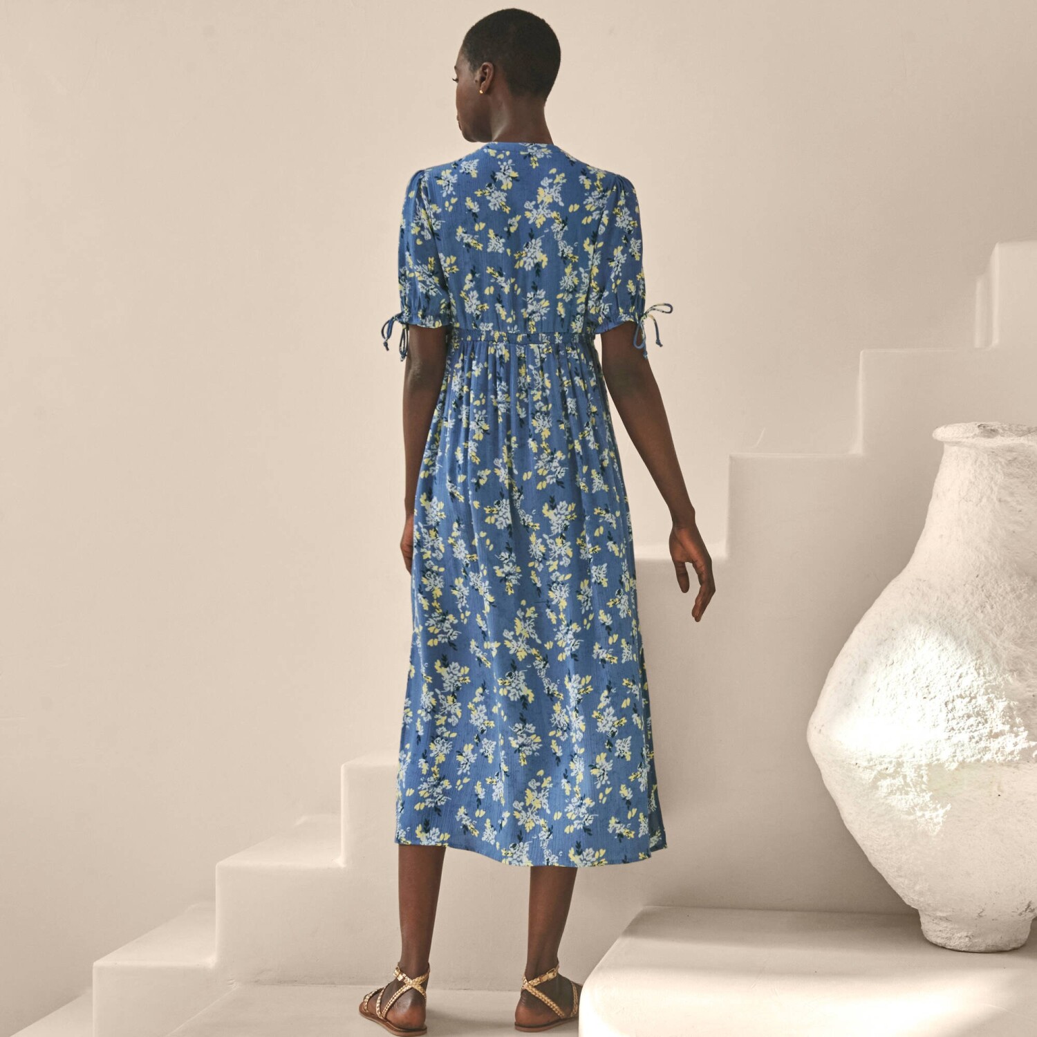Midi džínsové šaty s rozšírenými rukávmi