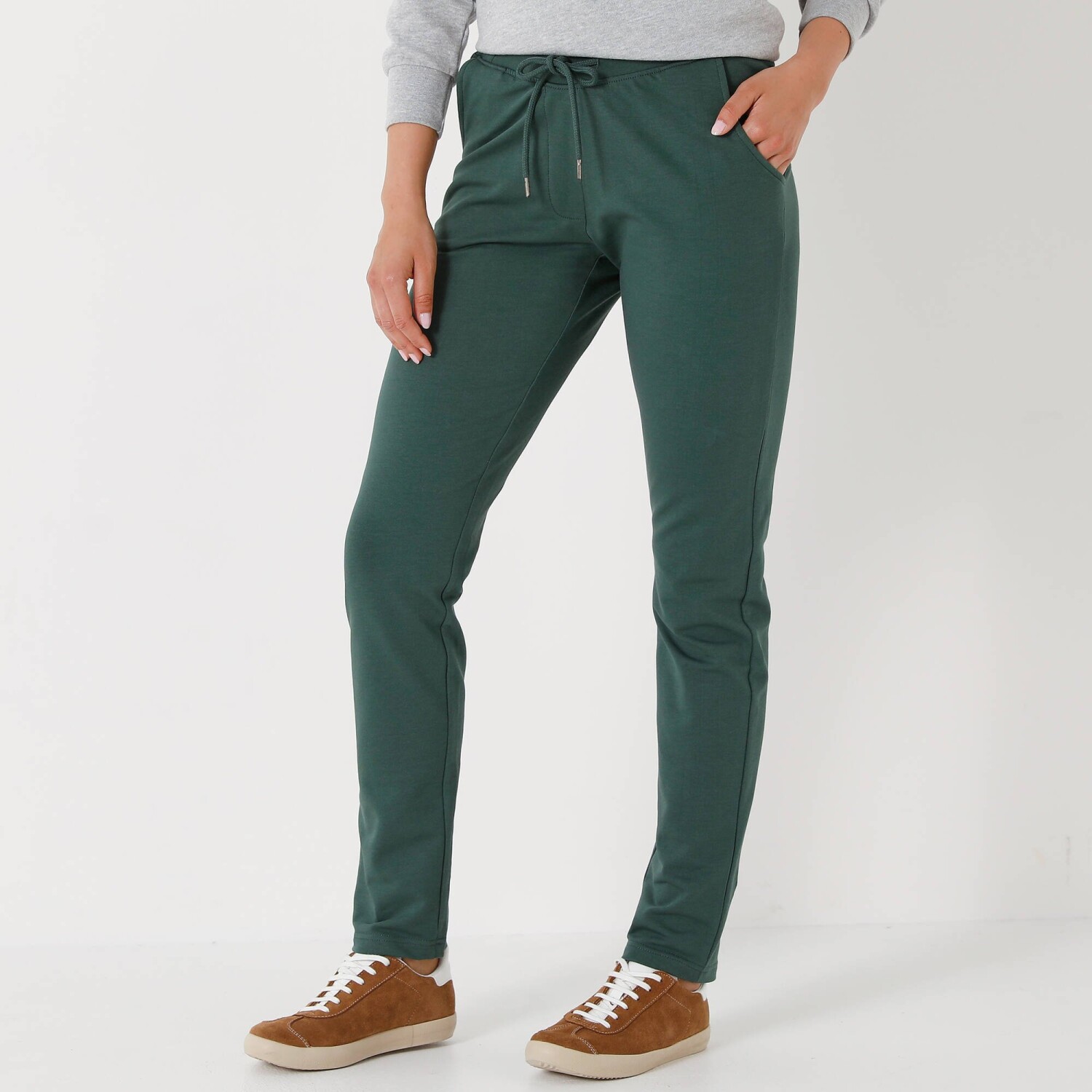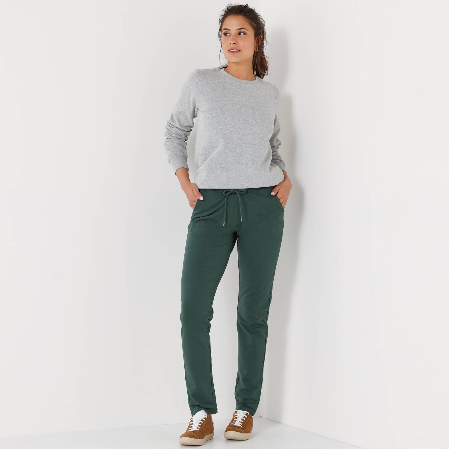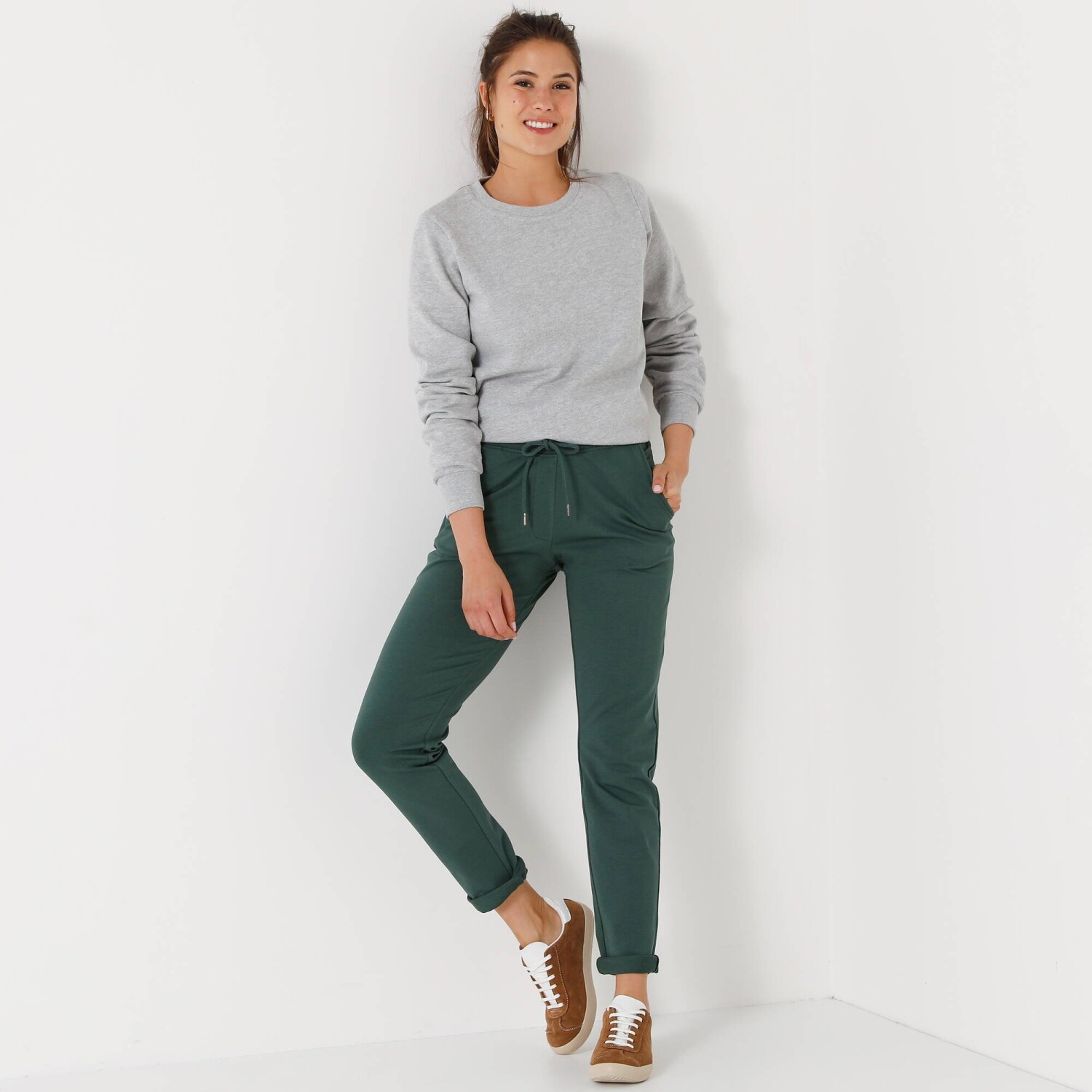 Napol športové, napol klasické, tieto moltonové nohavice sa stanú najpohodlnejším kúskom Vášho šatníka! S ohrnutím alebo bez, s balerínkami alebo teniskami, vždy budú štýlové. Z jemného moltonu. Vpredu plochý, vzadu pružný pás. Vpredu šnúrka na stiahnutie. 2 bočné vrecká. Standard 100 by Oeko-Tex (n° CQ 1216/3 IFTH). Táto známka označuje textilné výrobky, ktoré boli podrobené laboratórnym testom na široké spektrum škodlivých látok a výrobok je bezpečný nad rámec platných noriem. Možno prať na 30 °C.
