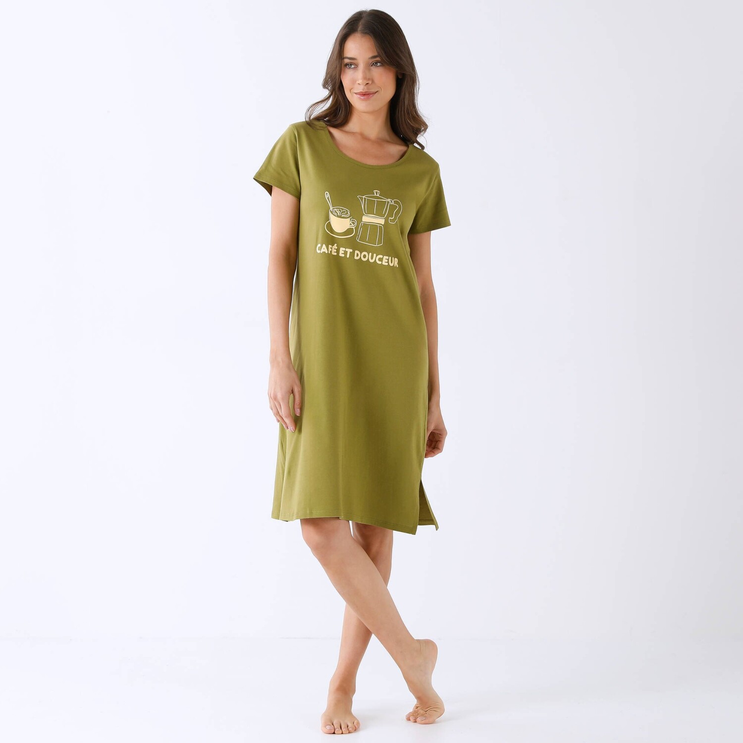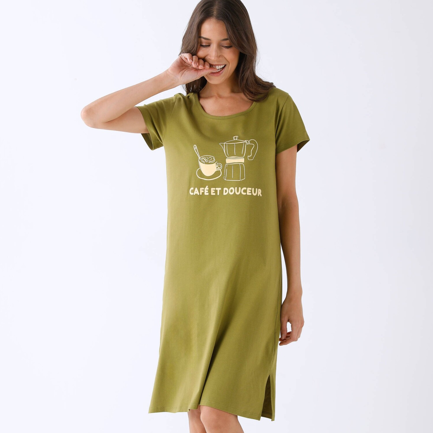 Krátka nočná košeľa s krátkymi rukávmi a potlačou roziet