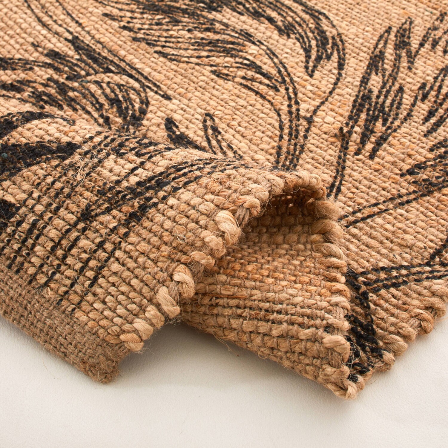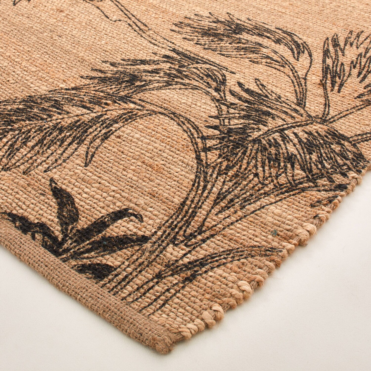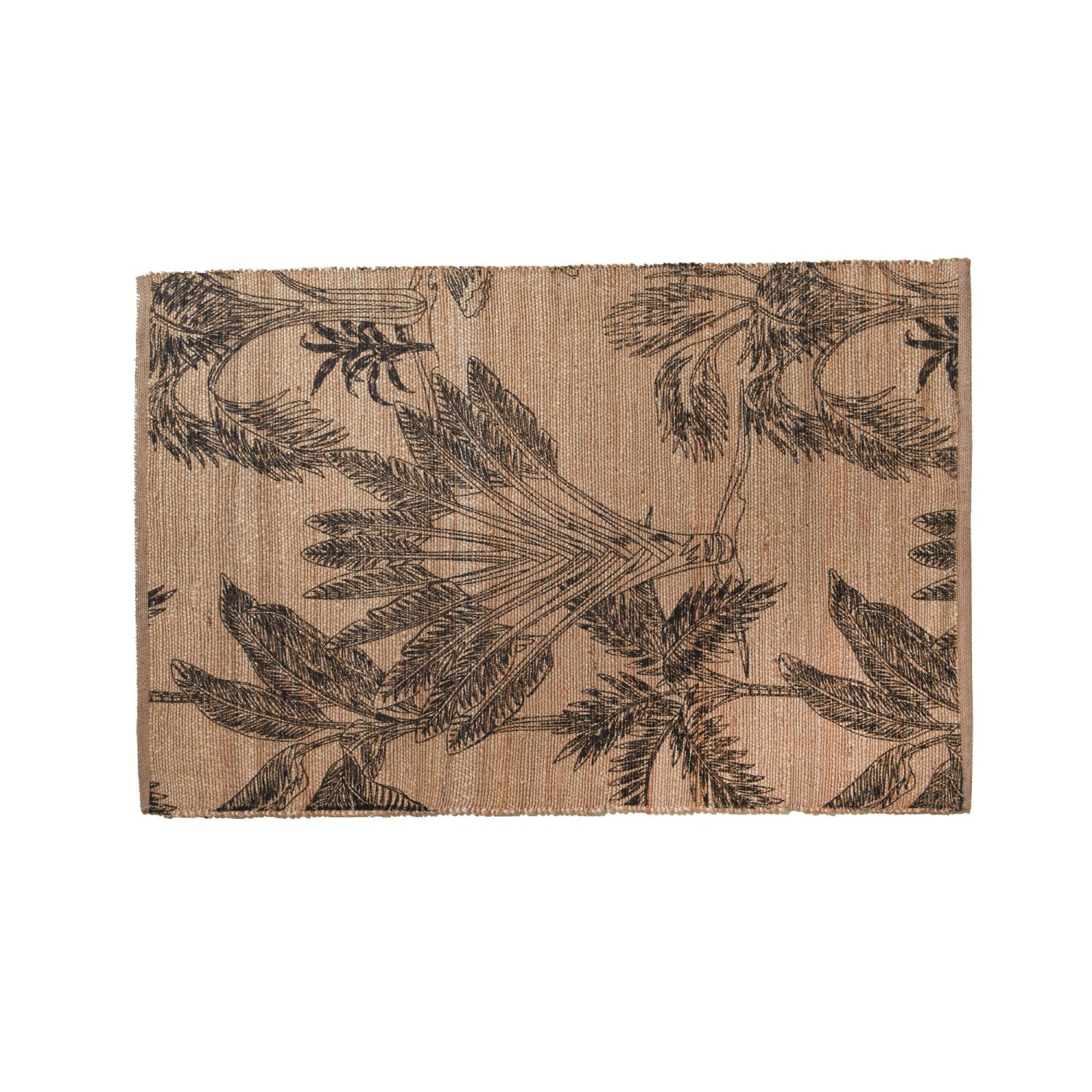 Obdĺžnikový jutový koberec s rastlinným motívom