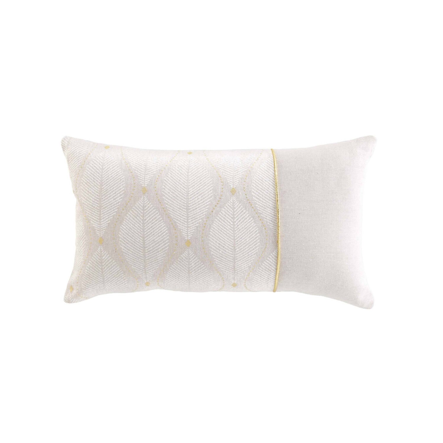 Vdýchnite módny dizajn do Vášho interiéru vankúšom s potlačou listov. Obdĺžnikové rozmery. Štýlová potlač listov. Vpredu elegantné zlaté detaily. Jednofarebný zadný diel. Obliečku na zips je možné stiahnuť a vyprať.