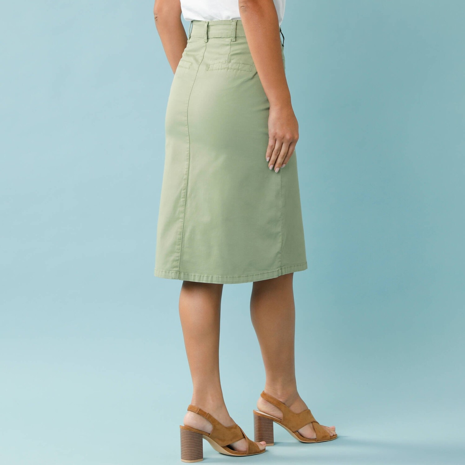 Jednofarebná splývavá midi sukňa na gombíky z eco-friendly viskózy