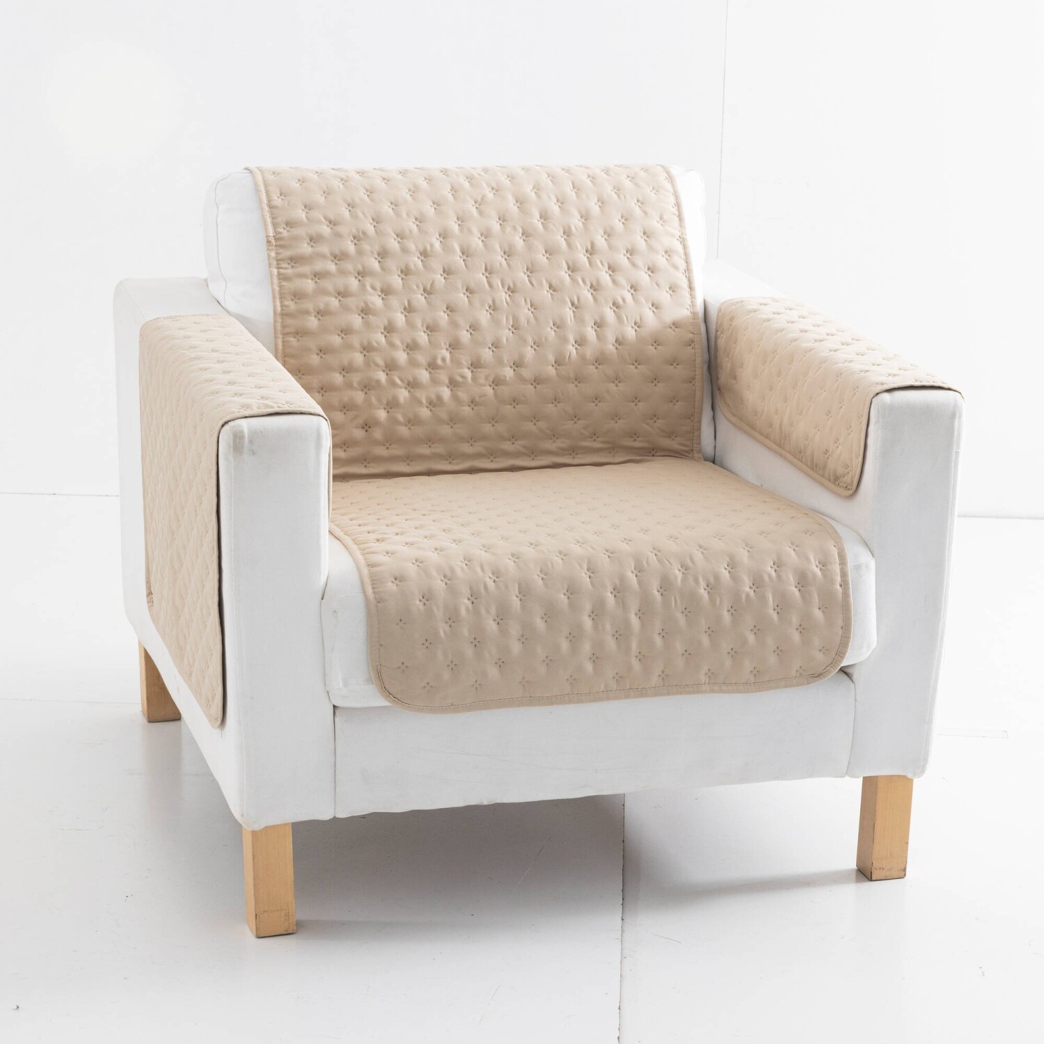 Poťah na pohovku a kreslo z mikrovlákna s výplňou spoľahlivo ochráni pred škvrnami, striekancami i domácimi miláčikmi. Rub s protišmykovou silikónovou úpravou, vďaka ktorej sa neposúva. Laserové bodové prešitie. Zakončený lemom. Ochrana opierok v súprave 2 ks v ponuke samostatne. Standard 100 by Oeko-Tex (n° CQ 1216/1 IFTH). Táto známka označuje textilné výrobky, ktoré boli podrobené laboratórnym testom na široké spektrum škodlivých látok a výrobok je bezpečný nad rámec platných noriem. S ohľadom na životnéhé prostredie odporúčame prať na 30 °C a sušiť voľne na vzduchu.