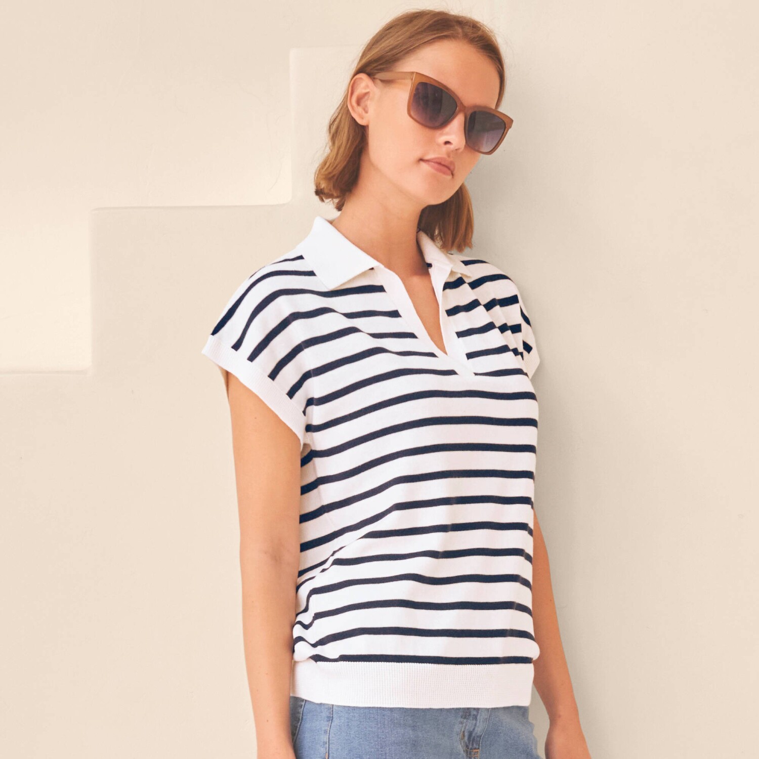 Pruhovaný pulóver so širokými 7/8 rukávmi a vzorom