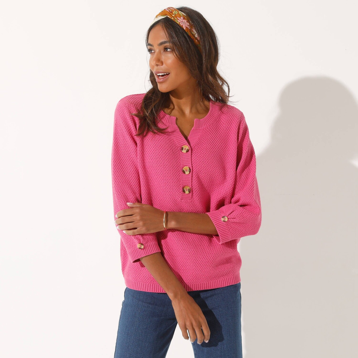Prihlásenie RegistrovaťLežérne, originálne a s gombíkmi so vzhľadom rohoviny, to je módny pulóver s dvojitým ryžovým vzorom. Tuniský výstrih s gombíkmi. 3/4 rukávy so skladmi a gombíkom. Rovný dolný lem. Dvojitý ryživý vzor. Možno prať v práčke.