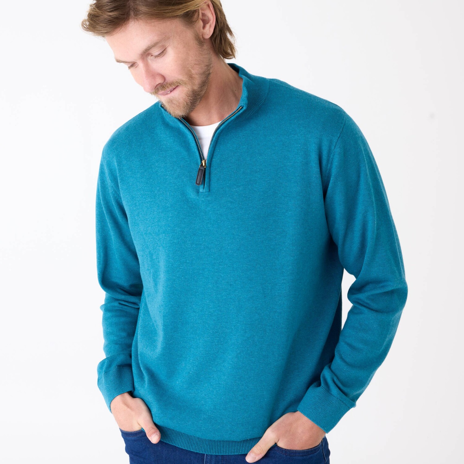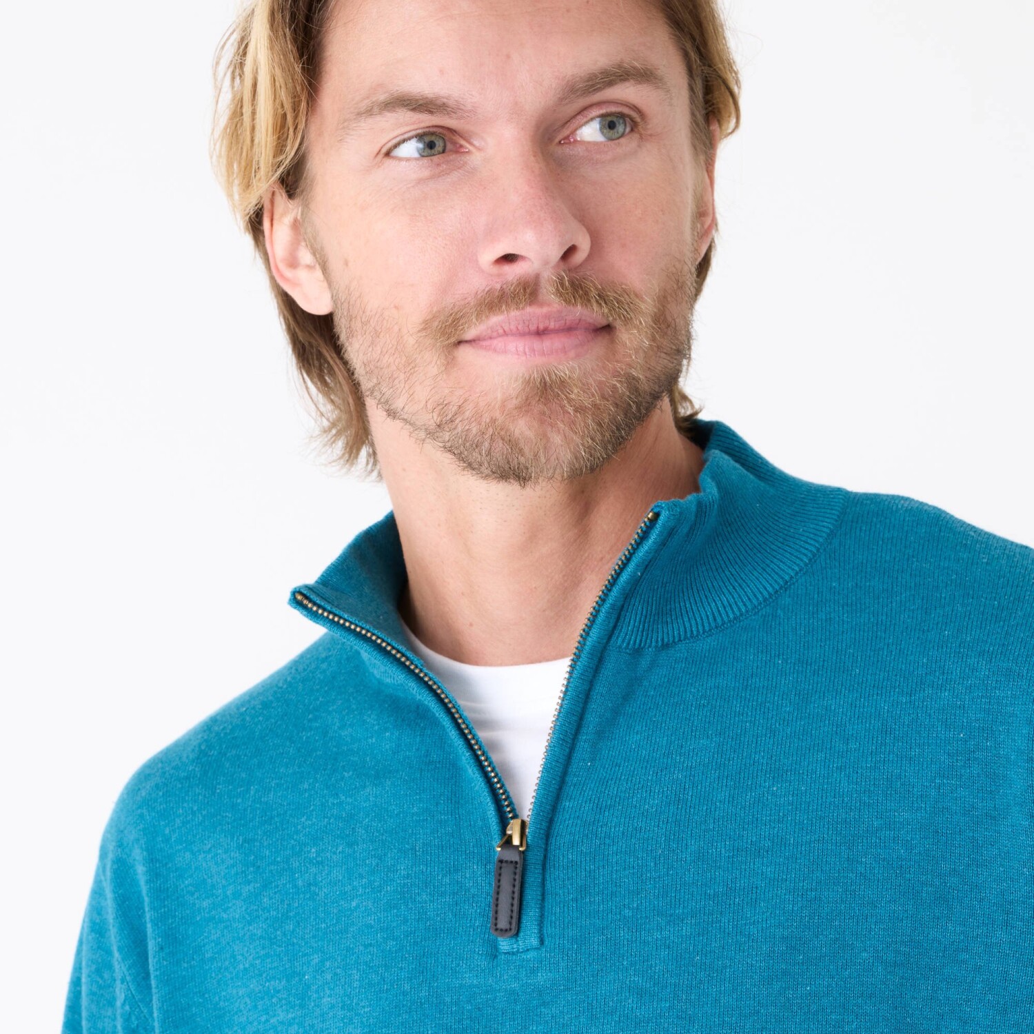 Pruhovaný pulóver so stojačikom na zips, kašmírový na dotyk