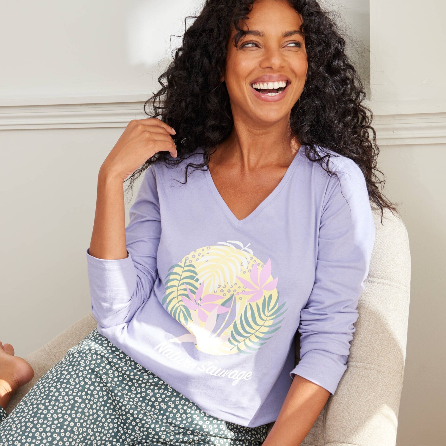 Pyžamové tričko s dlhými rukávmi a potlačou Nature Sauvage