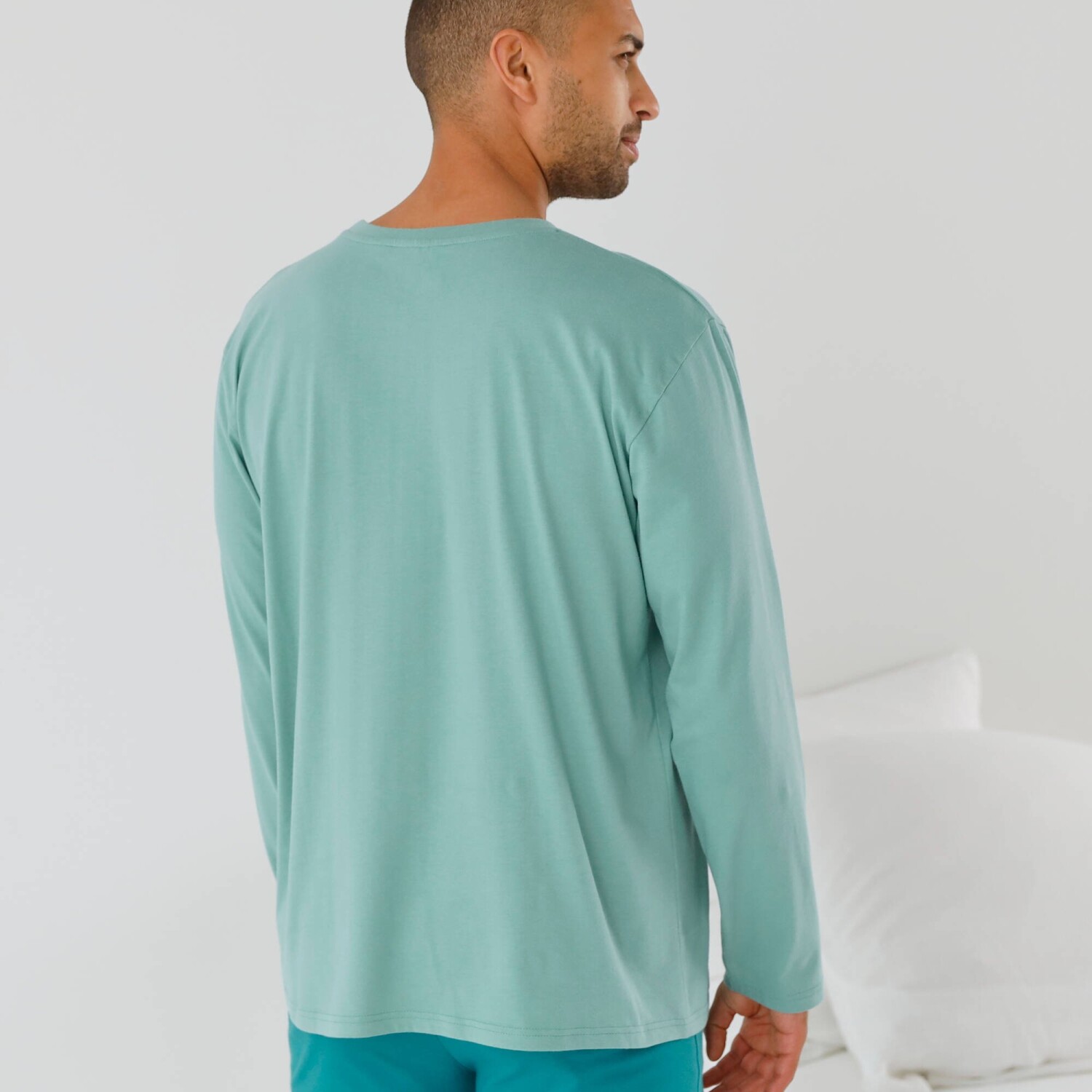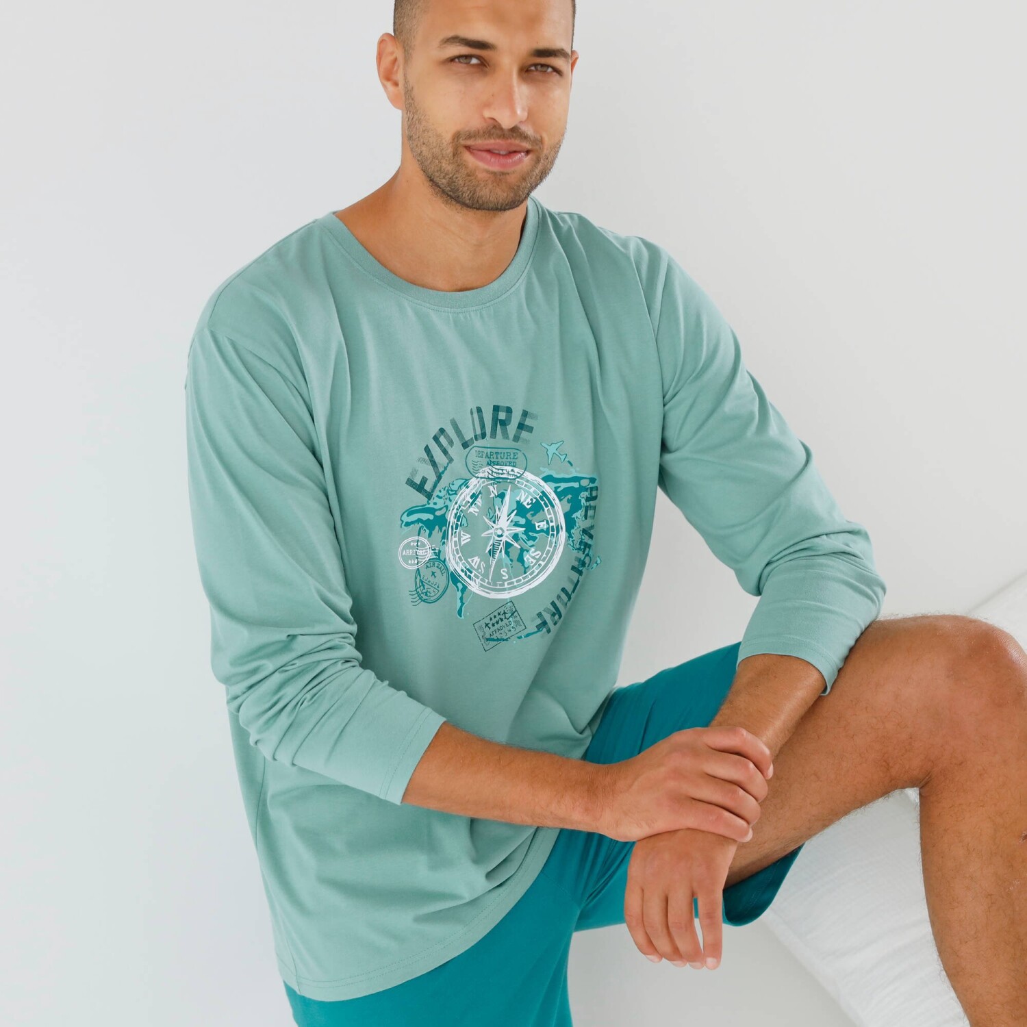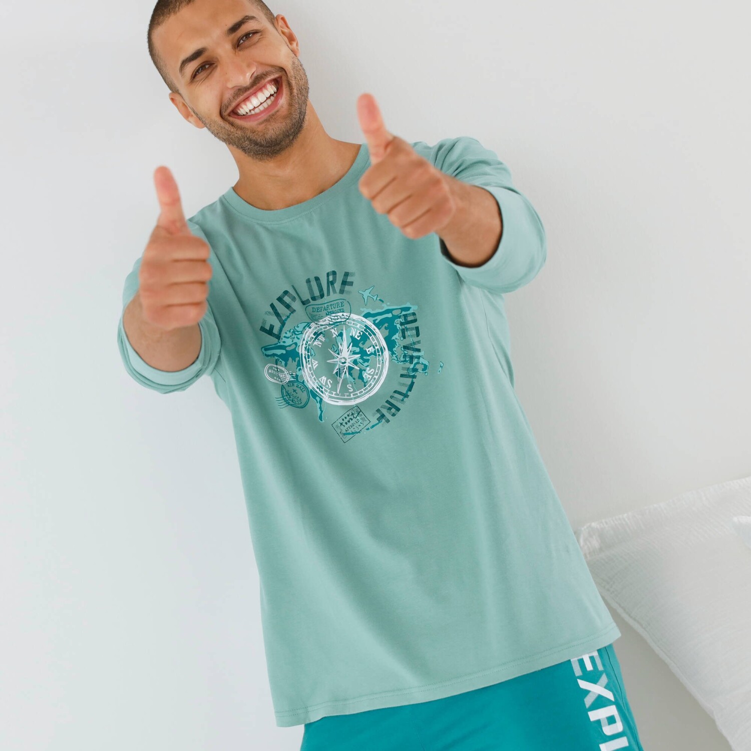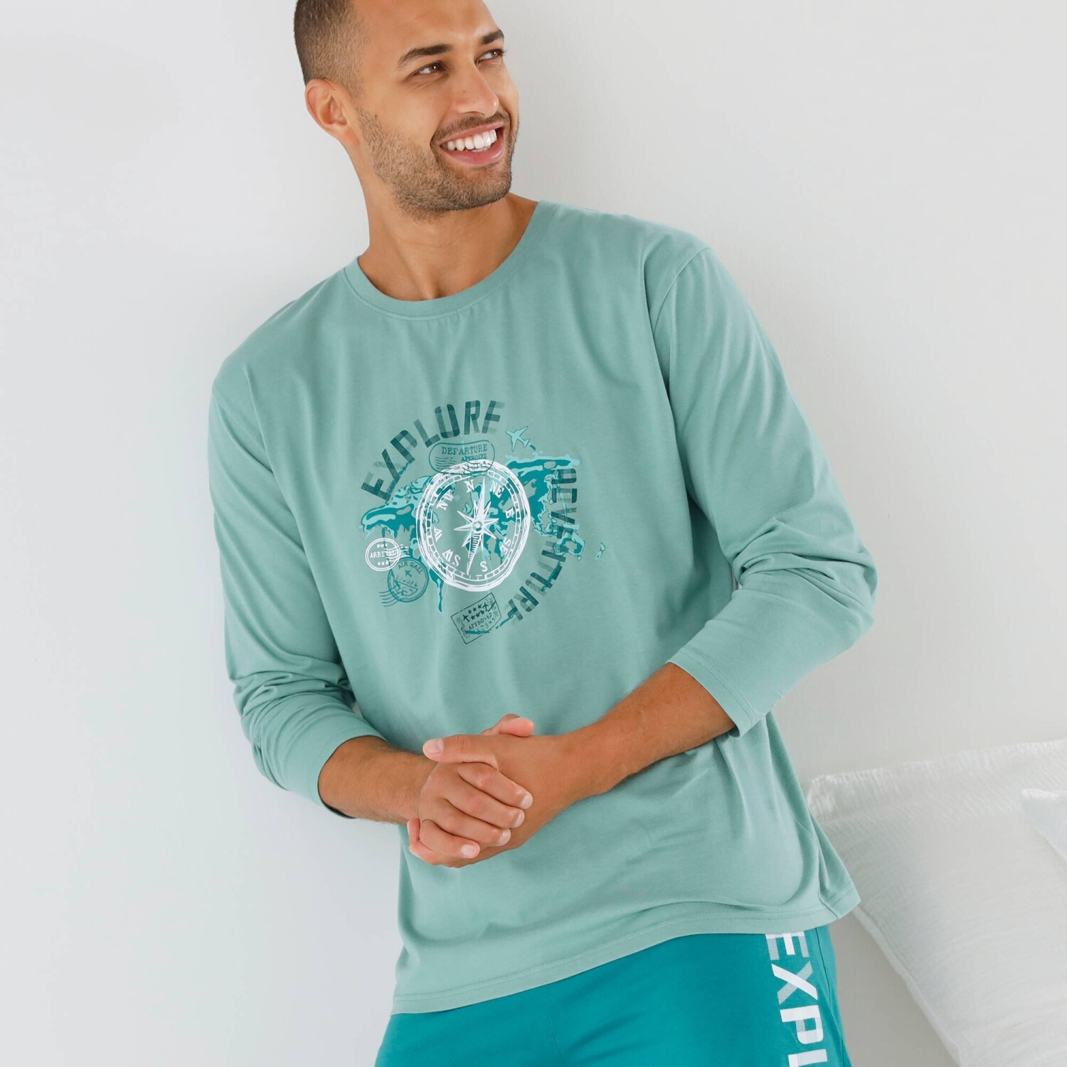 Jemné vďaka 100 % bavlne, so štýlovou potlačou na prednom diele: vytvorte si pyžamo snov a začnite týmto tričkom s dlhými rukávmi! Okrúhly výstrih. Vpredu stredová potlač. Dlhé rukávy. Rovný dolný lem. Standard 100 by Oeko-Tex (n° CQ 1216 / 3 IFTH). Táto známka označuje textilné výrobky, ktoré boli podrobené laboratórnym testom na široké spektrum škodlivých látok a výrobok je bezpečný nad rámec platných noriem. Možno prať v práčke.