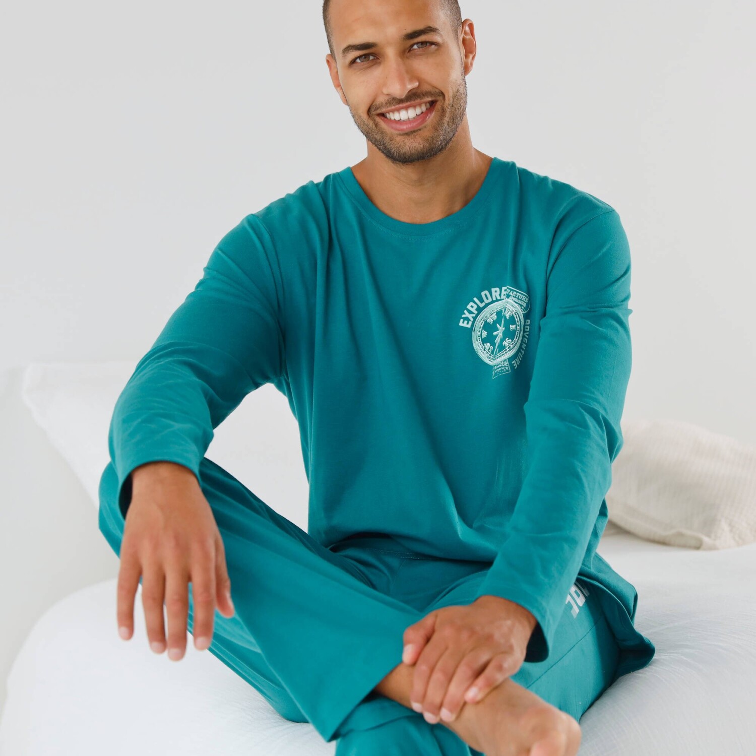 Pyžamové tričko vyniká krásnou potlačou na hrudníku. Okrúhly výstrih. Vpredu potlač. Dlhé rukávy. Rovný dolný lem. Standard 100 by Oeko-Tex (n° CQ 1216 / 3 IFTH). Táto známka označuje textilné výrobky, ktoré boli podrobené laboratórnym testom na široké spektrum škodlivých látok a výrobok je bezpečný nad rámec platných noriem. Možno prať v práčke.