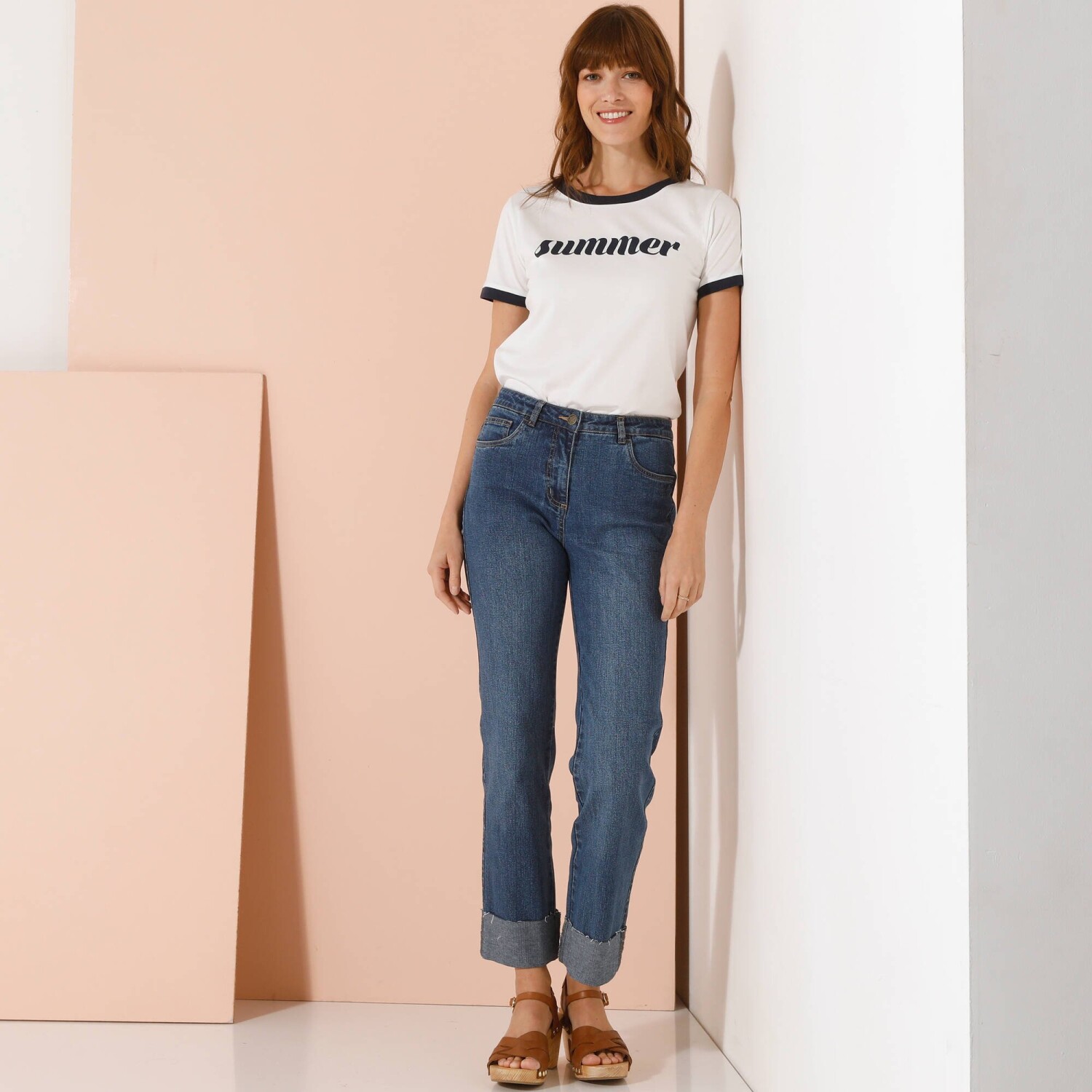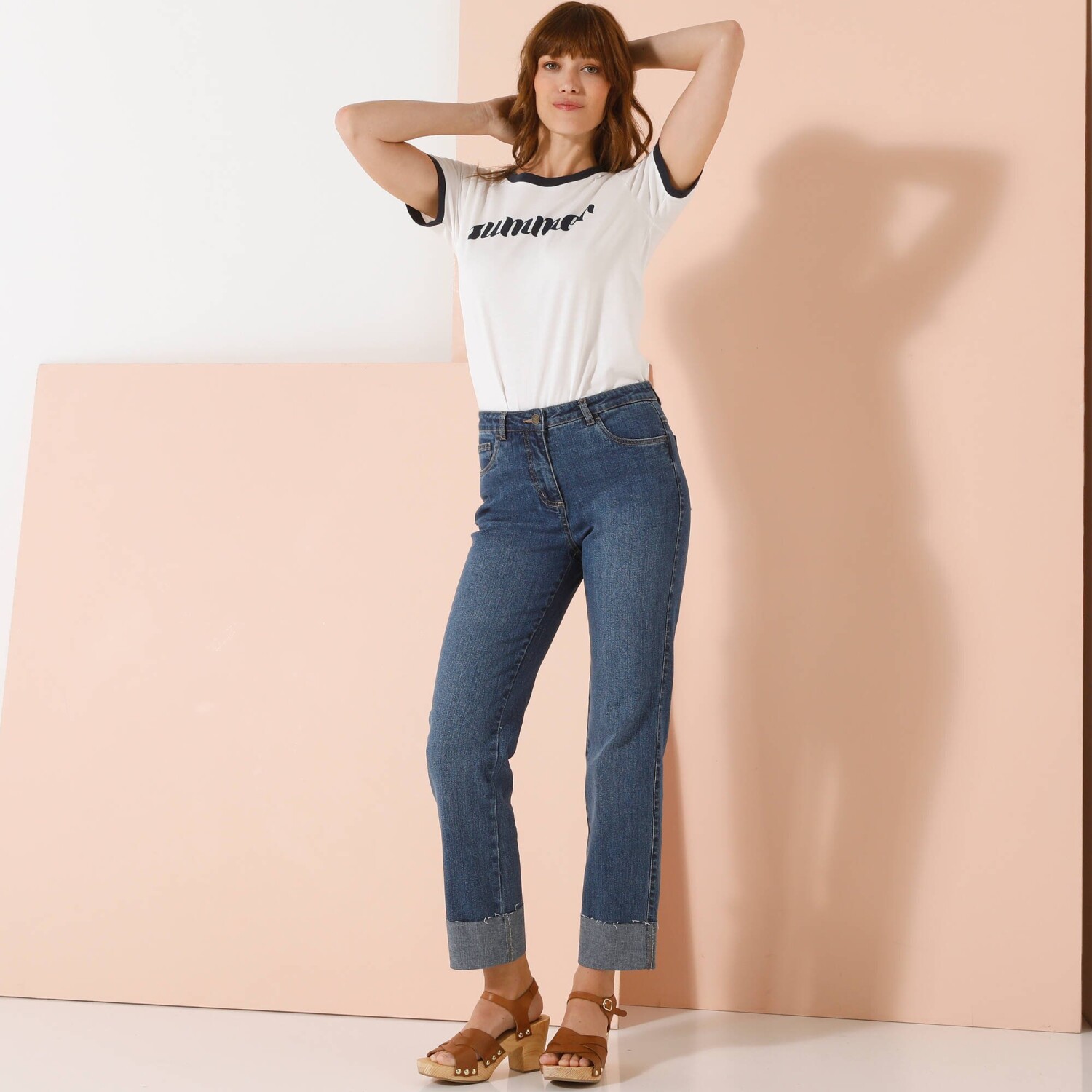 Rovné džínsy pre nižšiu postavu