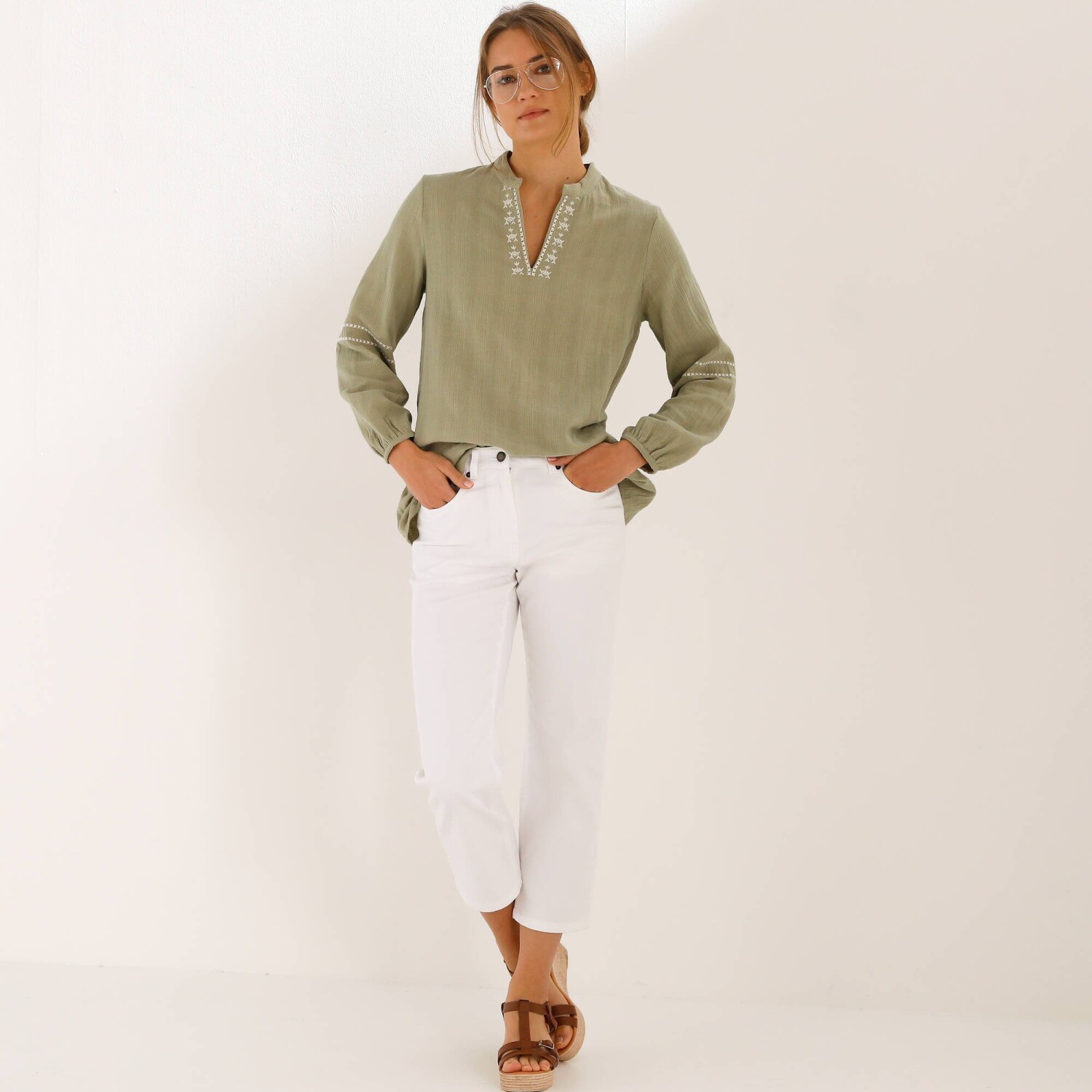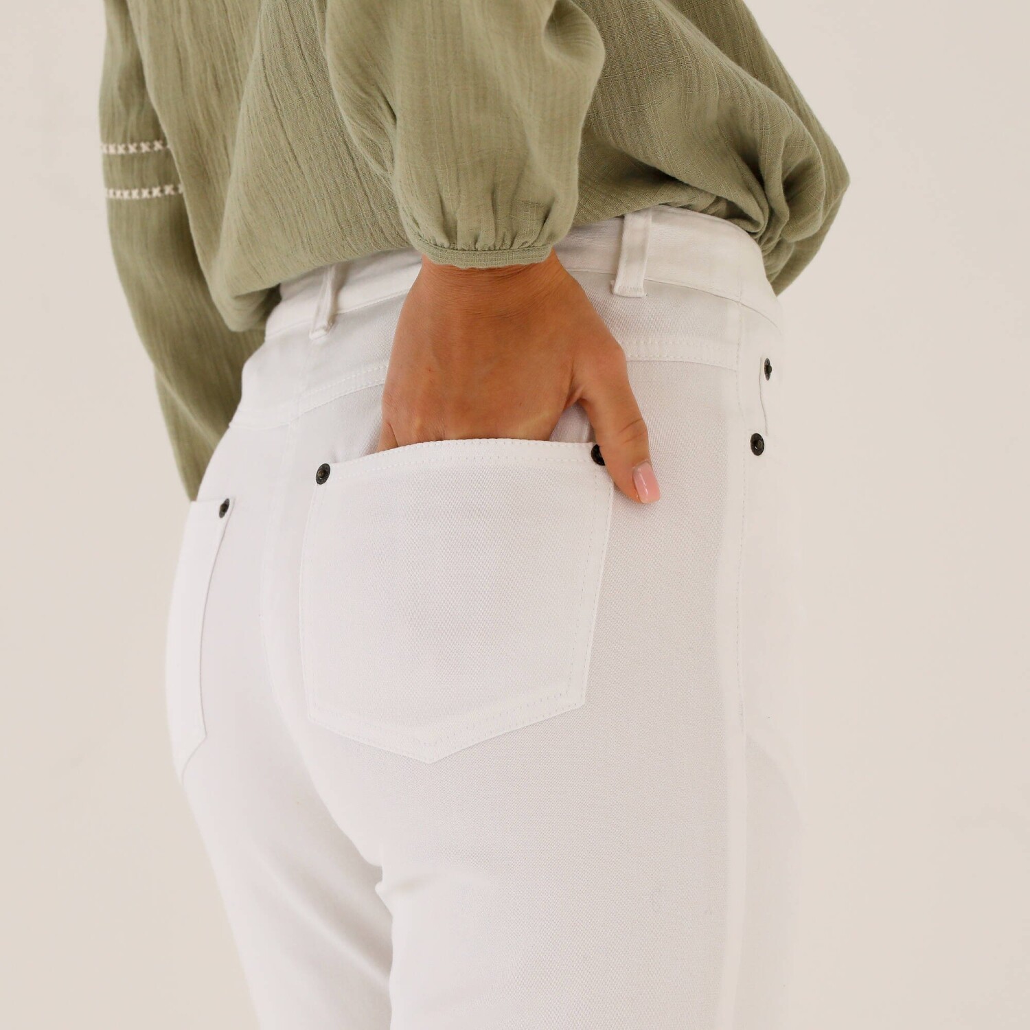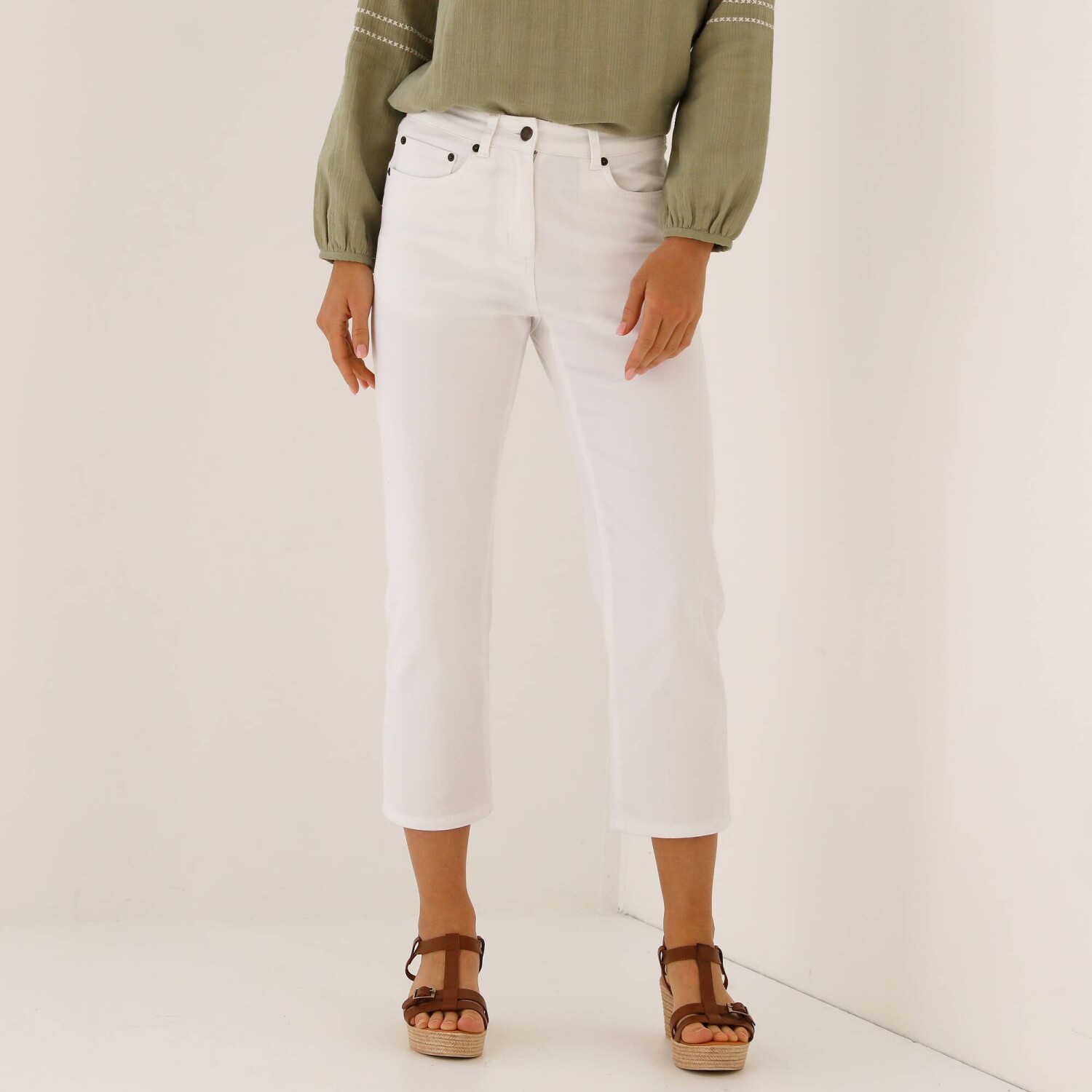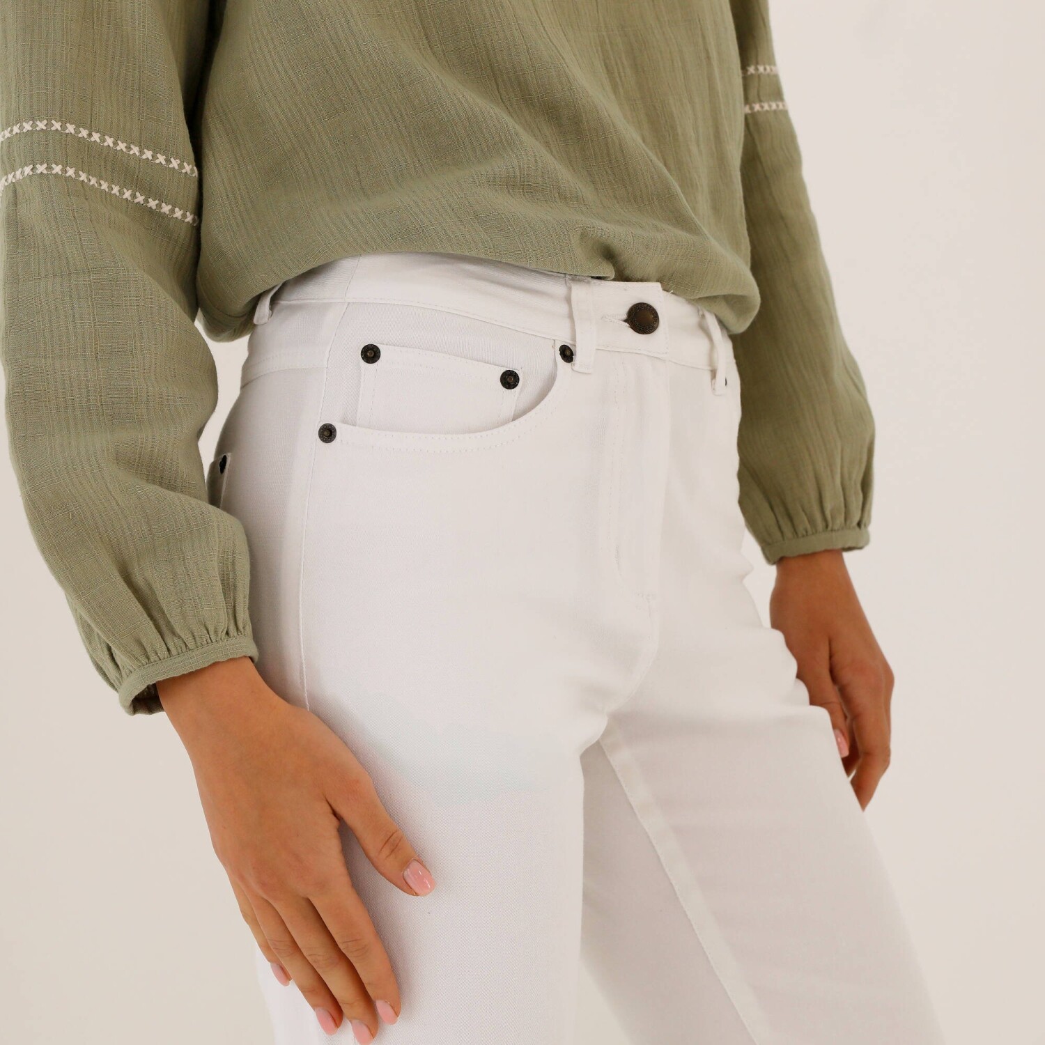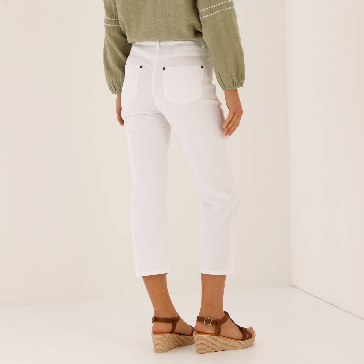 V širokej palete farieb, vyberte si rovné 7/8 nohavice vo Vašom obľúbenom odtieni. Rovný strih. Bežná výška pása. Zapínanie na zips a kovový gombík vpredu. 2 vrecká a 1 vrecko s nitmi vpredu. Tvarovaný pás s pútkami. Zvýšený sed. 2 našité vrecká s nitmi vzadu. Certifikát Made In Green značky OEKO-TEX®. Okrem overenia niekoľkých stoviek chemických látok (STANDARD 100), čím prispieva k vysokej bezpečnosti, toto označenie zaručuje ohľaduplné výrobné princípy a kontrolované spoločenské postupy (certifikát STeP). Možno prať v práčke.