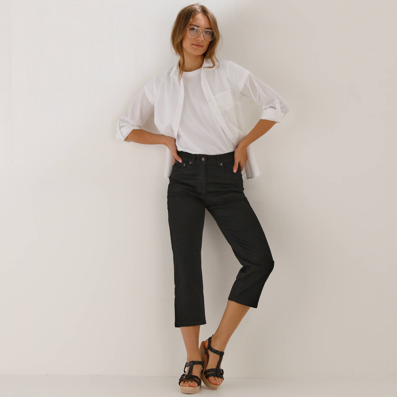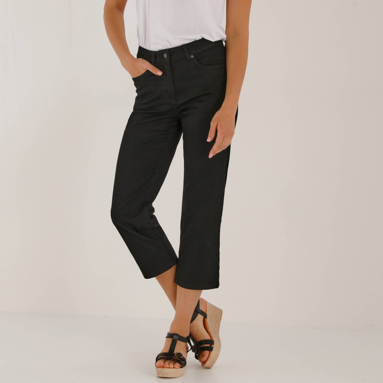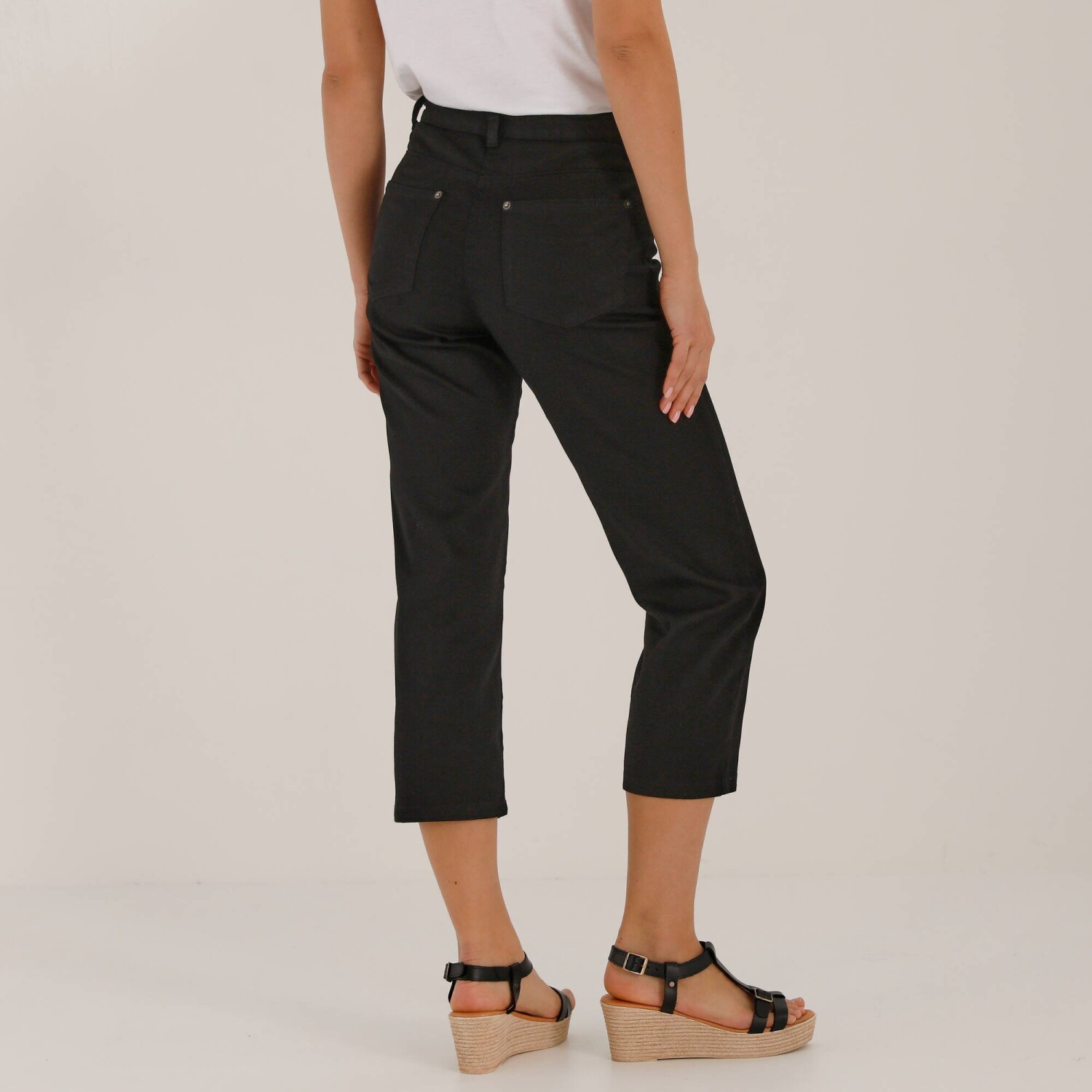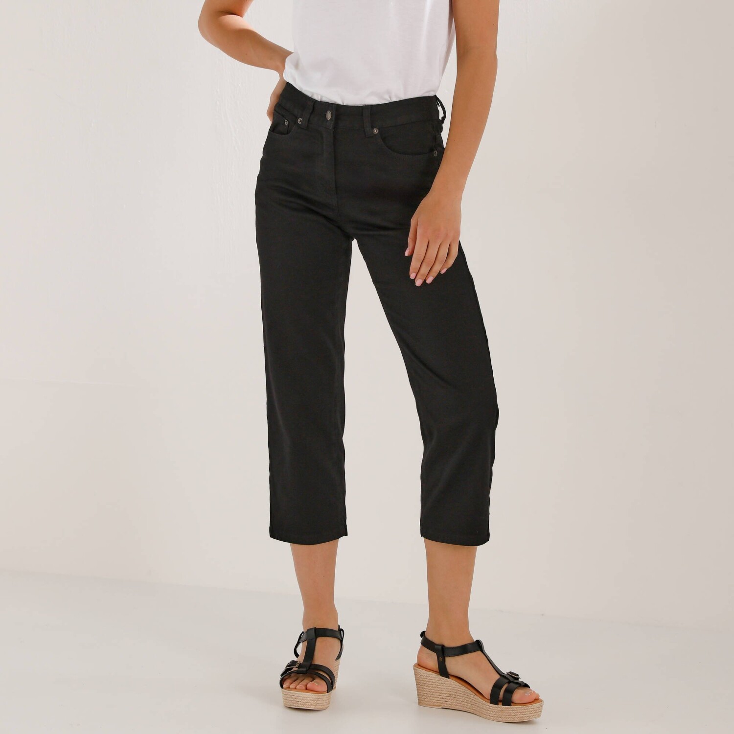 Pohodlné denimové 3/4 nohavice s pružným pásom