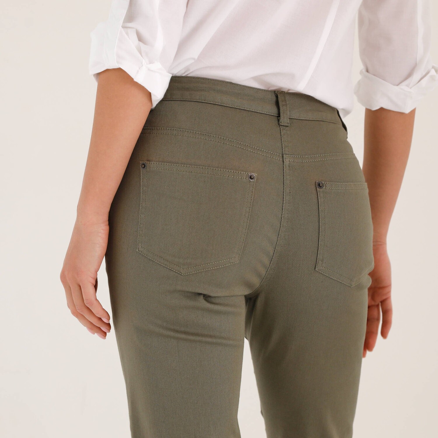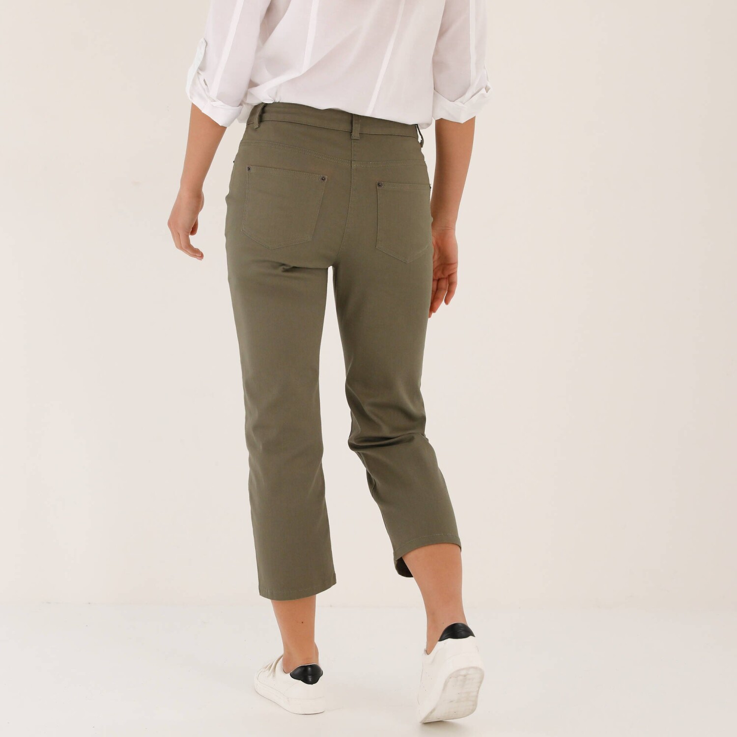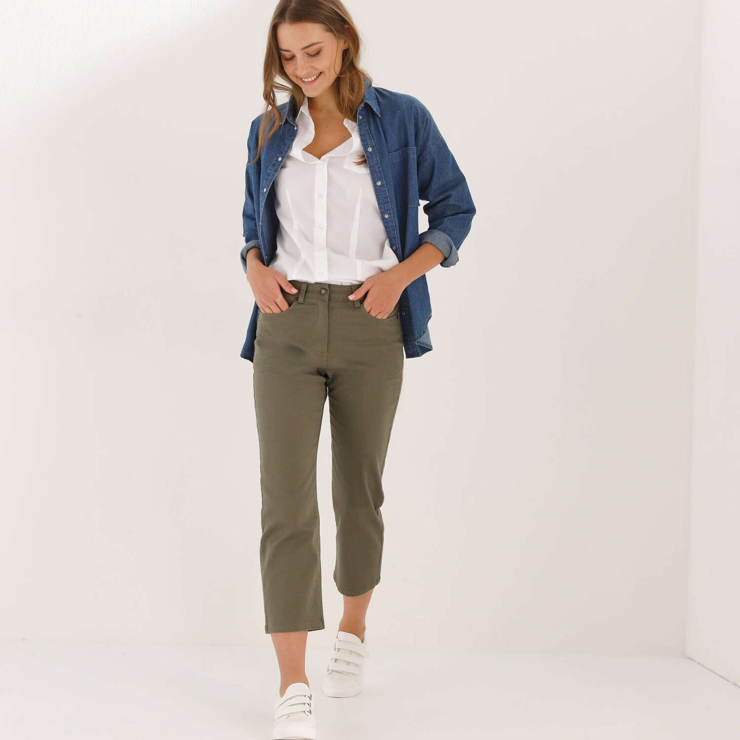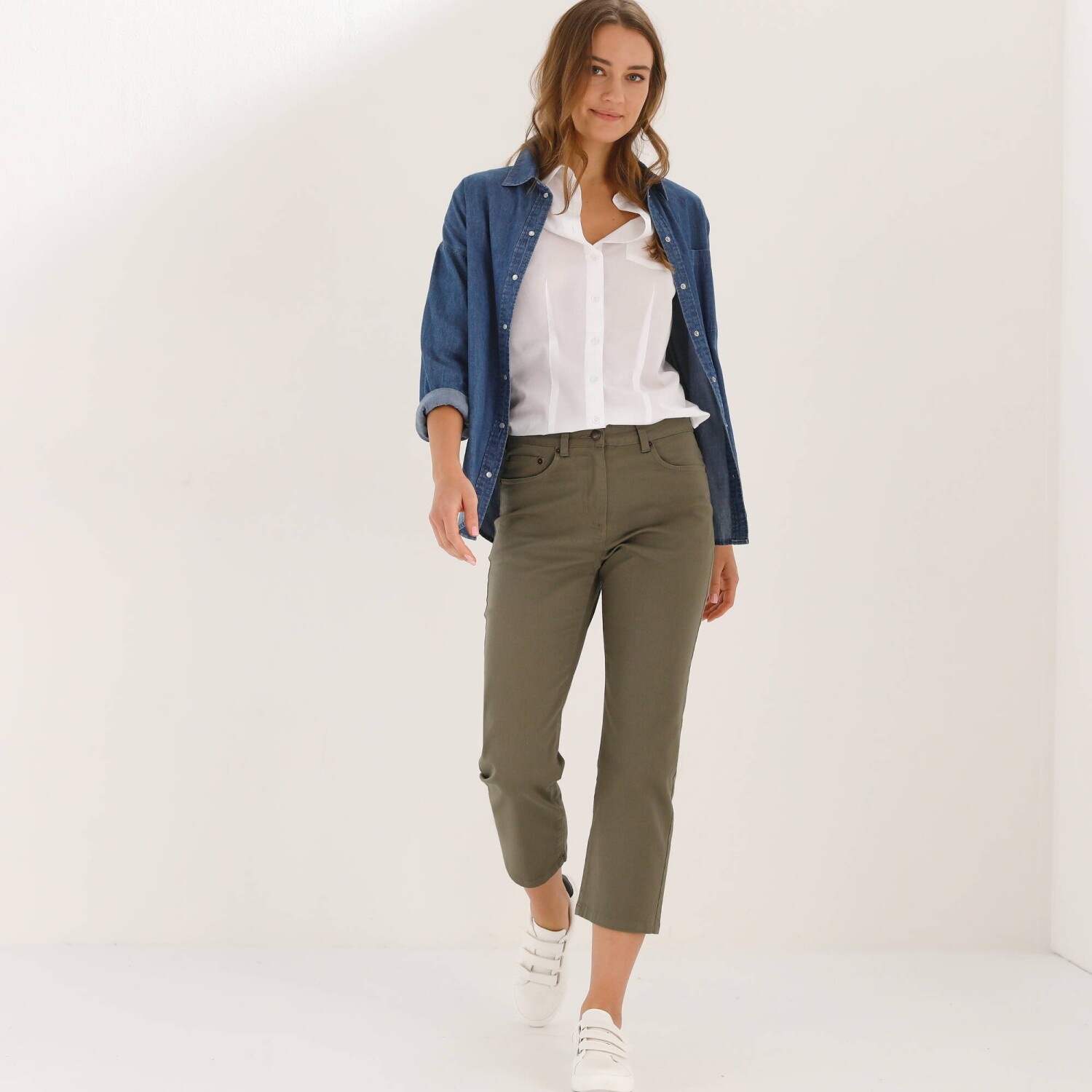 Pohodlné denimové 3/4 nohavice s pružným pásom