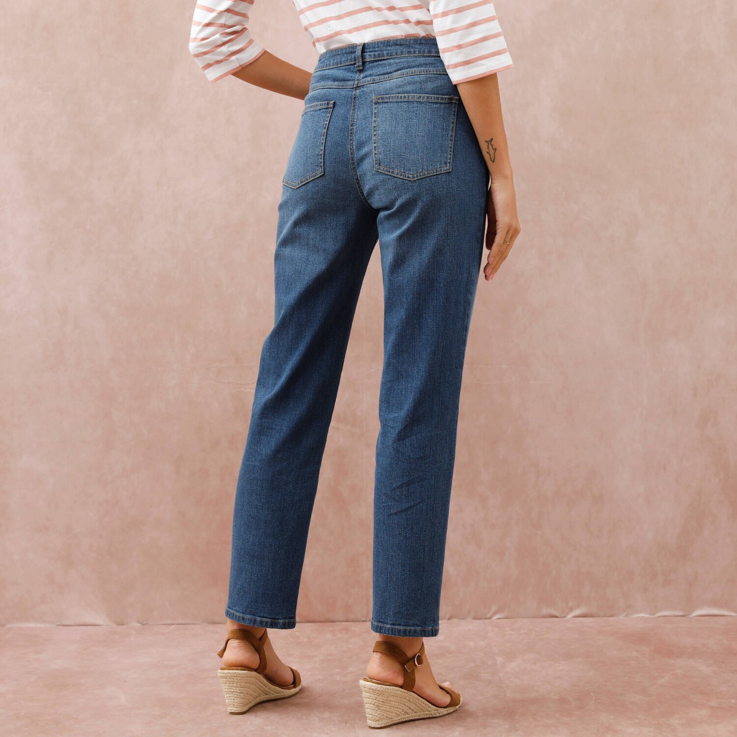 Rovné 7/8 džínsy s ohrnutými nohavicami a vysokým pásom