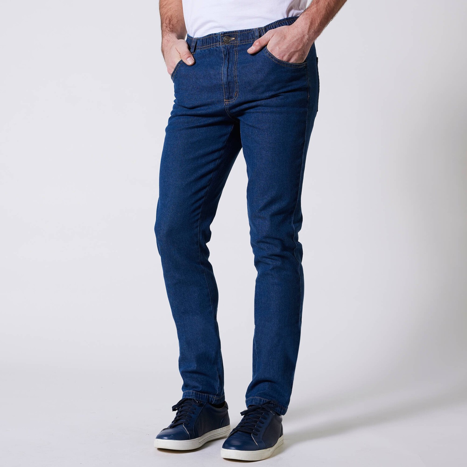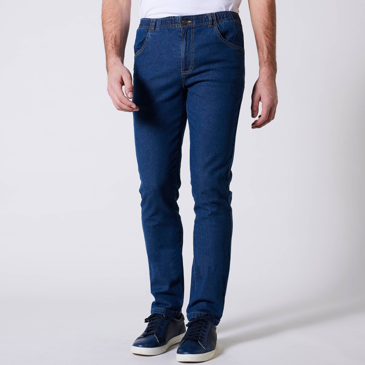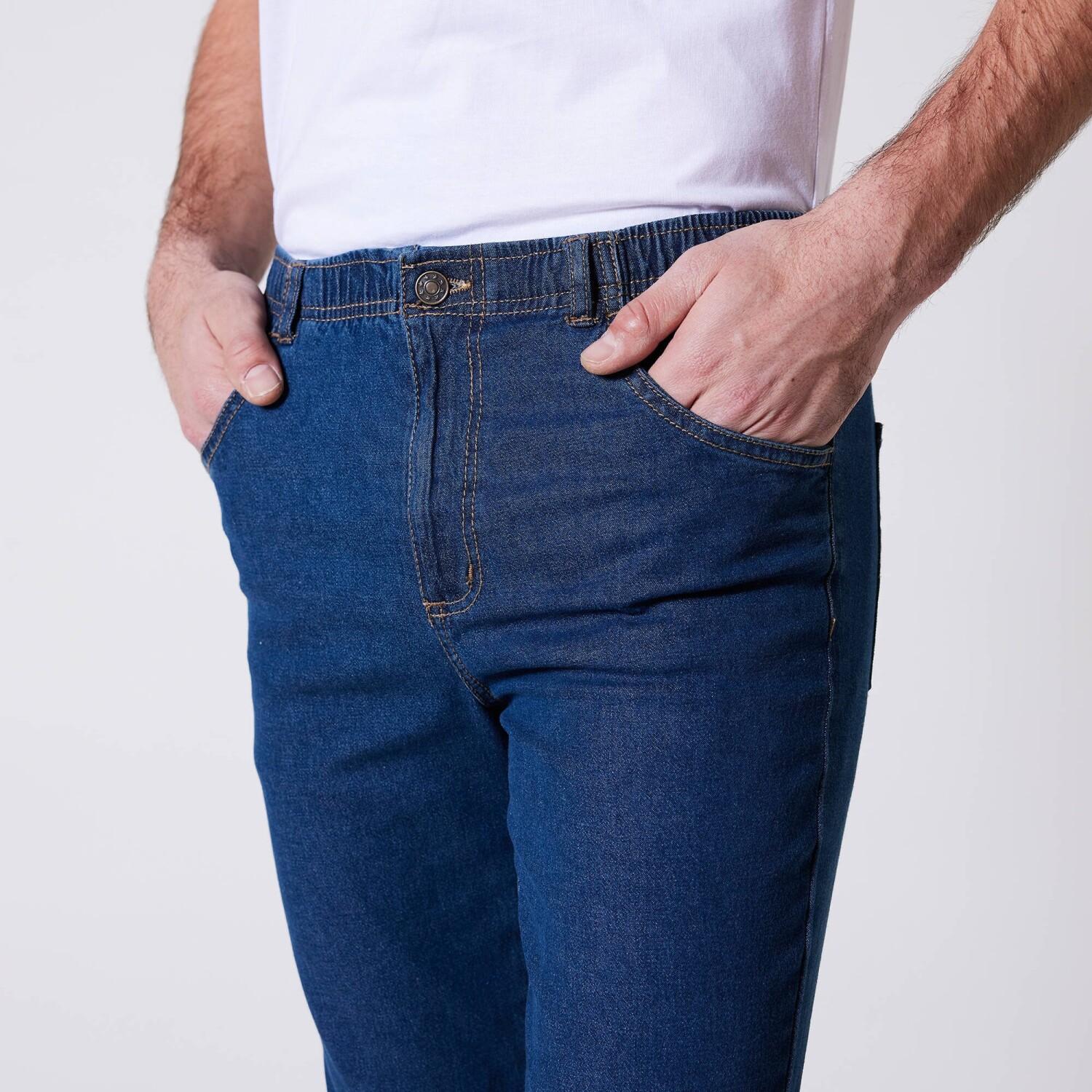 Prečo práve tieto džínsy? Jednoducho preto, že sľubujú maximálne pohodlie! Pružný denim, celoelastický pás, rovný strih ľahký na nosenie: tieto nohavice boli navrhnuté špeciálne pre strednú výšku postavy. Pružný pás, až 22 cm pohodlia navyše. Rovný strih. Stredná výška postavy: vhodné, ak meriate 1m73 až 1m78. Pás s pútkami, celoporužný úpor maximum pohodlia. Rázporok na zips. 2 vrecká vpredu. 2 našité vrecká vzadu. Nohavice zakončené lemom. Certifikát Made In Green značky OEKO-TEX®. Okrem overenia niekoľkých stoviek chemických látok (STANDARD 100), ktoré prispievajú k vysokej bezpečnosti, toto označenie zaručuje ohľaduplné výrobné princípy a kontrolované spoločenské postupy. Možno prať v práčke.