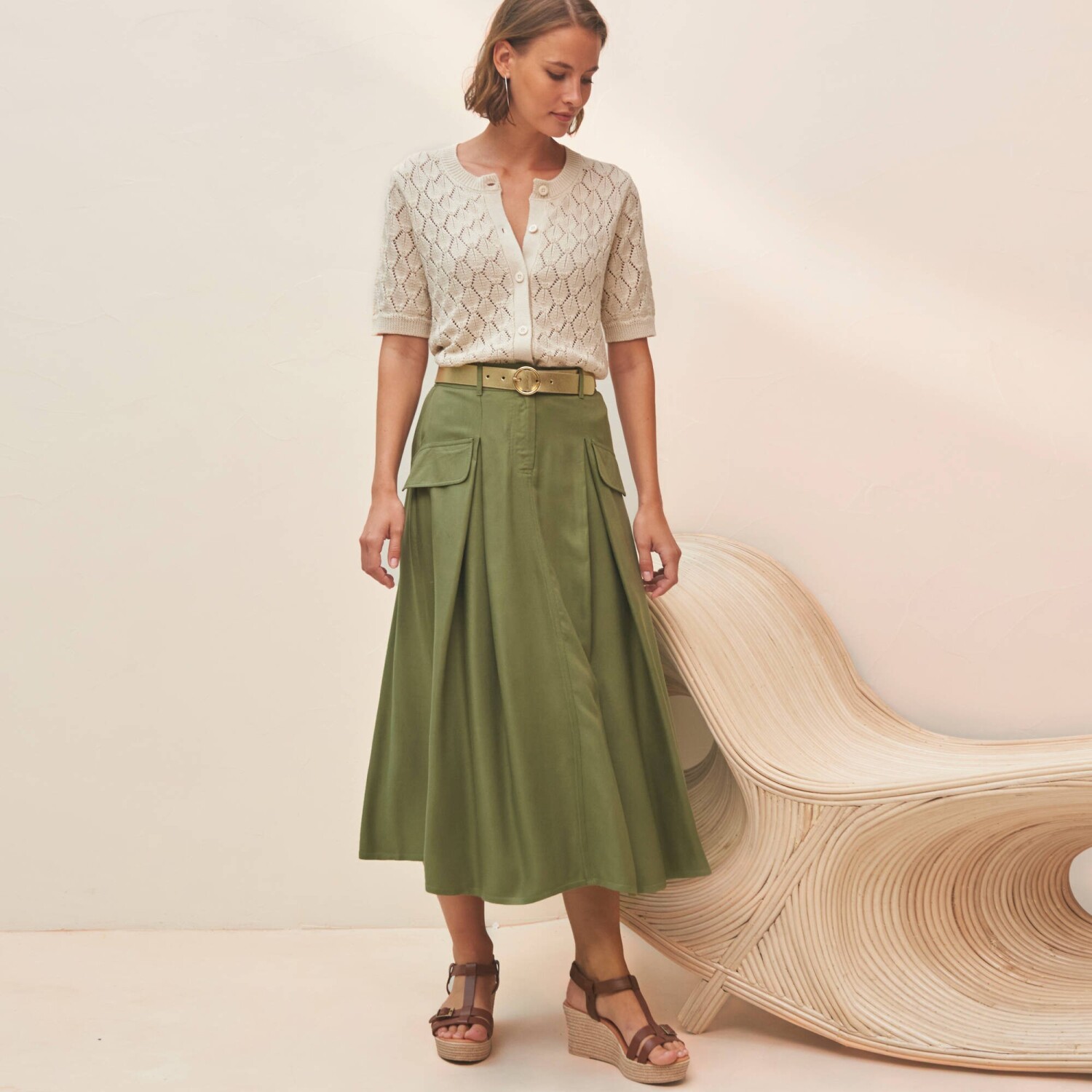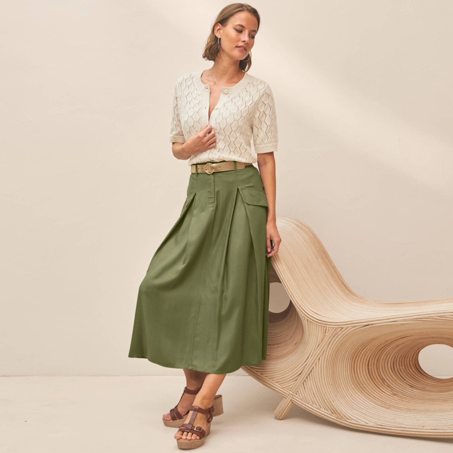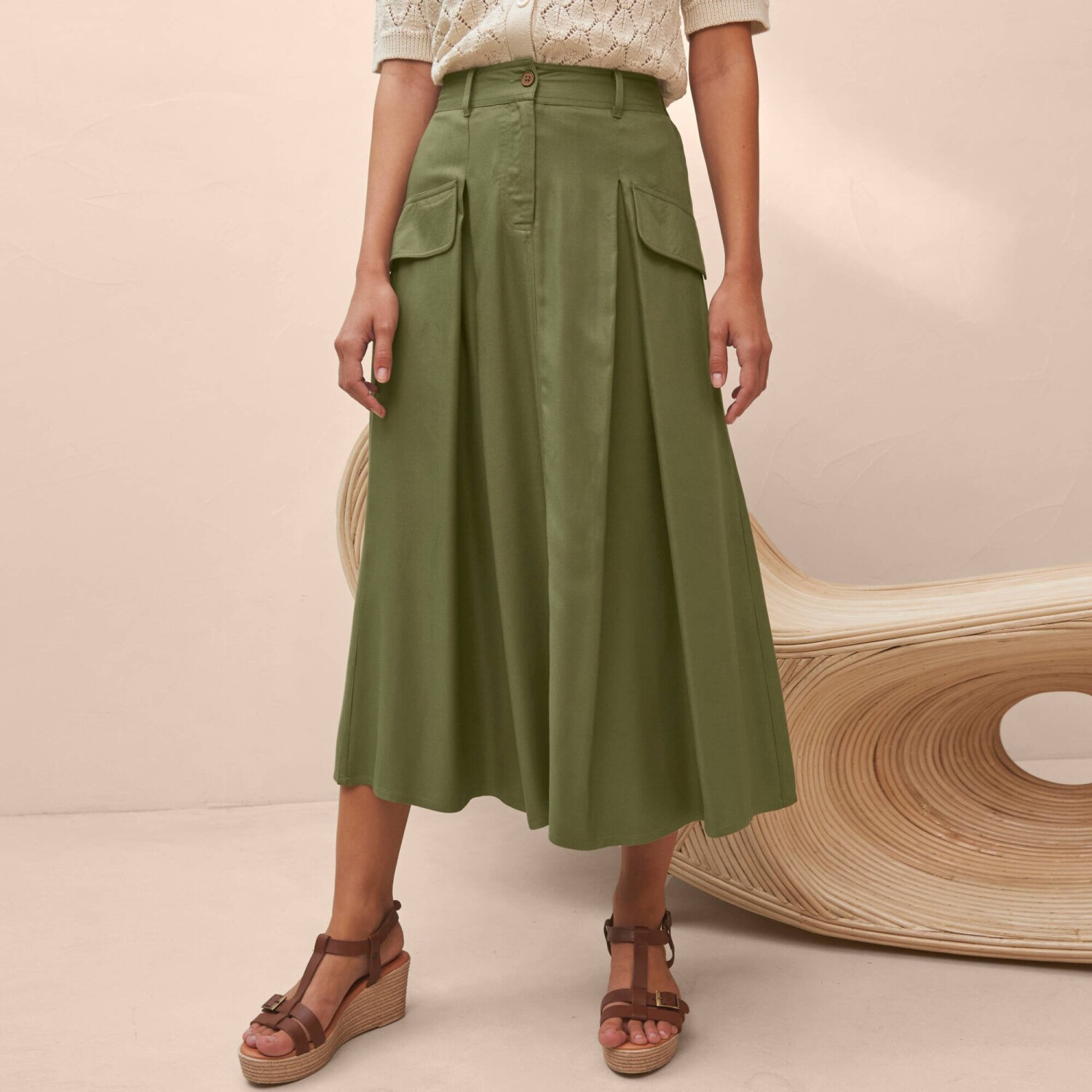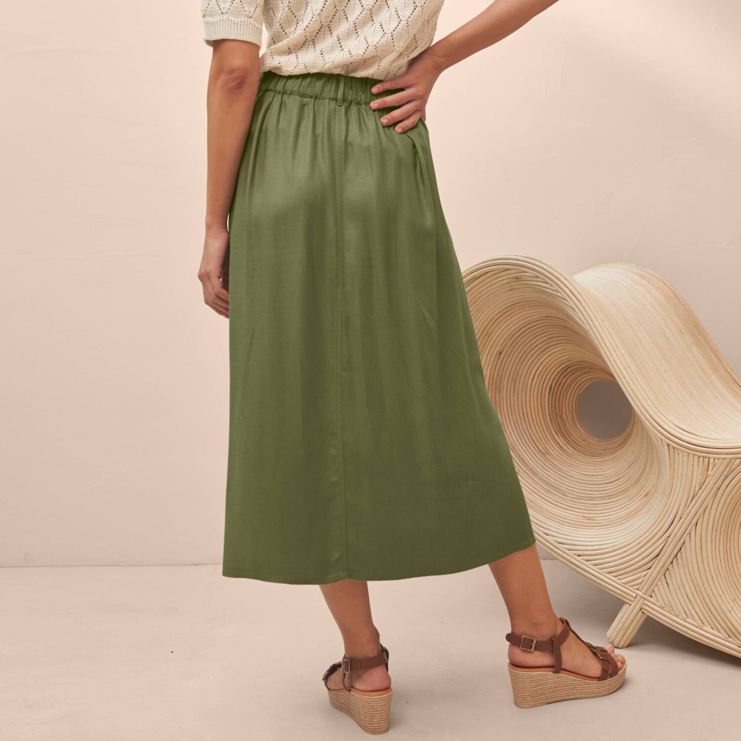 Rozšírená midi sukňa s pružným pásom