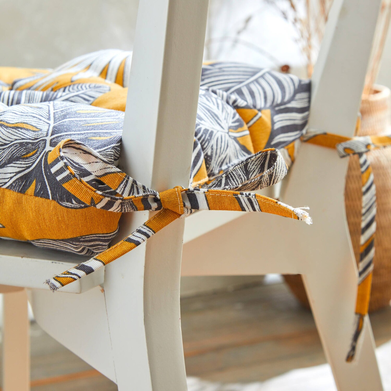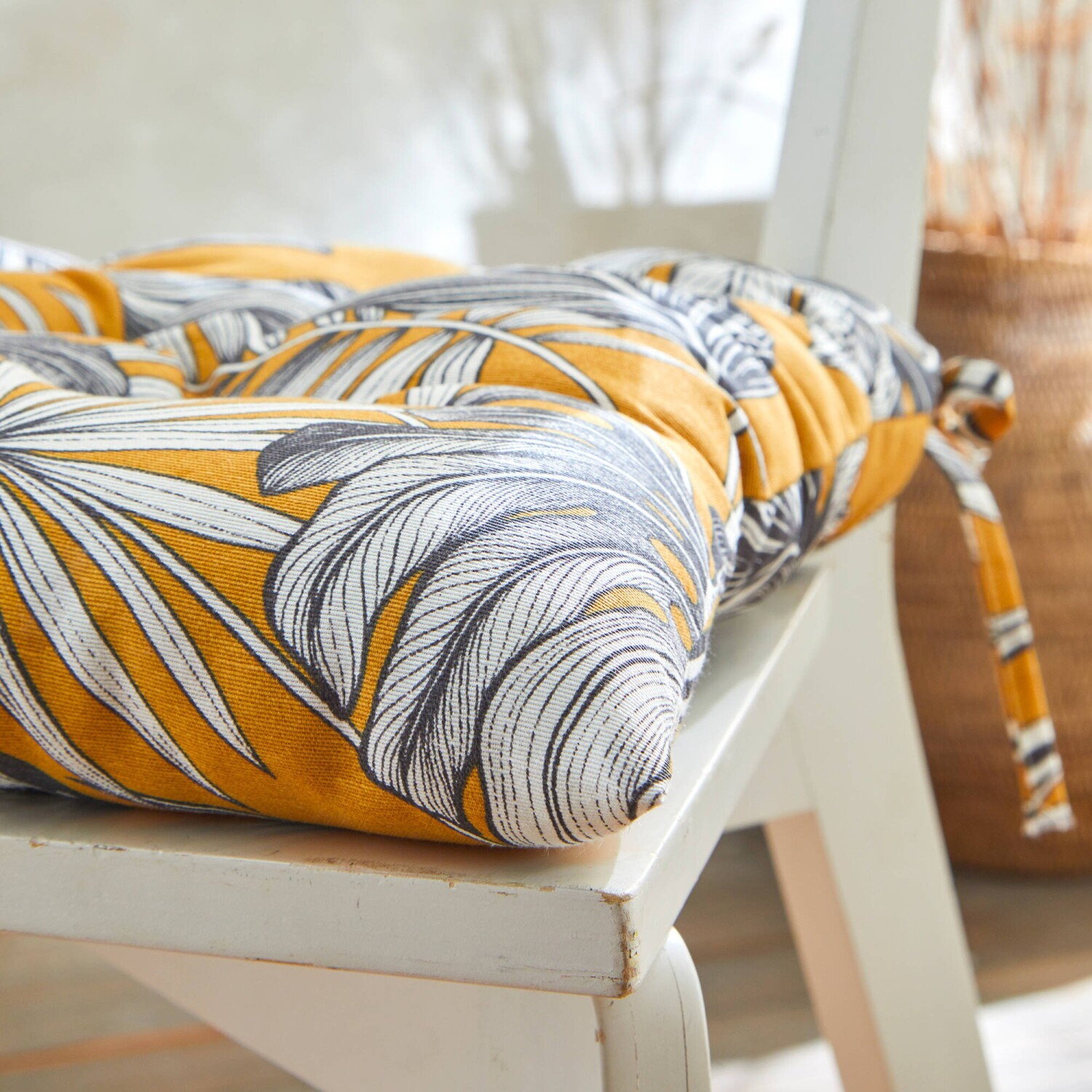 Pozvite slnko do Vášho domu s touto sadou sedákov na stoličku s tropickým vzorom. Sedák na stoličku s potlačou, 2 rovnaké strany. Dôsledné zakončenie. Prešitié do bodov, šnúrky na pripevnenie. V sade 2 rovnaké kusy. Standard 100 by Oeko-Tex. Táto známka označuje textilné výrobky, ktoré boli podrobené laboratórnym testom na široké spektrum škodlivých látok a výrobok je bezpečný nad rámec platných noriem. S ohľadom na ochranu životného prostredia odporúčame prať na 30 °C a sušiť voľne na vzduchu.