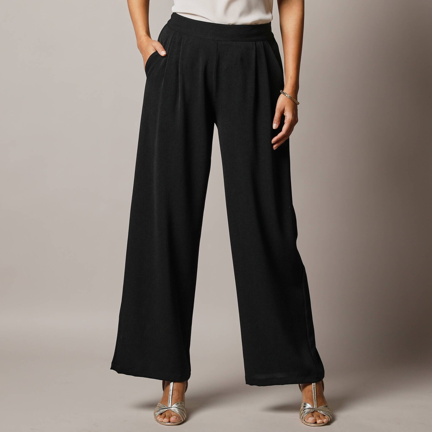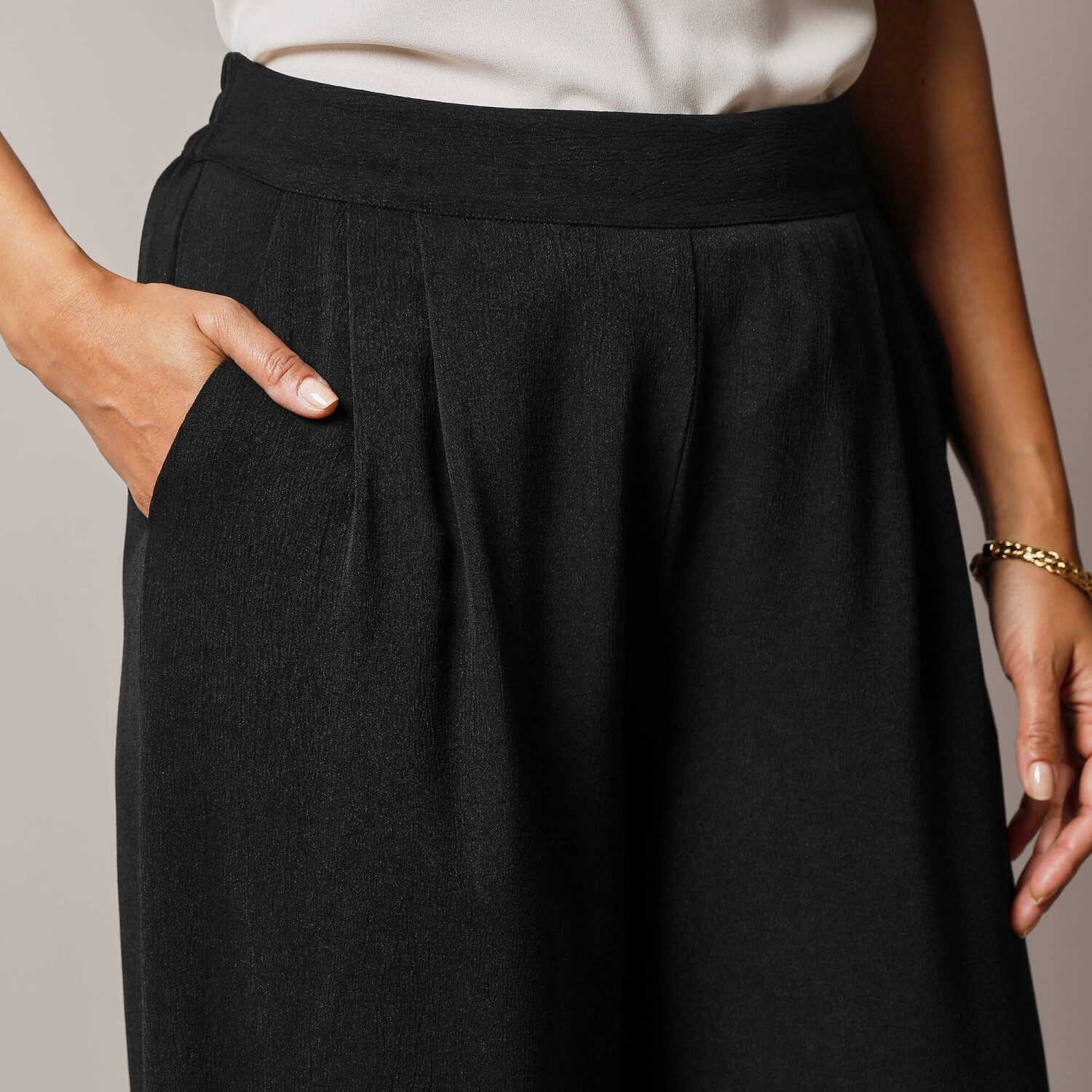 Široké krepové nohavice s vysokým pásom