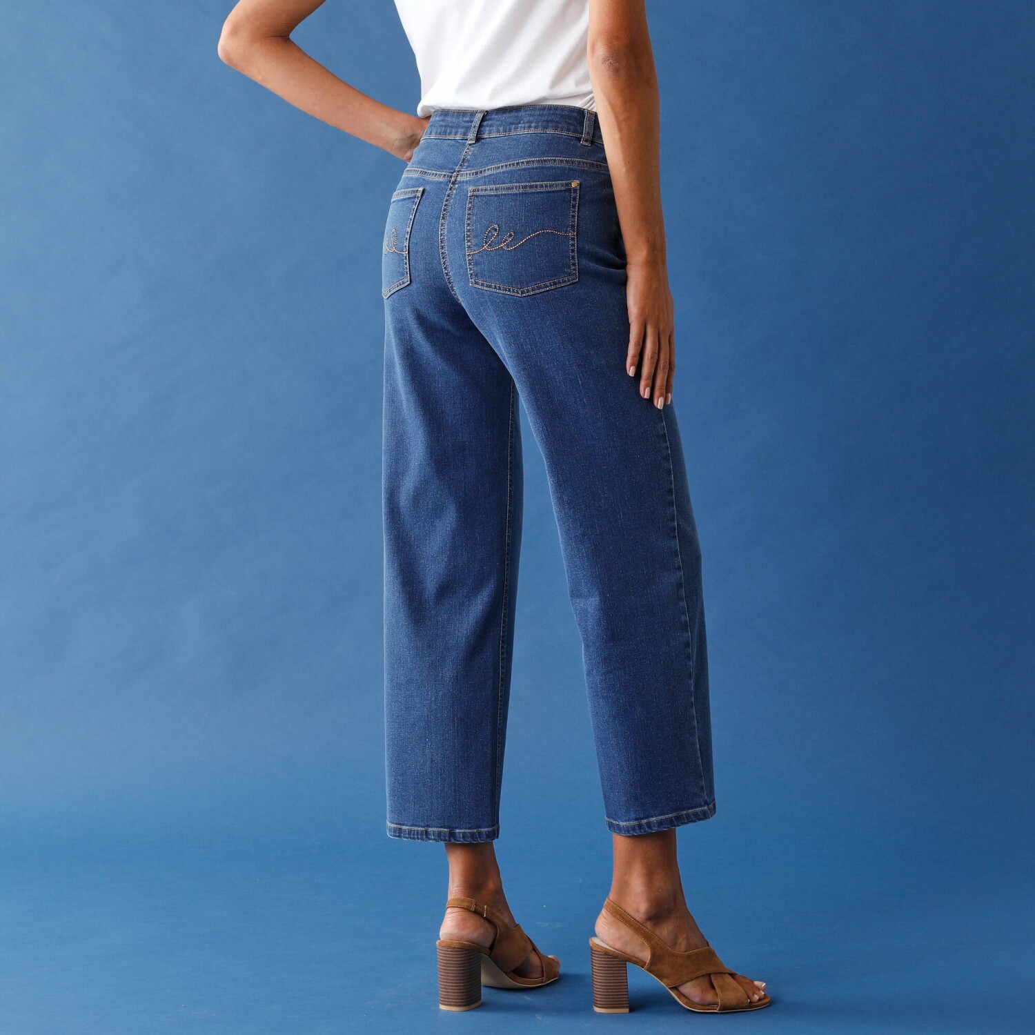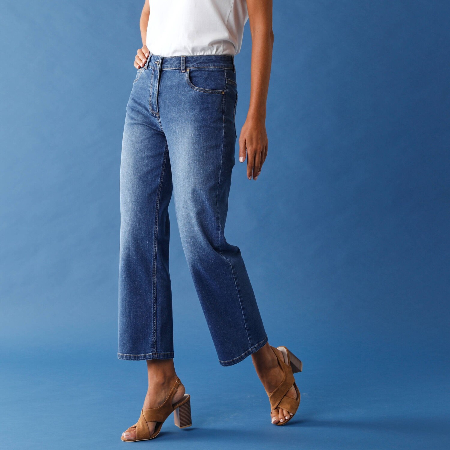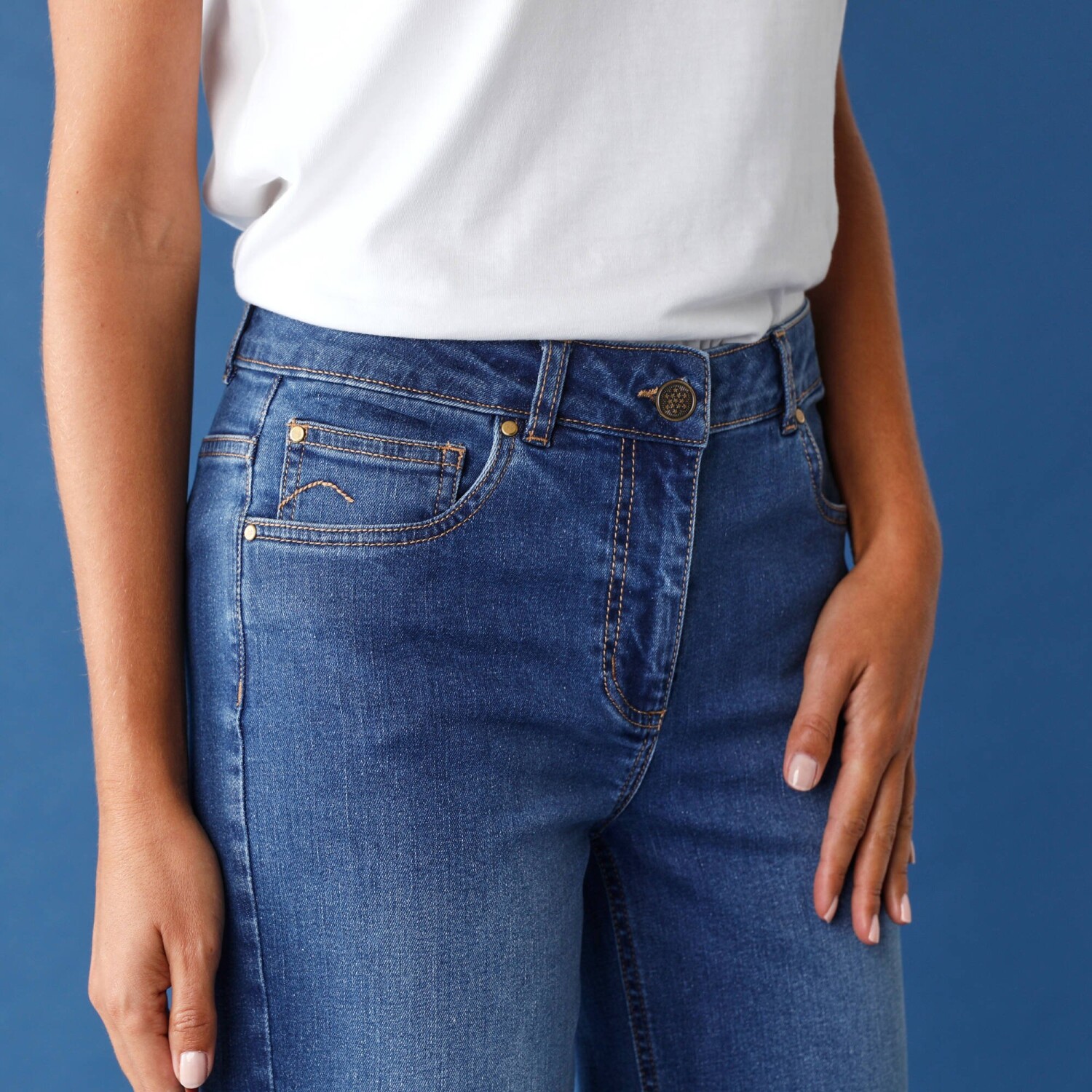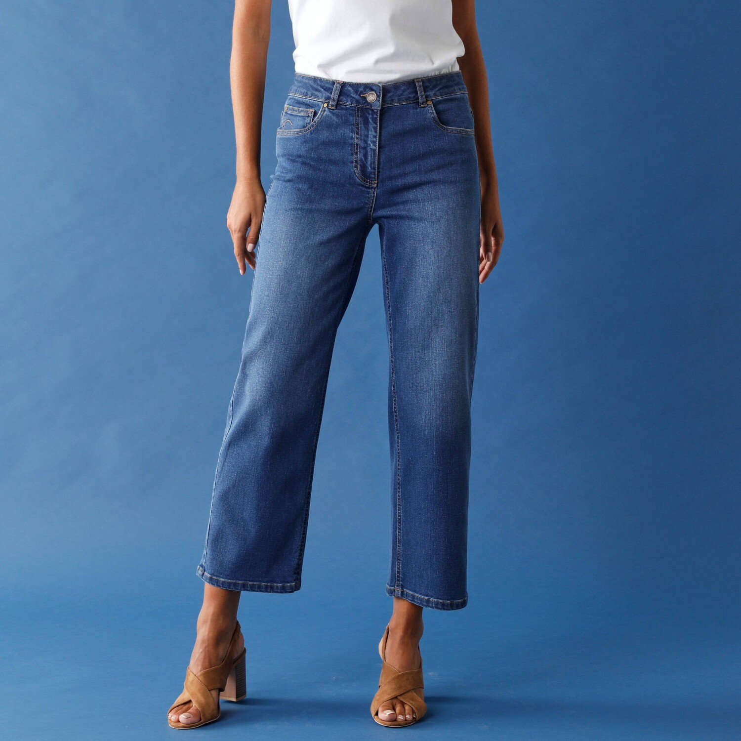 Rovné 7/8 džínsy s ohrnutými nohavicami a vysokým pásom