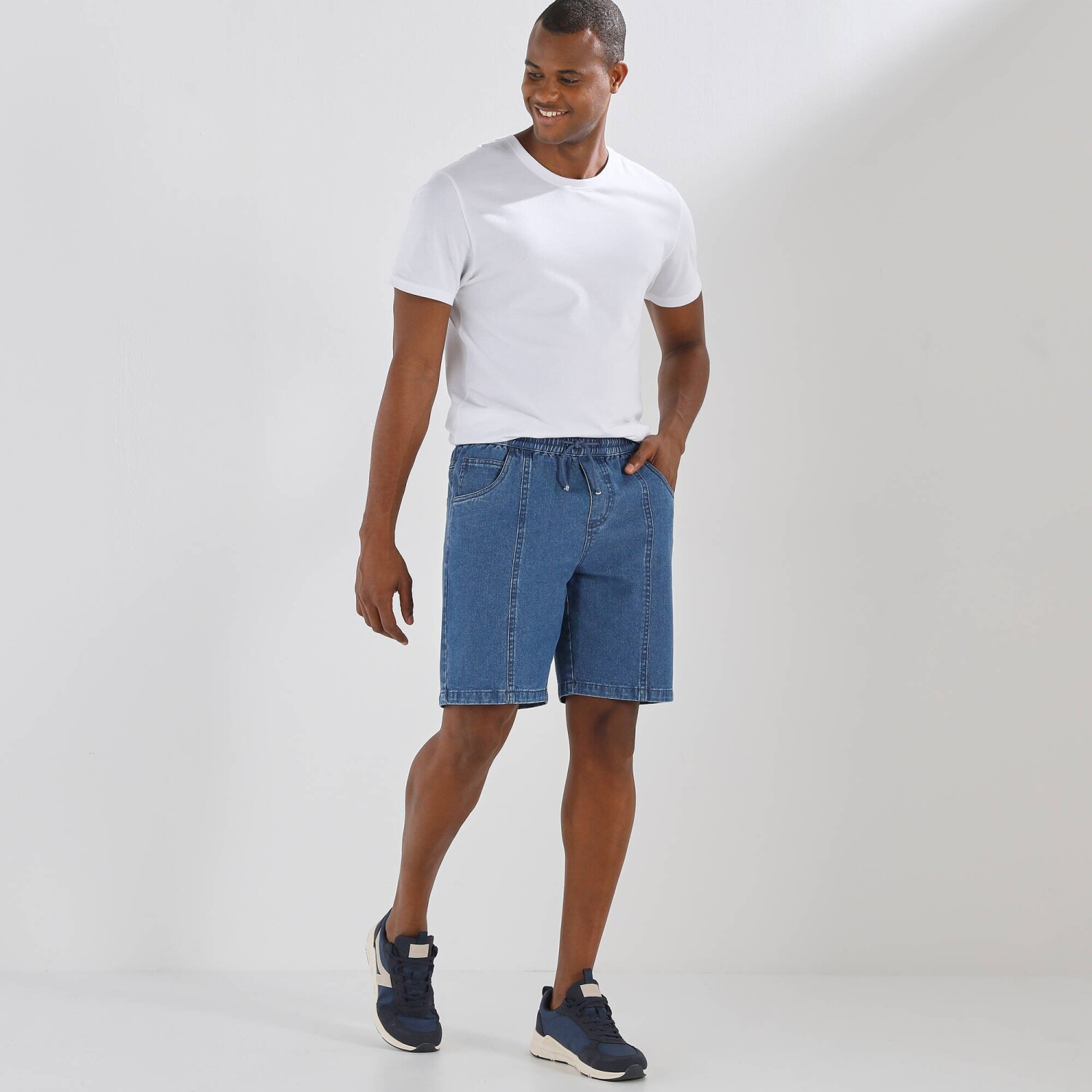 Ľahko sa nosia a vyzerajú štýlovo! Tenké denimové bermudy sú ideálne do slnečných dni a vďaka elastickému pásu poskytujú bezkonkurenčné pohodlie. Skvele vystihujú Vašu túžbu po pohodlí. Cool kúsok dodá ležérny štýl. Celopružný pás so šnúrkou na stiahnutie: až 22 cm navyše. 2 vrecká + 1 vrecko vpredu. Zvýšený sed. 2 našité vrecká vzadu. Zakončené lemom. Certifikát Made In Green značky OEKO-TEX®. Okrem overenia niekoľkých stoviek chemických látok (STANDARD 100), ktoré prispievajú k vysokej bezpečnosti, toto označenie zaručuje ohľaduplné výrobné princípy a kontrolované spoločenské postupy. Možno prať v práčke.