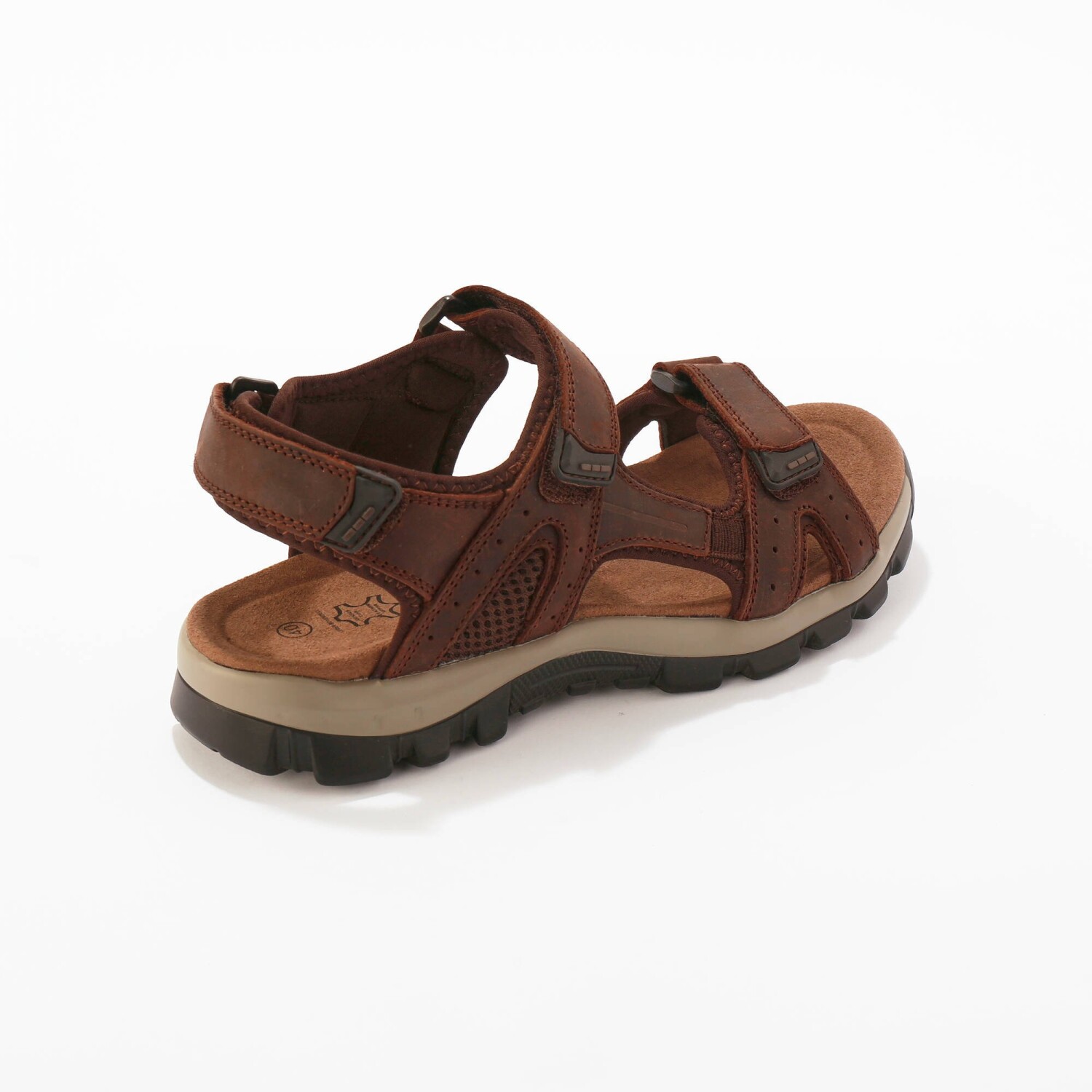 Športové sandále na suchý zips sa ľahko obúvajú a dokonale prispôsobia tvaru a šírke každého chodidla. Ľahké športové sandále kombinujú pohodlie a štýl. Kožený zvršok umožní absolútne pohodlie. Mäkký komfort. 3 remienky na suchý zips (2 na zvršku, 1 vzadu) sa úplne rozopnú a umožnia ľahké obutie. Dvojfarebná vysoká podrážka.